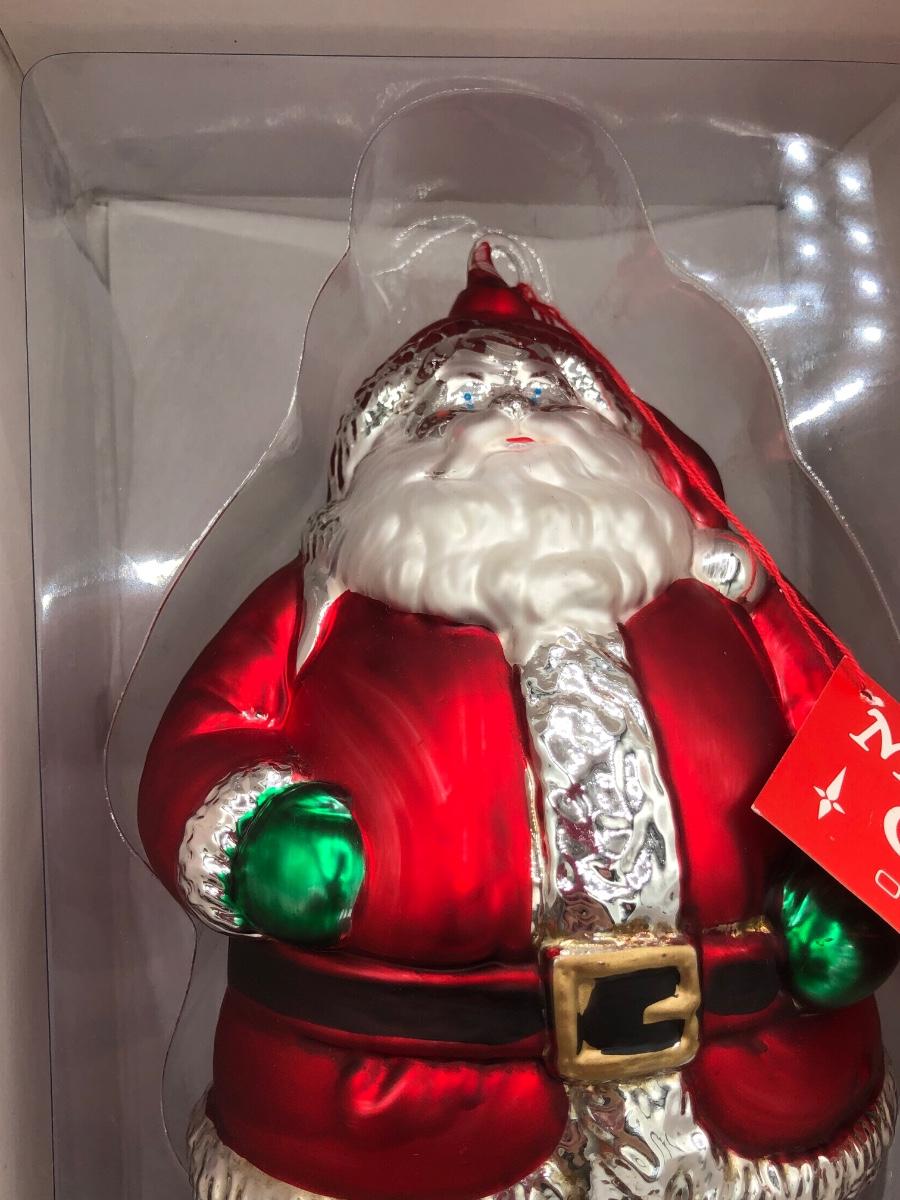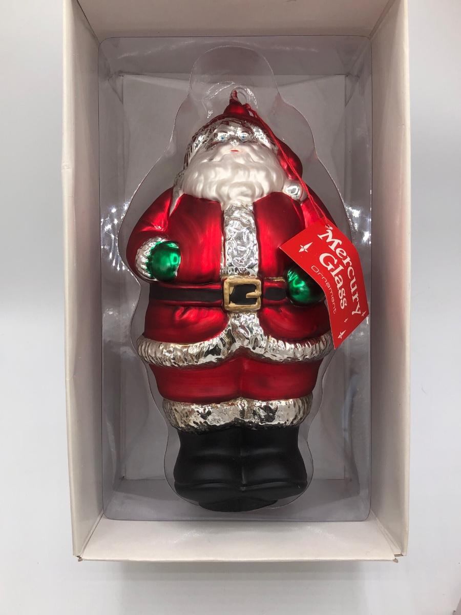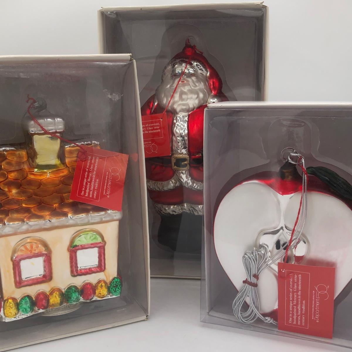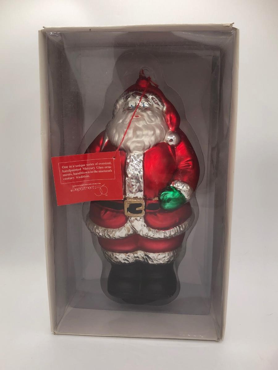 LOT 214L: Department 56 Mercury Glass Oversized Christmas Ornaments w/ Boxes - Santa, Gingerbread House & Apple