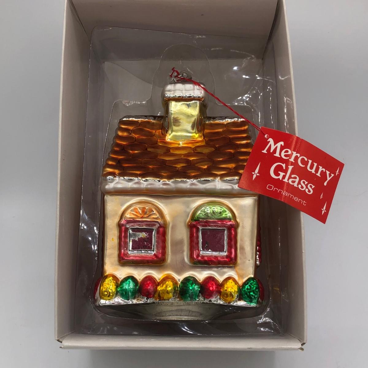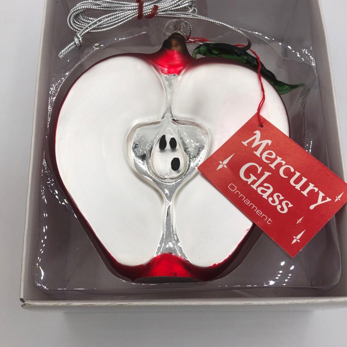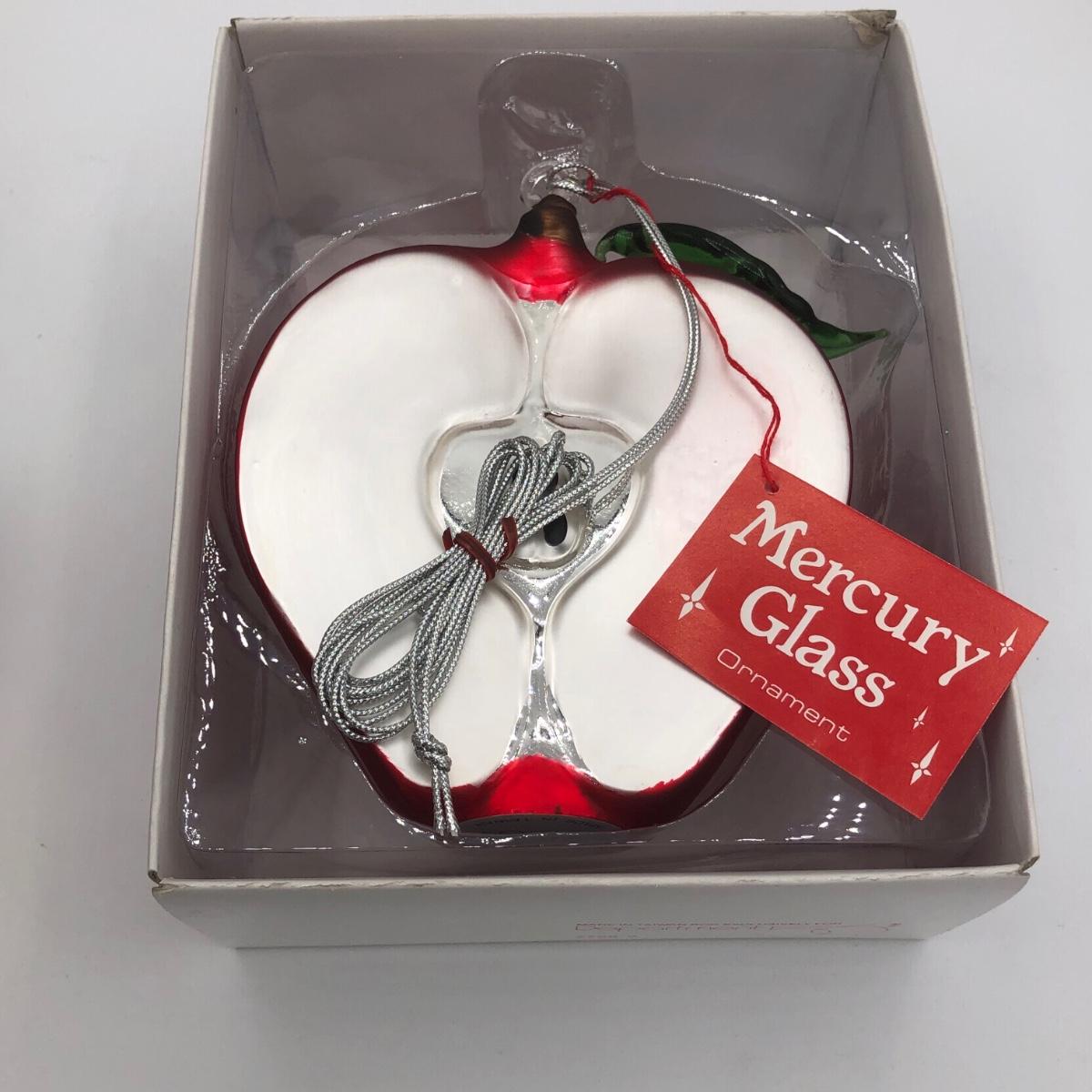LOT 214L: Department 56 Mercury Glass Oversized Christmas Ornaments w/ Boxes - Santa, Gingerbread House & Apple