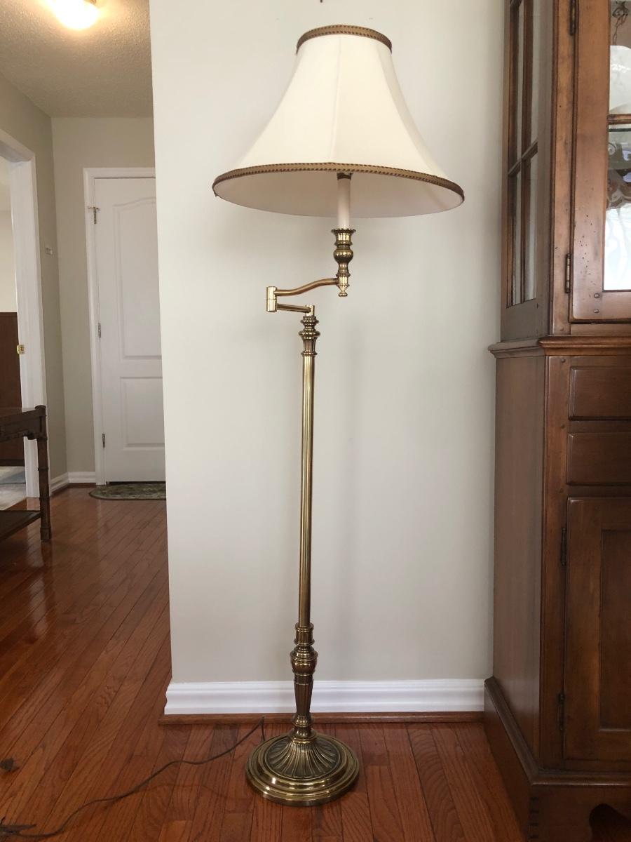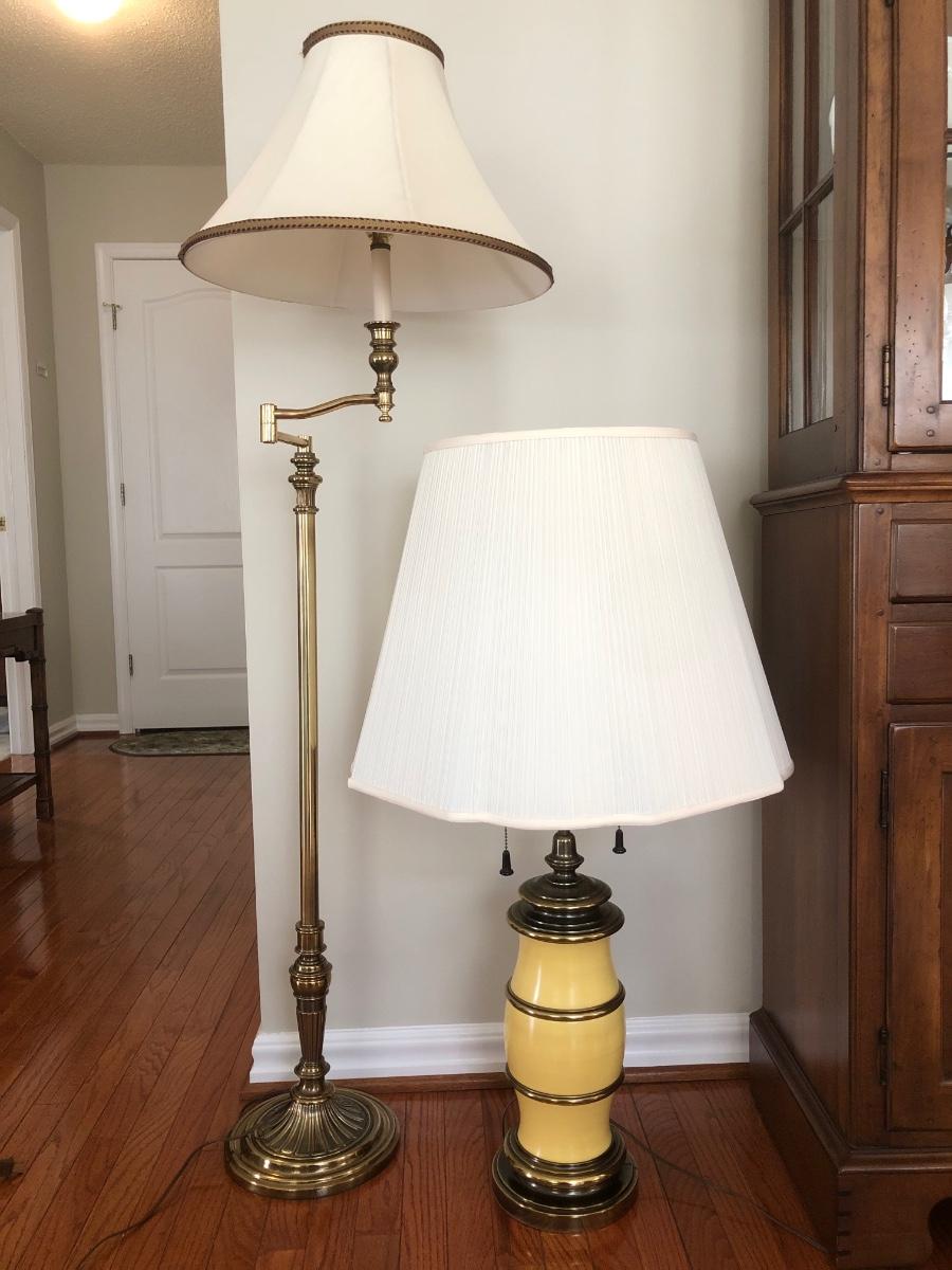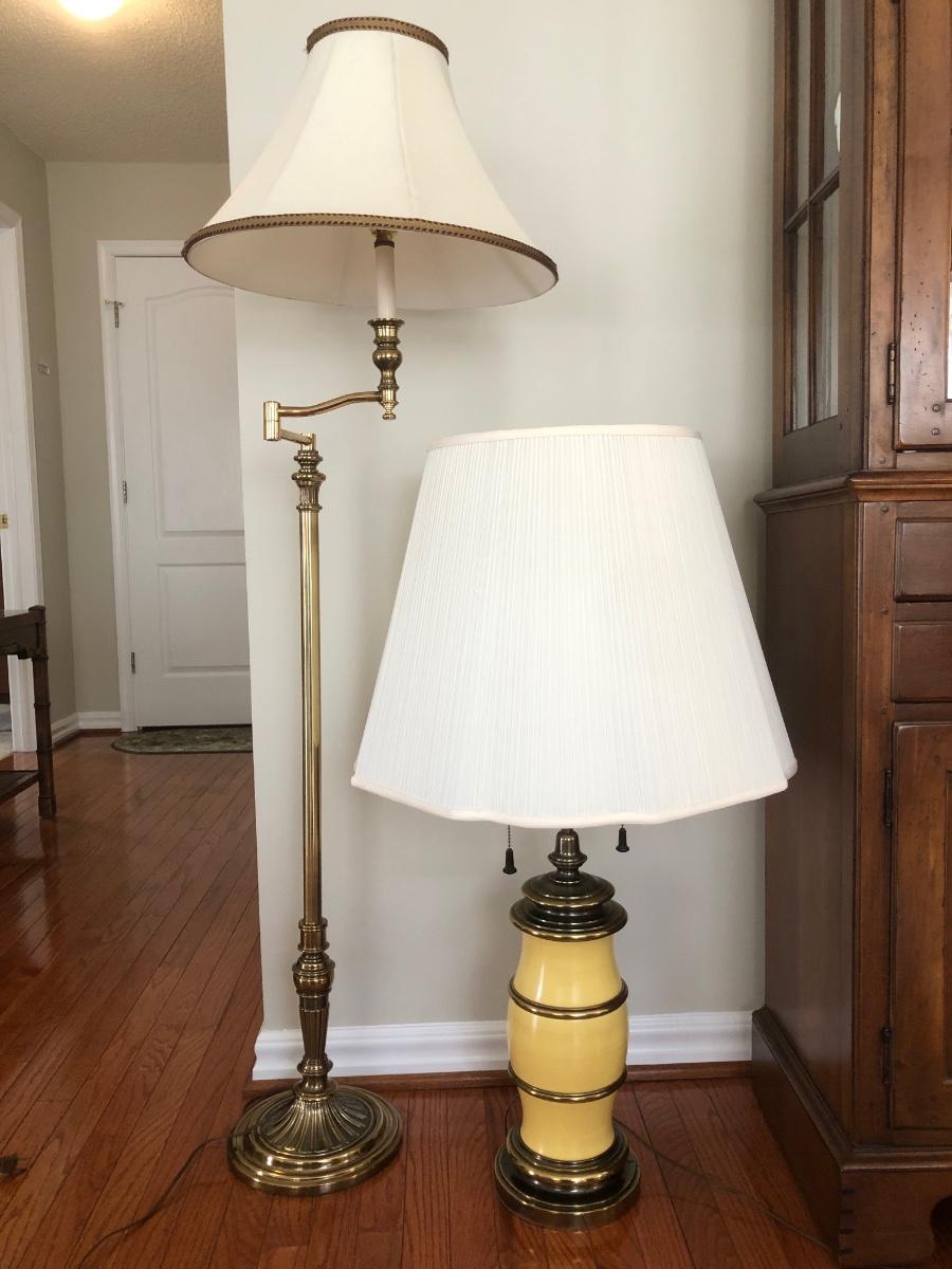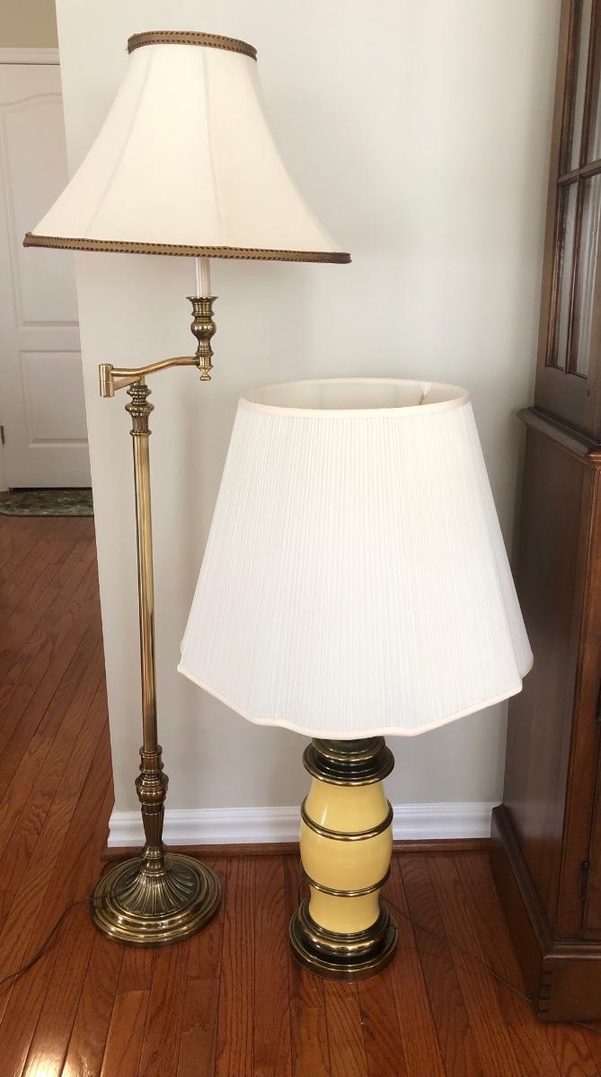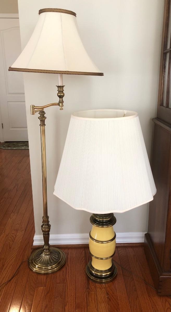 LOT 233L: Vintage Lamps - Stiffel MCM Brass & Enamel Table Lamp (39”) & Brass Swing Arm Floor Lamp (56.5”)