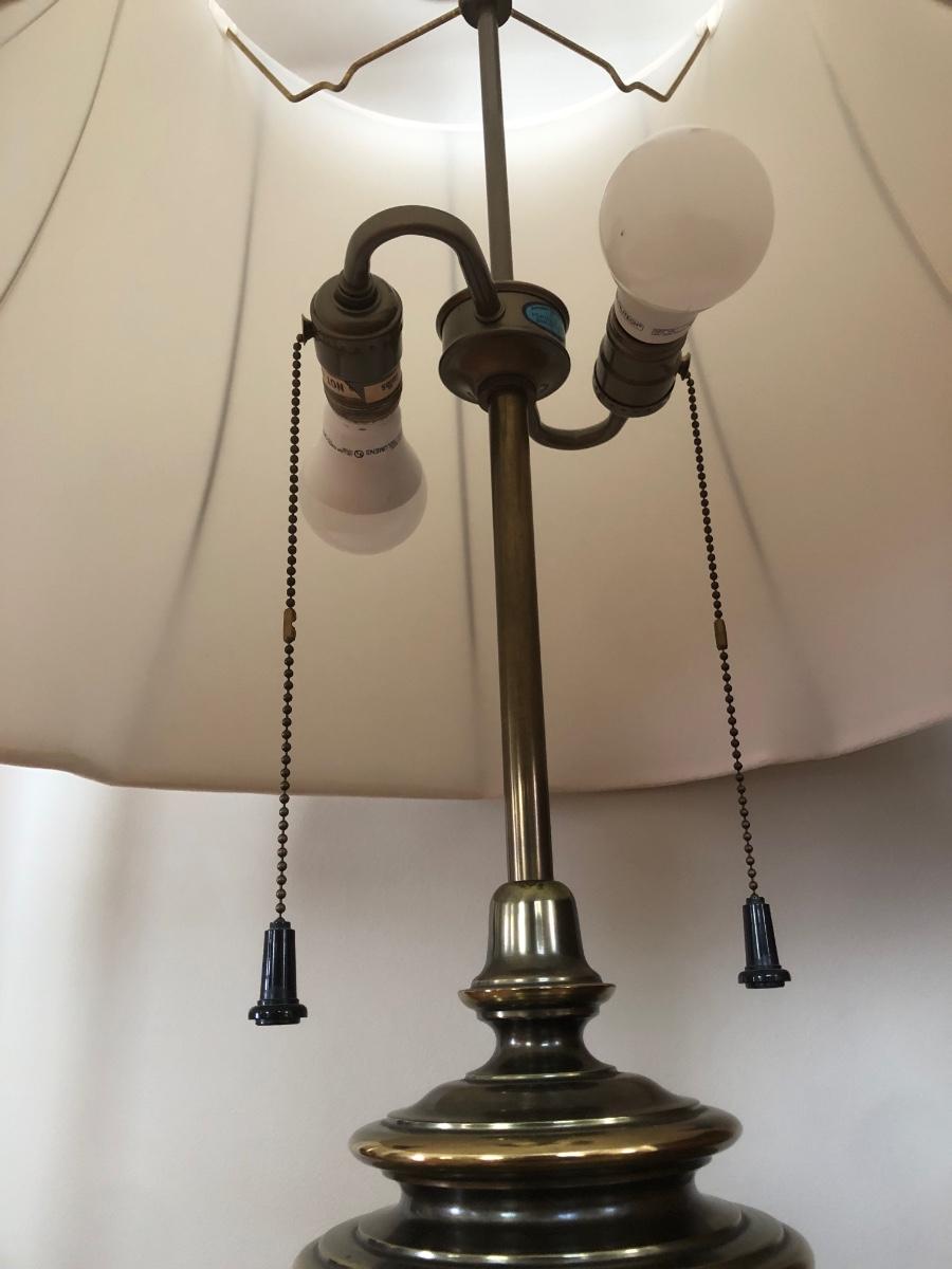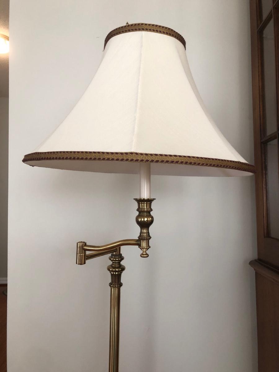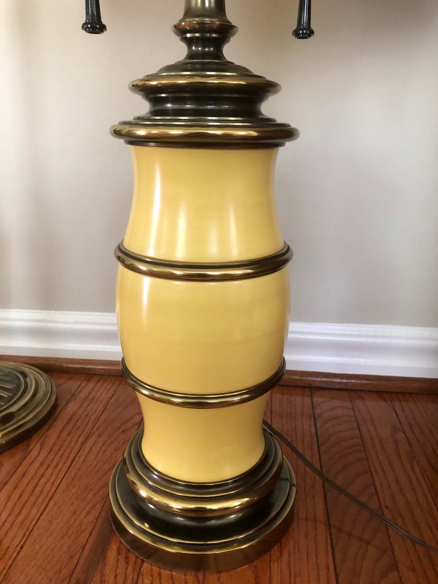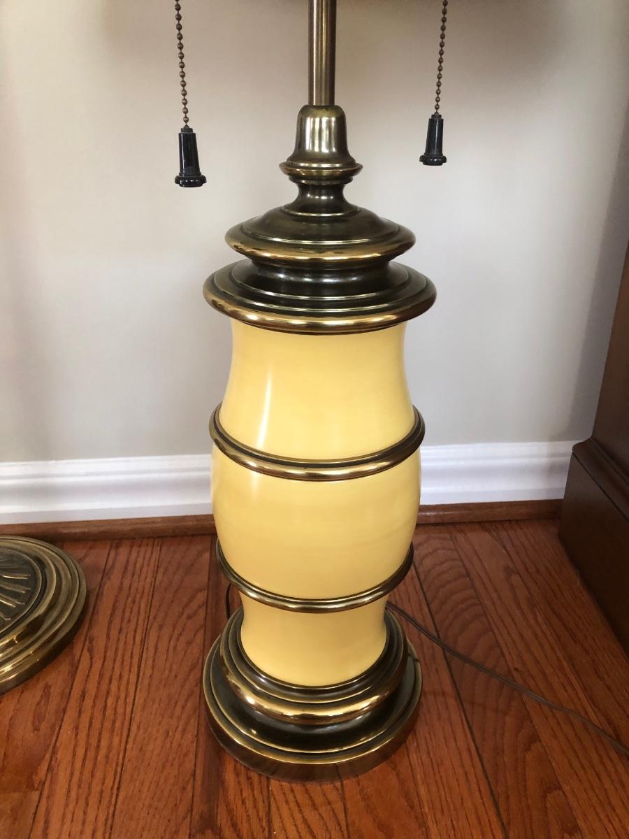 LOT 233L: Vintage Lamps - Stiffel MCM Brass & Enamel Table Lamp (39”) & Brass Swing Arm Floor Lamp (56.5”)