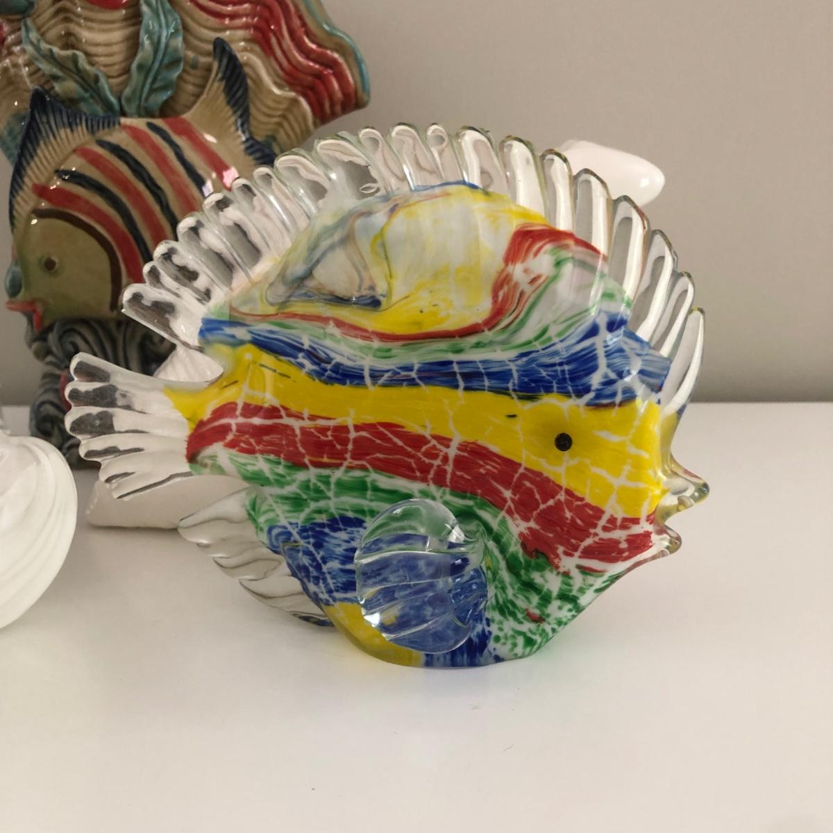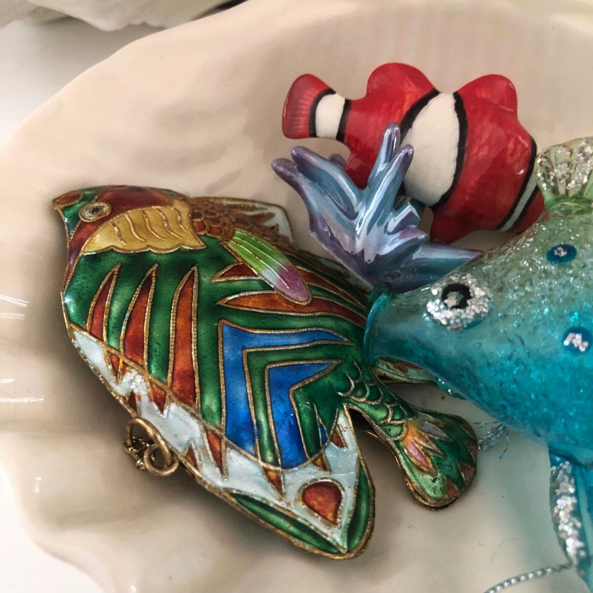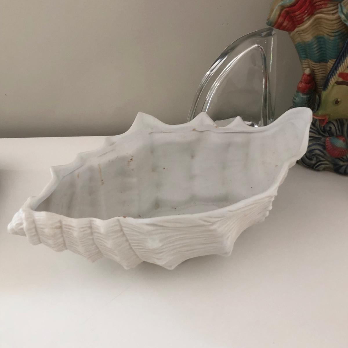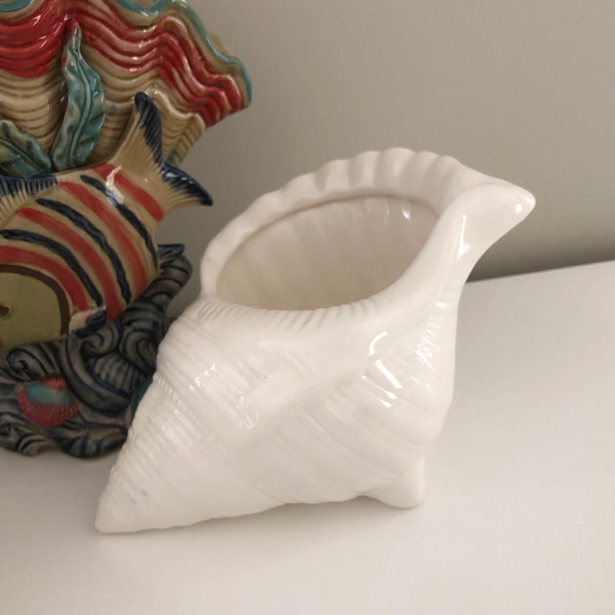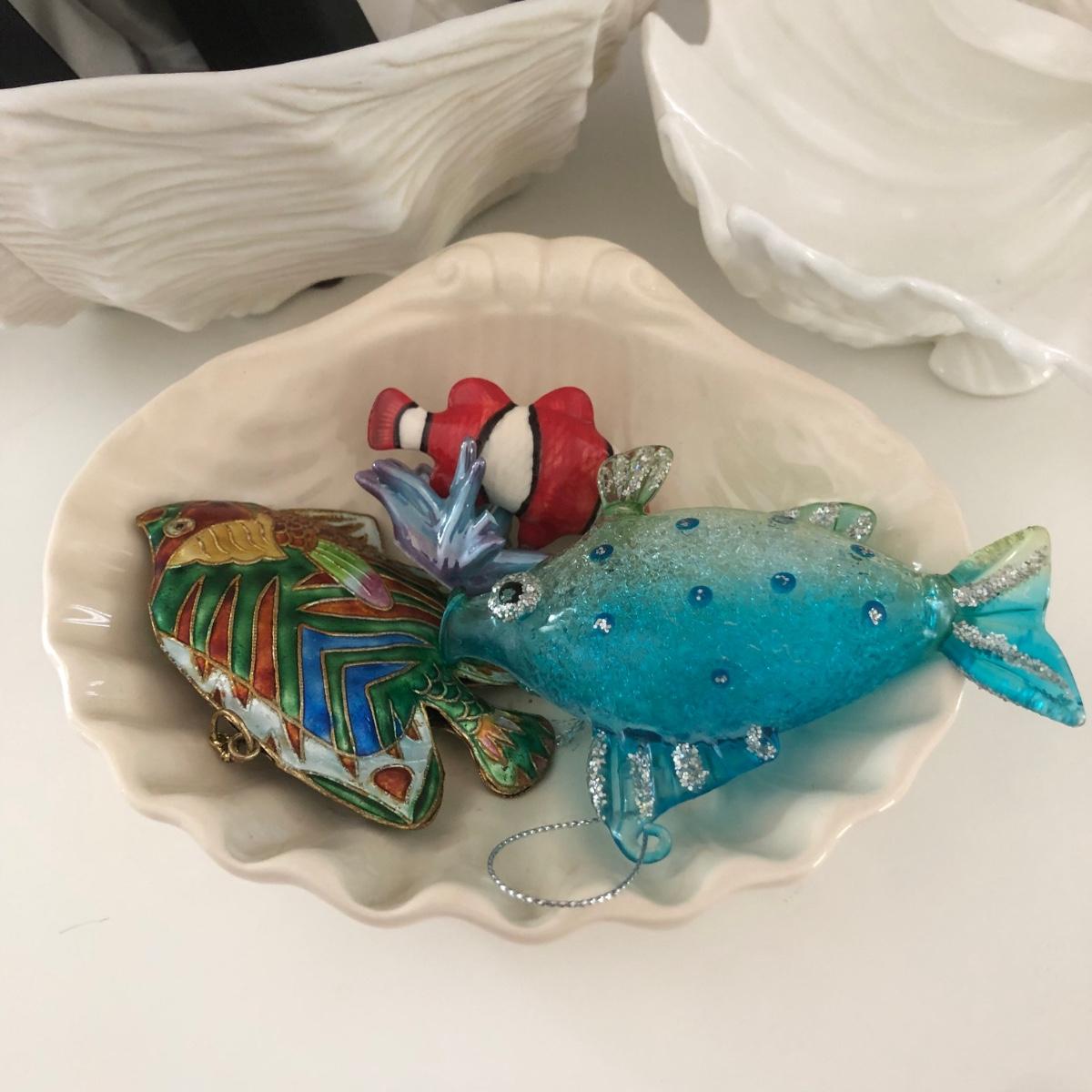 LOT 234L: Wedgewood Nautilus Collection Porcelain Sea Shell Dish, Colorful Art Glass Fish, Mason’s Crabtree & Evelyn Seashell, Art Deco 1970s Fish Coral Pottery Vase, Nautica Quartz Desk Clock & More