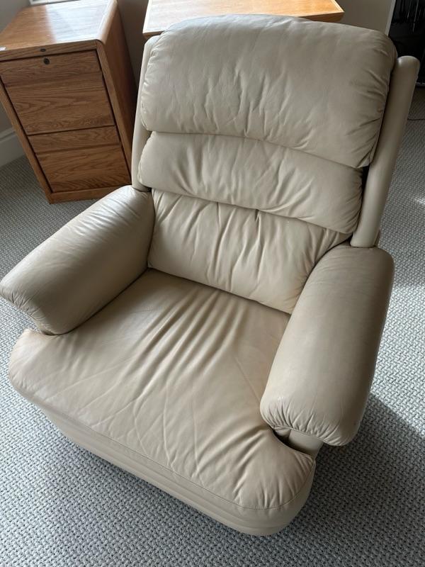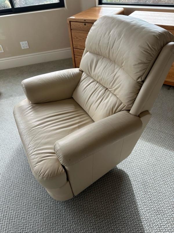 La-Z-Boy, leather recliner chair, pivots, and rocks