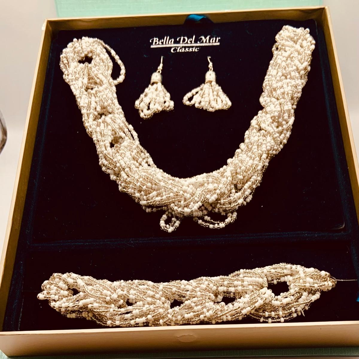 LOT:10: Bella Del Mar Fashon Jewlery Gift Set of Beaded Necklace, Bracelet and Drop Earrings In the Original Box