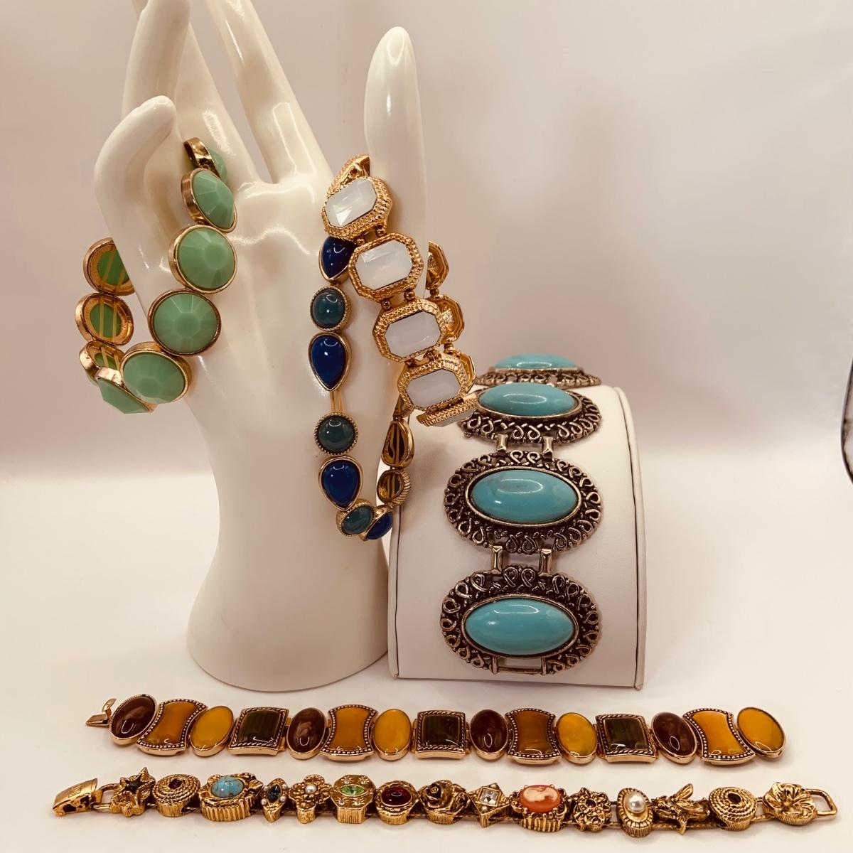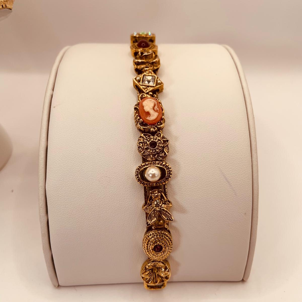 LOT:25: Assortment of Vintage Bracelets featuring a Vintage Slide Charm Bracelet