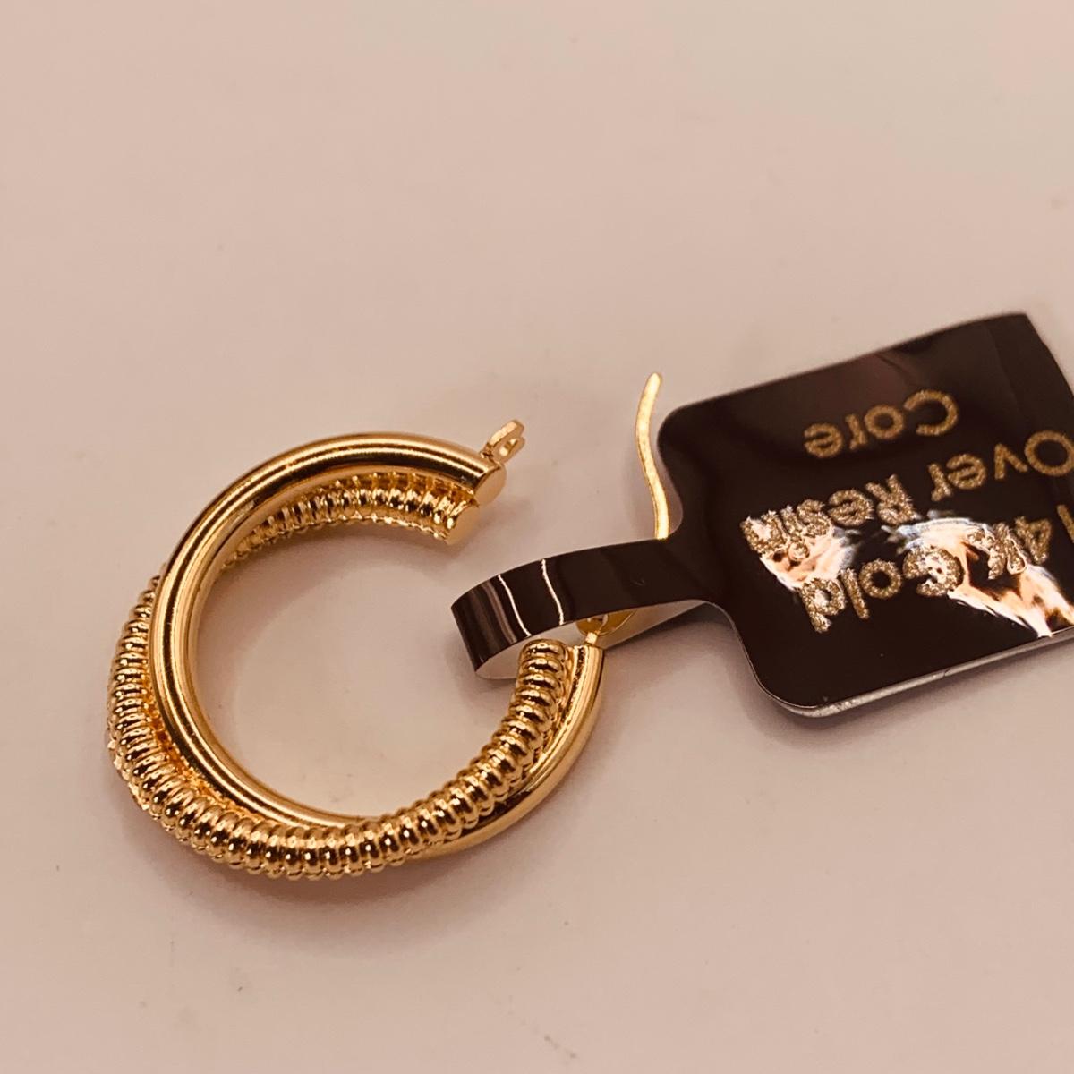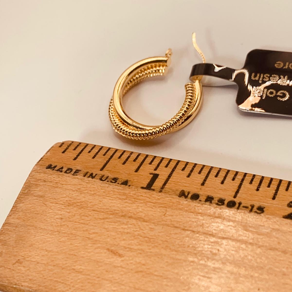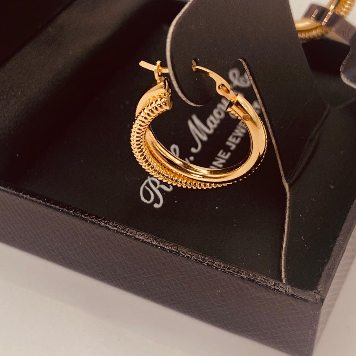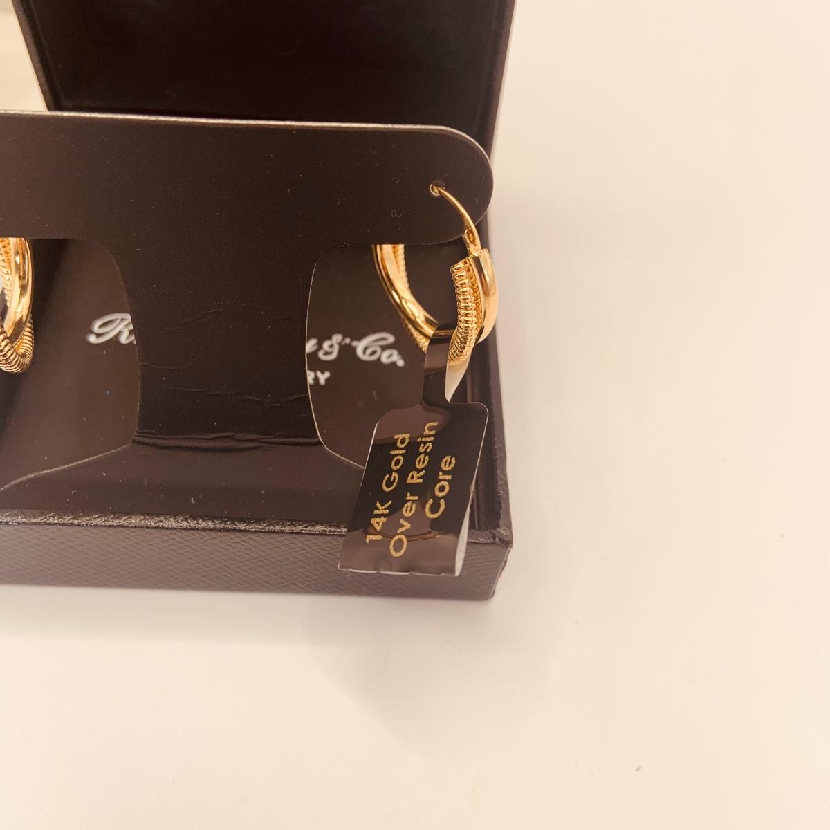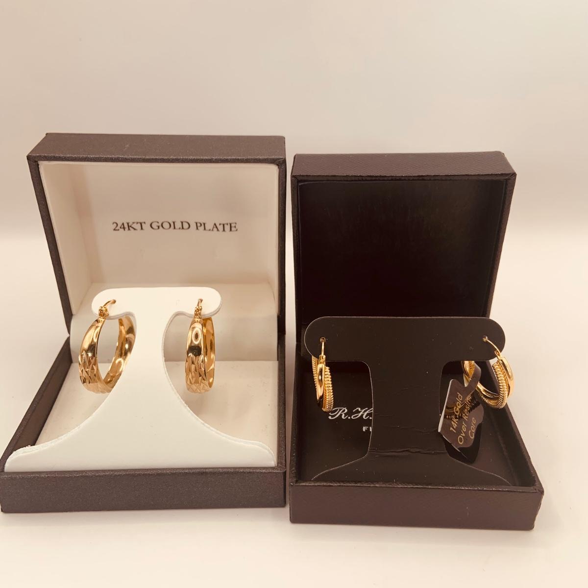 LOT:24: Set of 2 Gold Plated Hoop Pierced Earrings In Original Box One From Macys