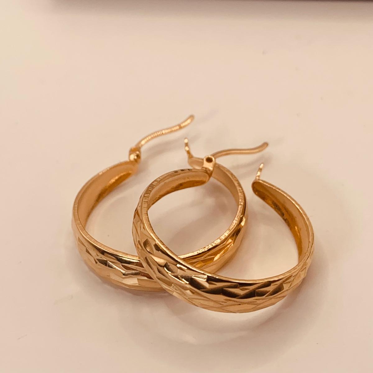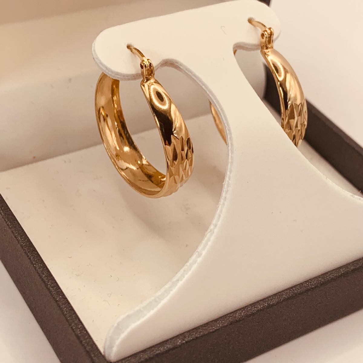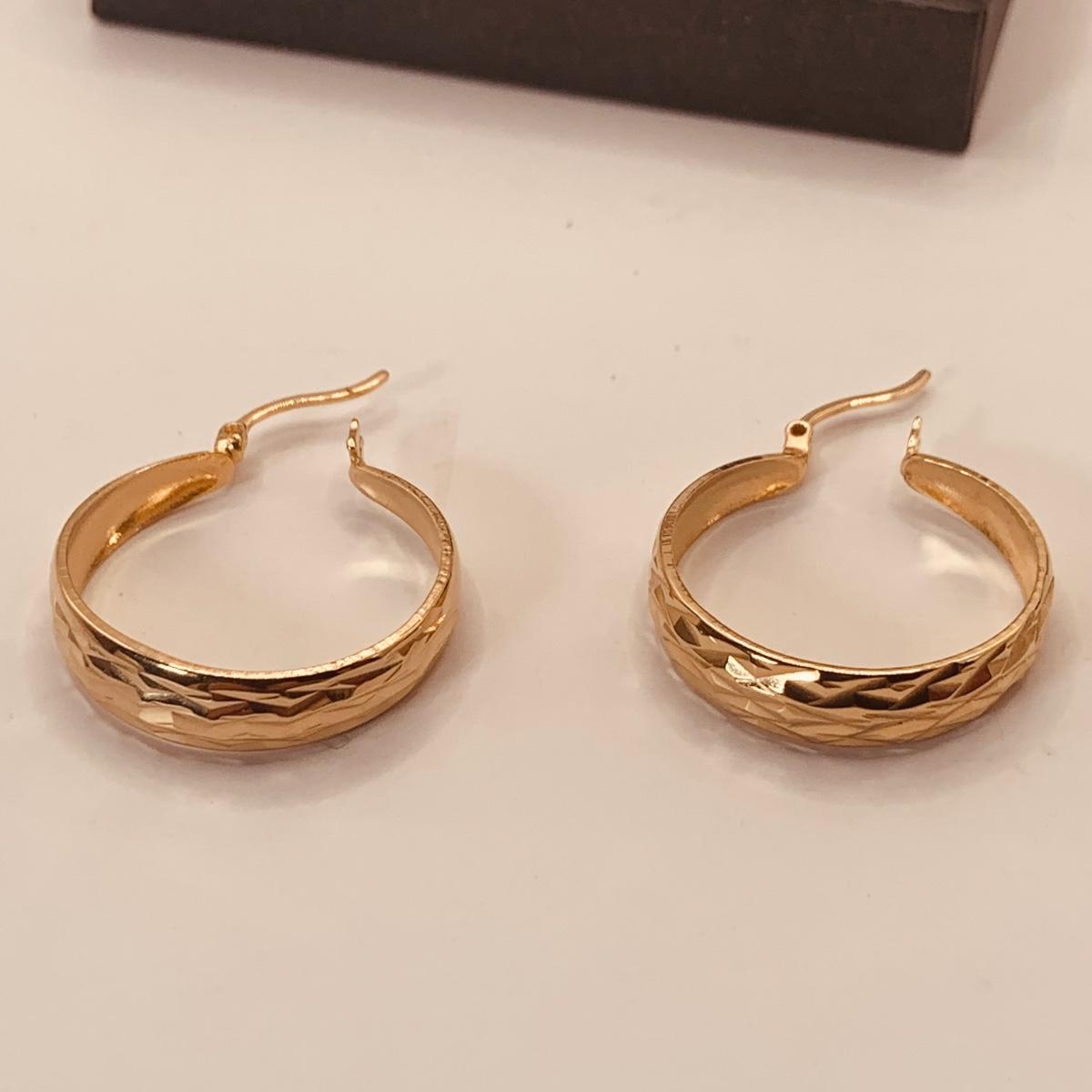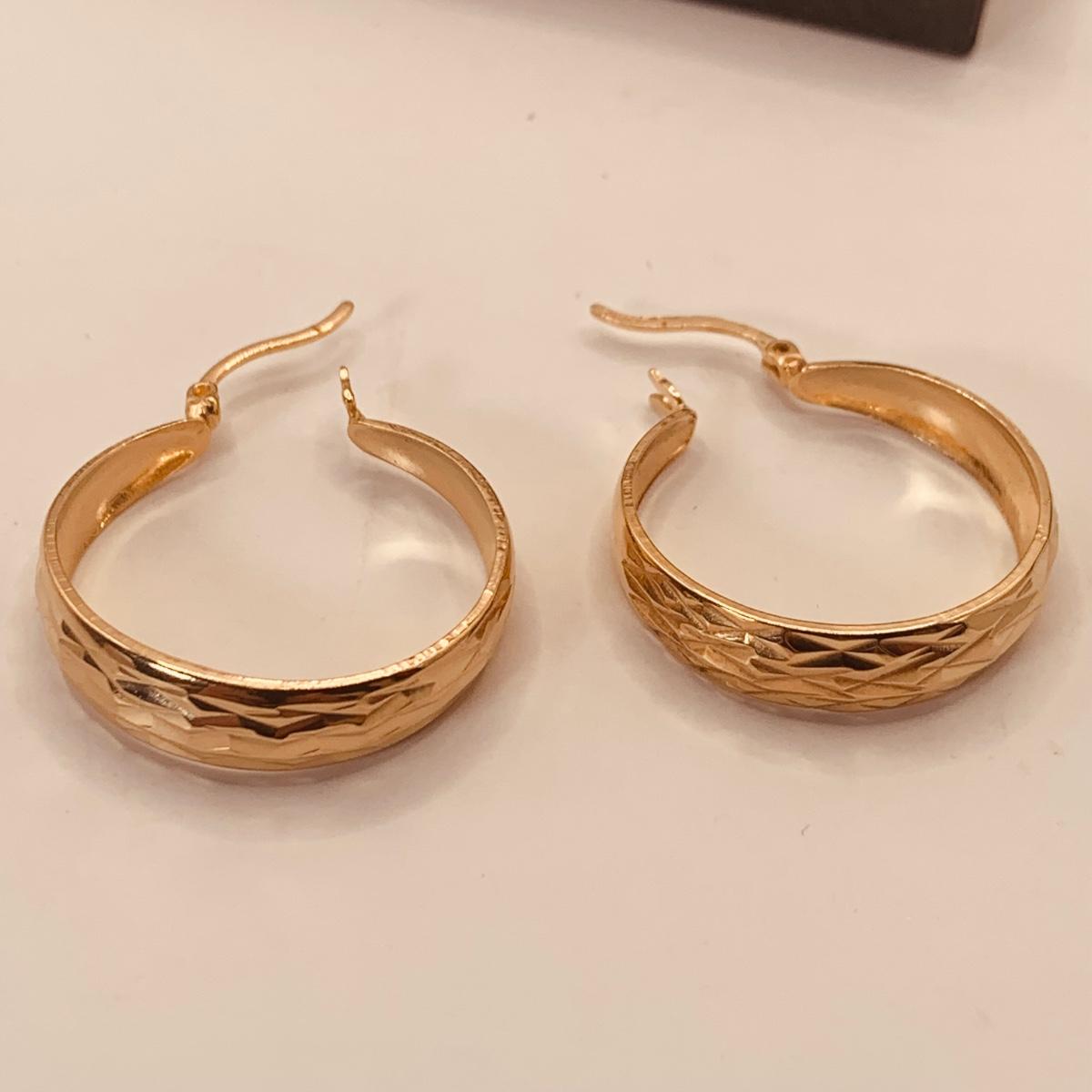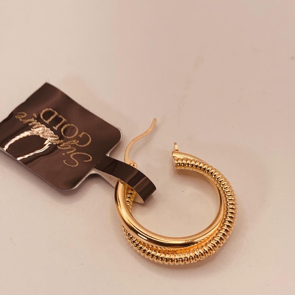 LOT:24: Set of 2 Gold Plated Hoop Pierced Earrings In Original Box One From Macys
