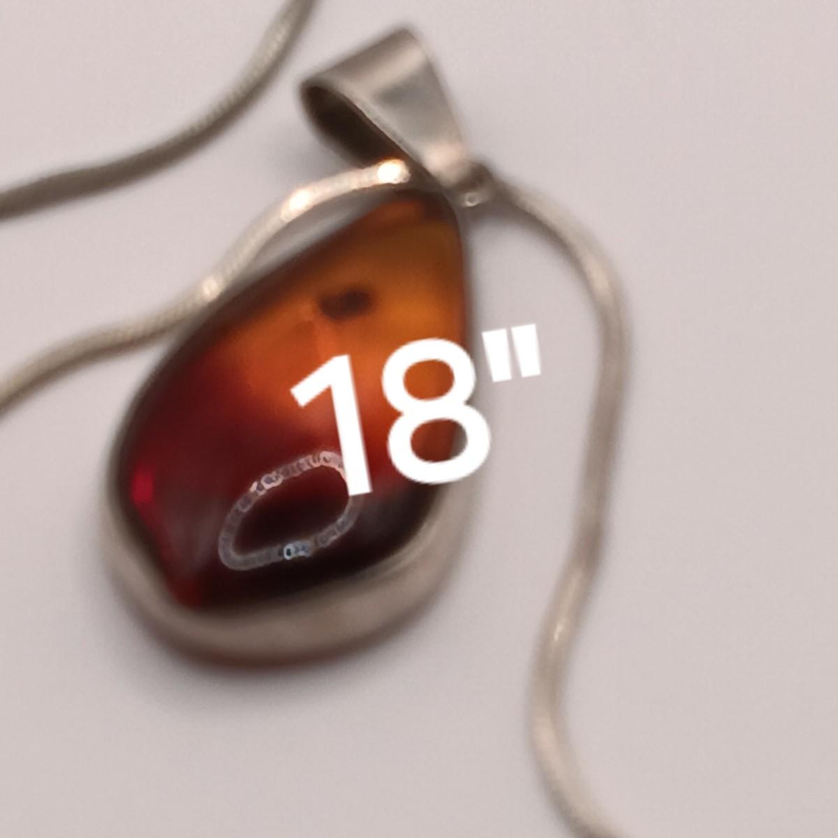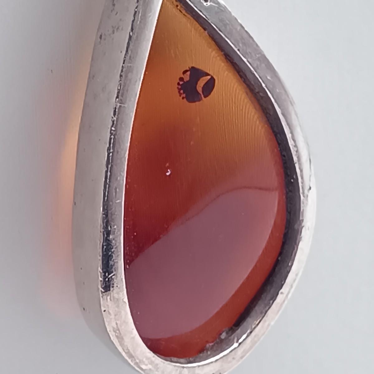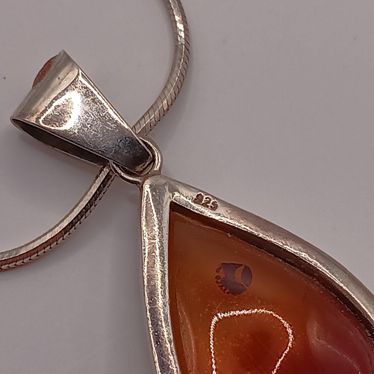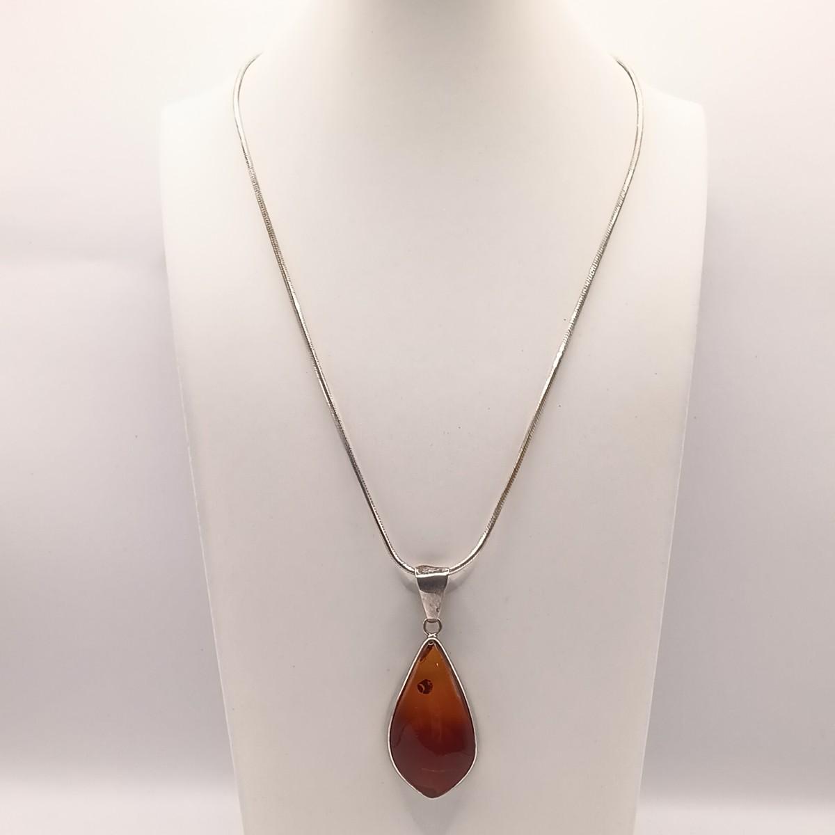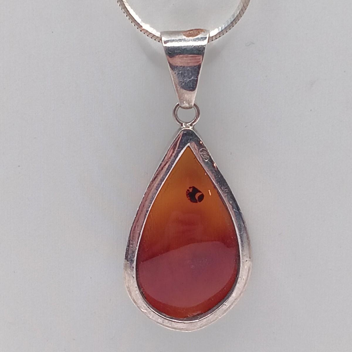 LOT 50: Two Sterling Silver Pendant Necklaces- A Sterling Carnelian & Moonstone pendant and an Amber Pendant and a Carnelian Gemstone Ring