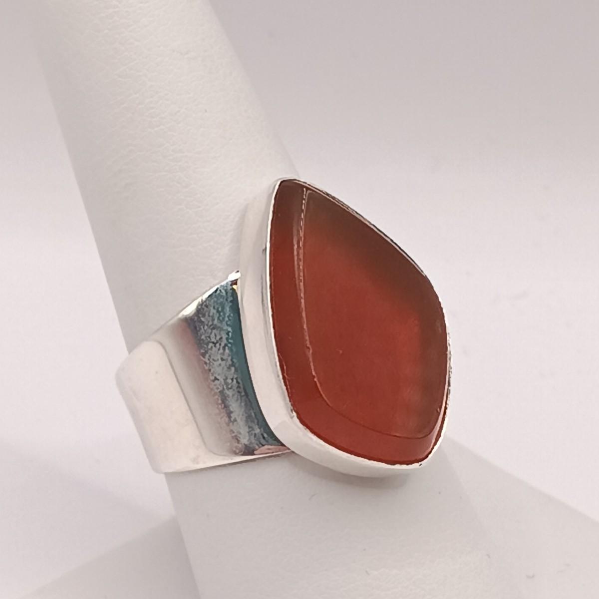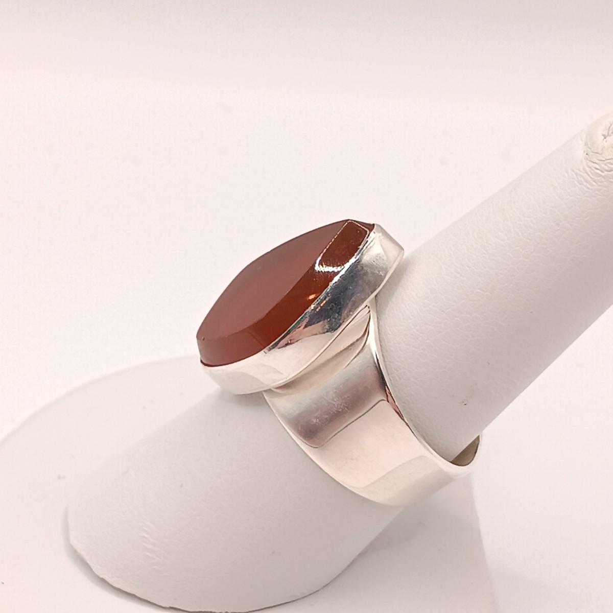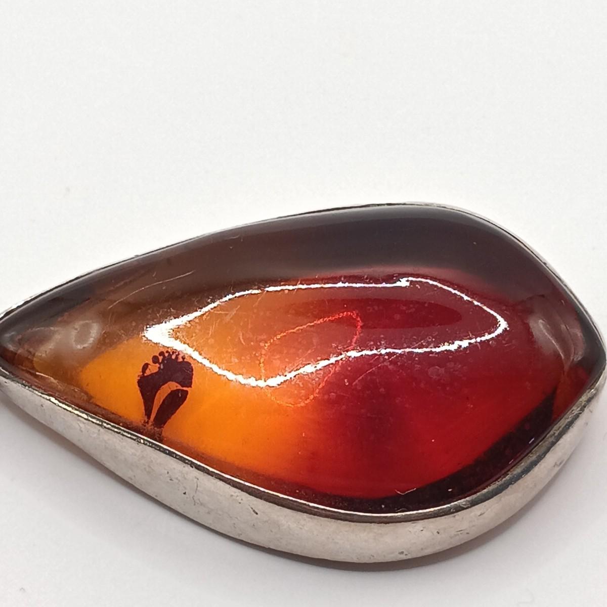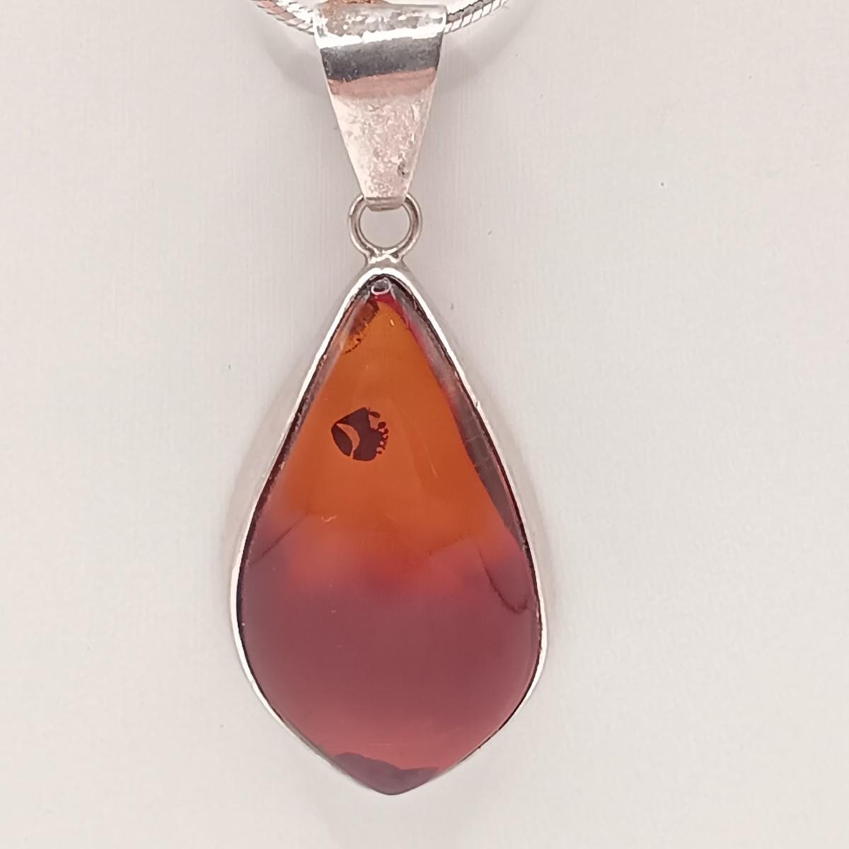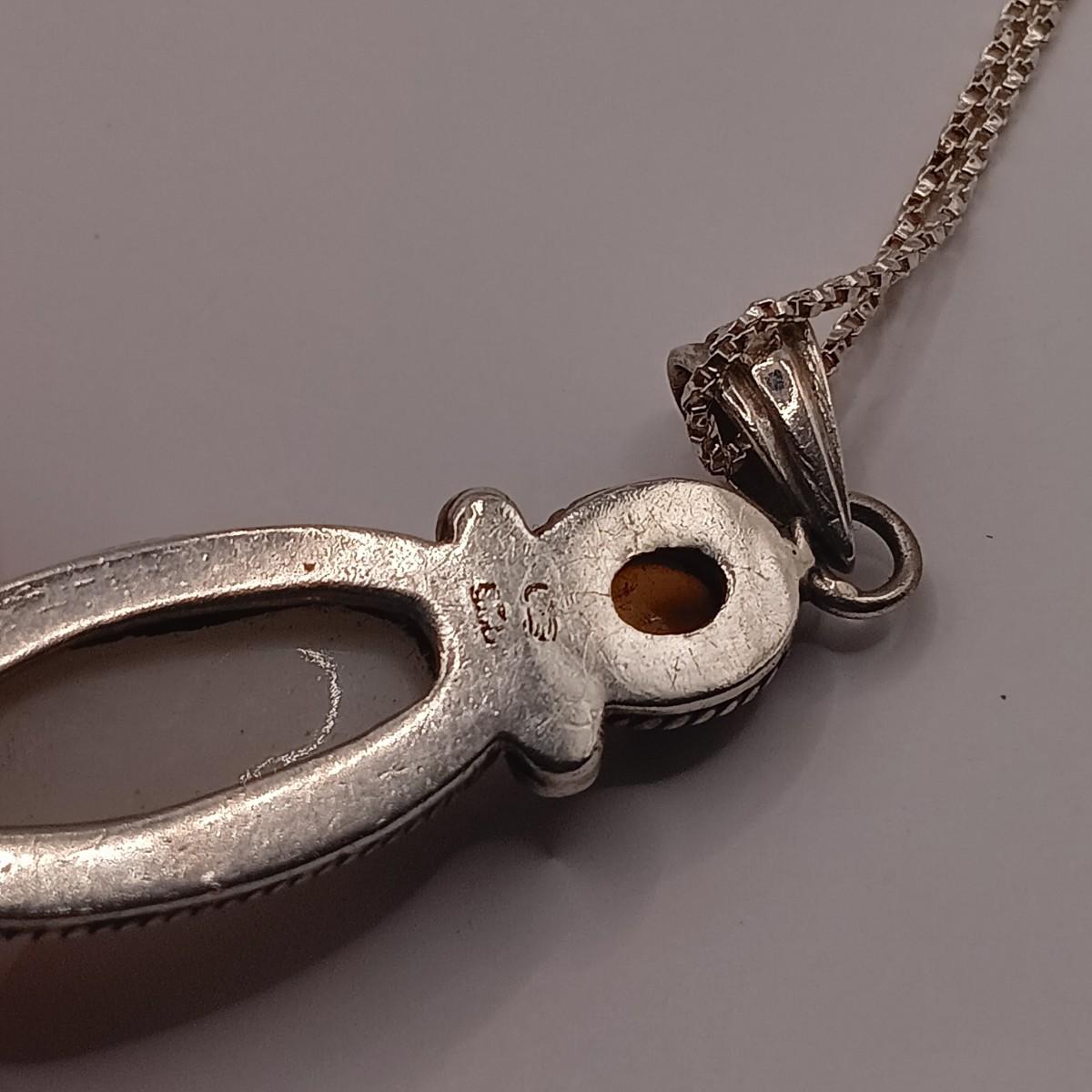 LOT 50: Two Sterling Silver Pendant Necklaces- A Sterling Carnelian & Moonstone pendant and an Amber Pendant and a Carnelian Gemstone Ring