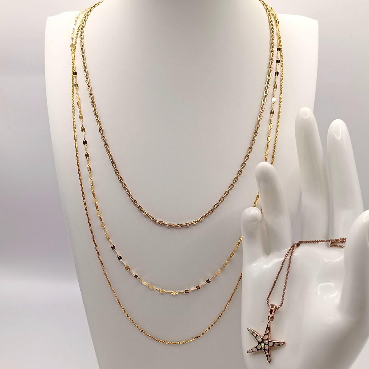 LOT 51: Speidel Gold-Filled Cable Link Necklace, Pair of JCM 925 Italy w/ Gold Overlay Chains and a Sterling 925 Italy Opal Starfish Pendant Necklace