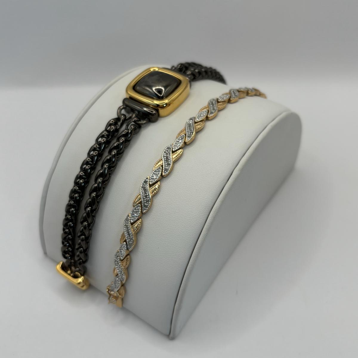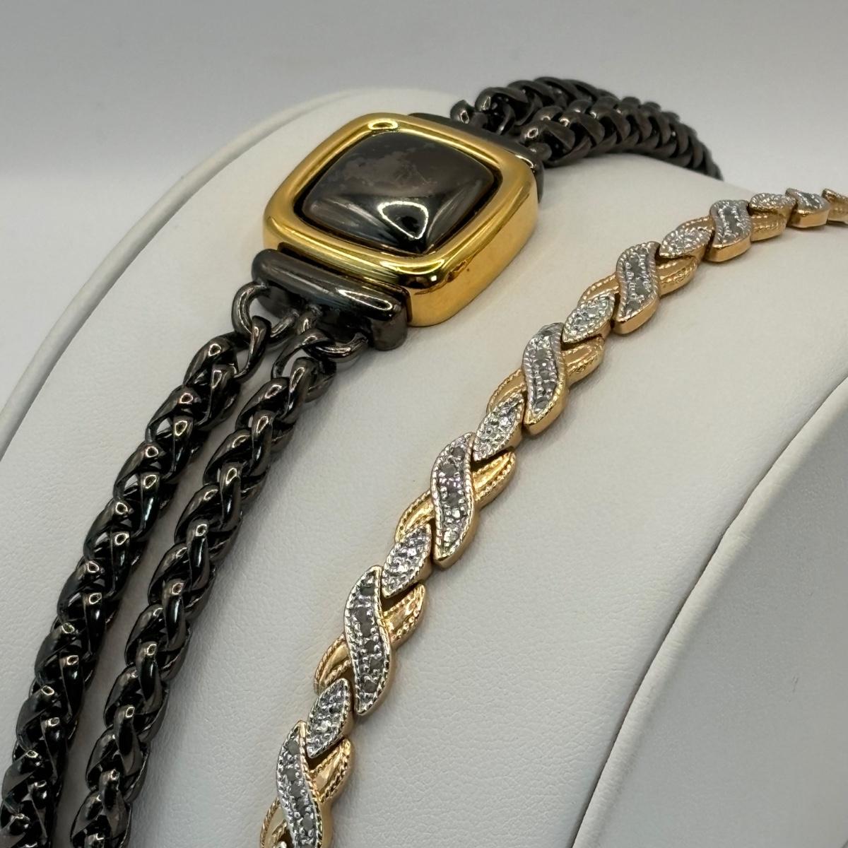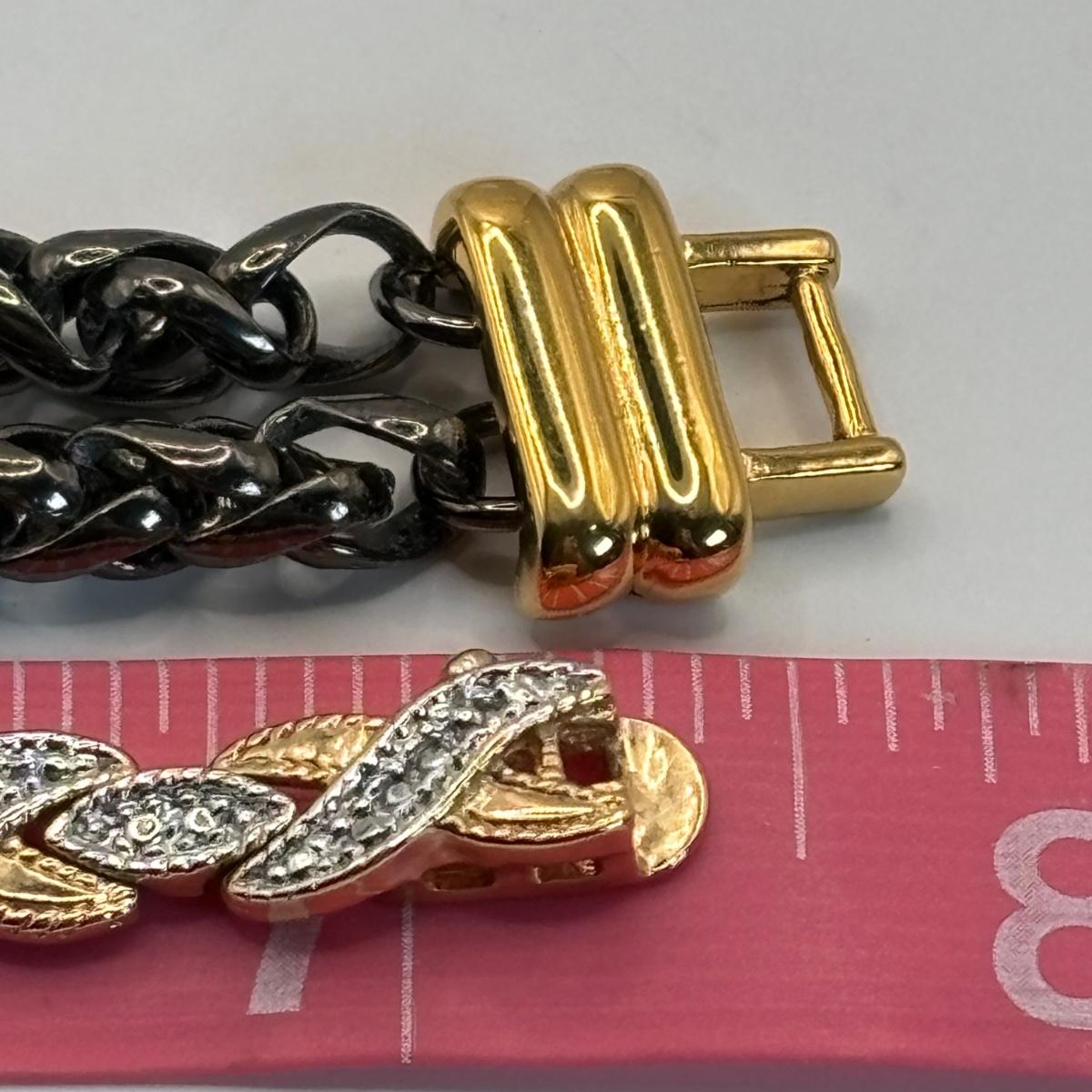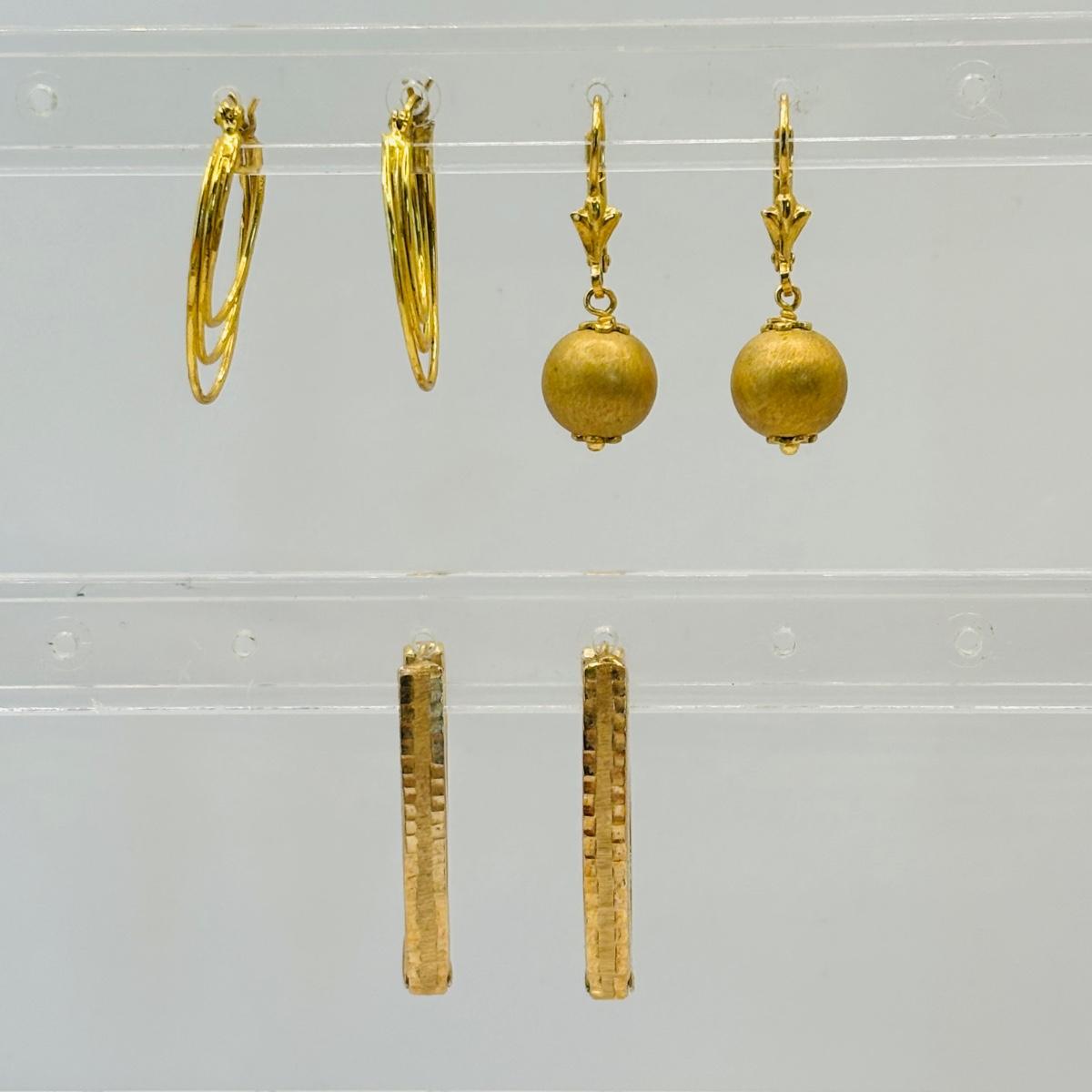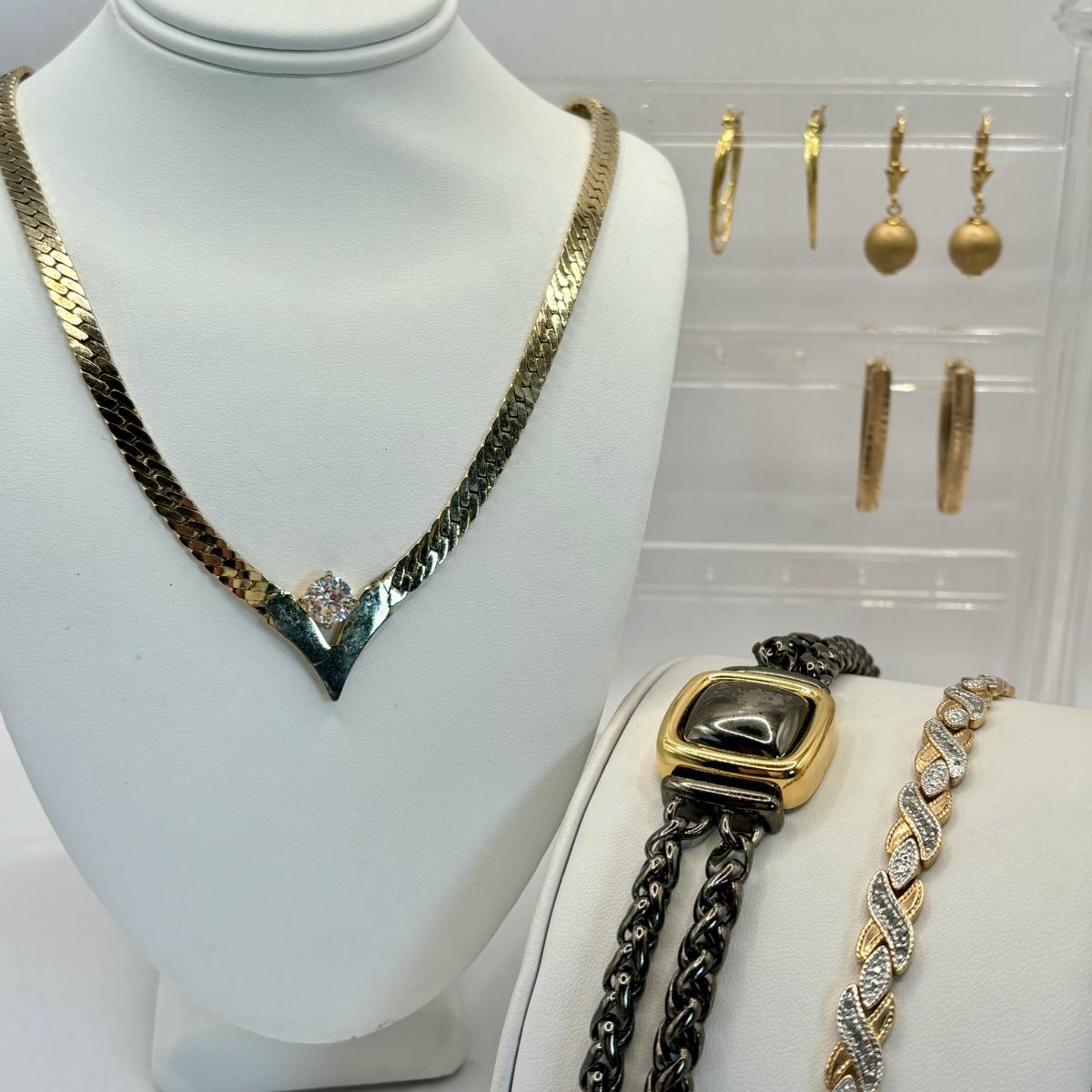 LOT 56: Three Pairs of Gold Vermeil Earrings, Monet Bracelet, Gold Tone V-Necklace w/Rhinestone & a Two Tone Bracelet