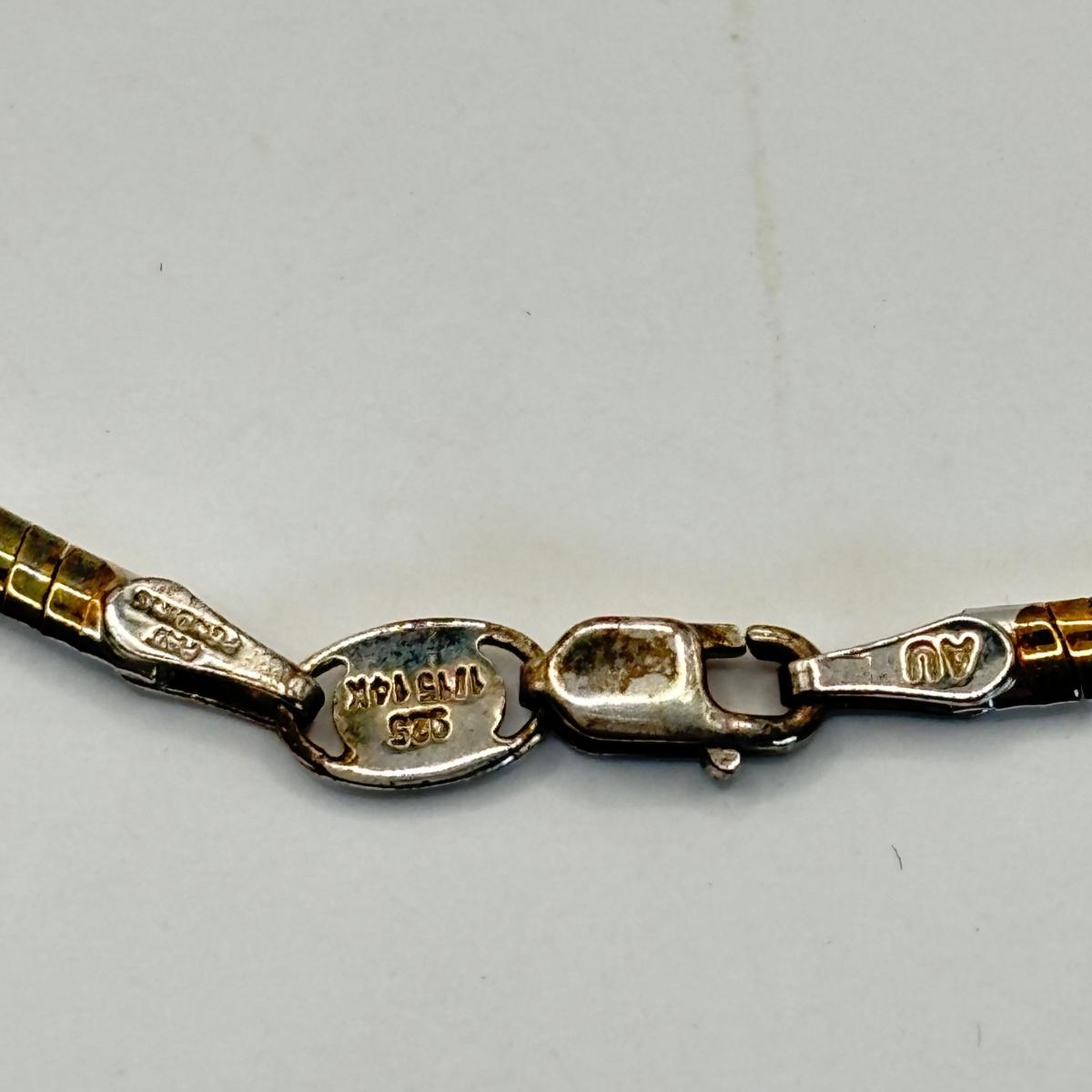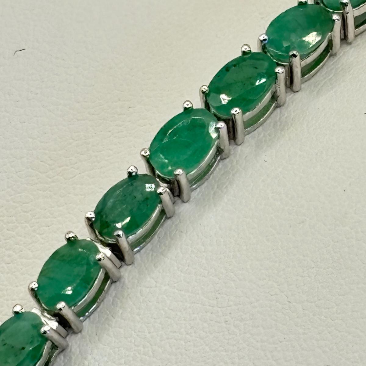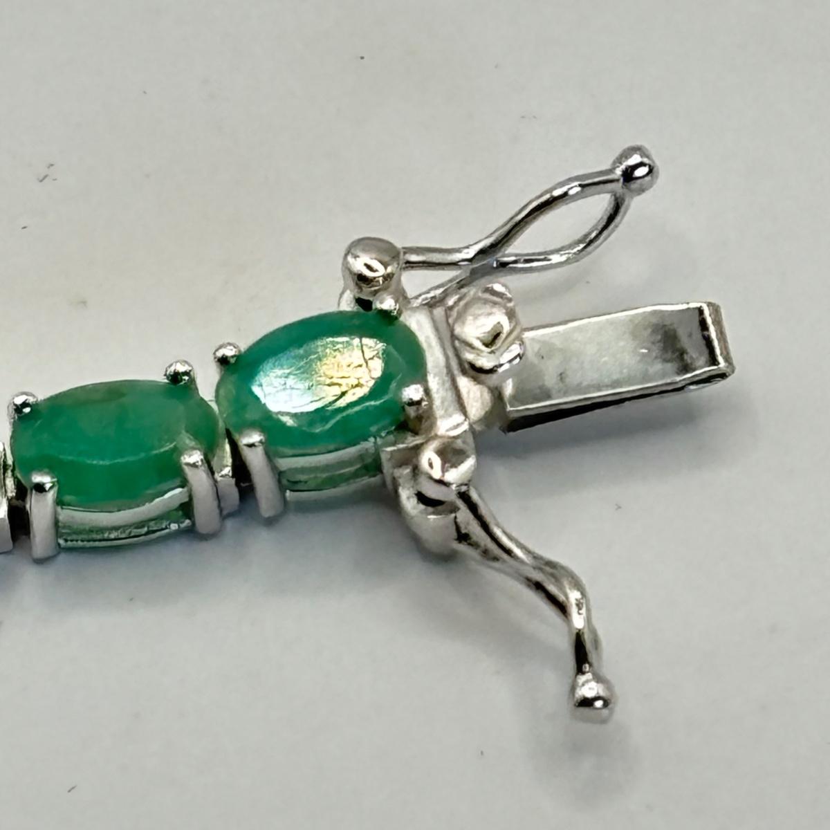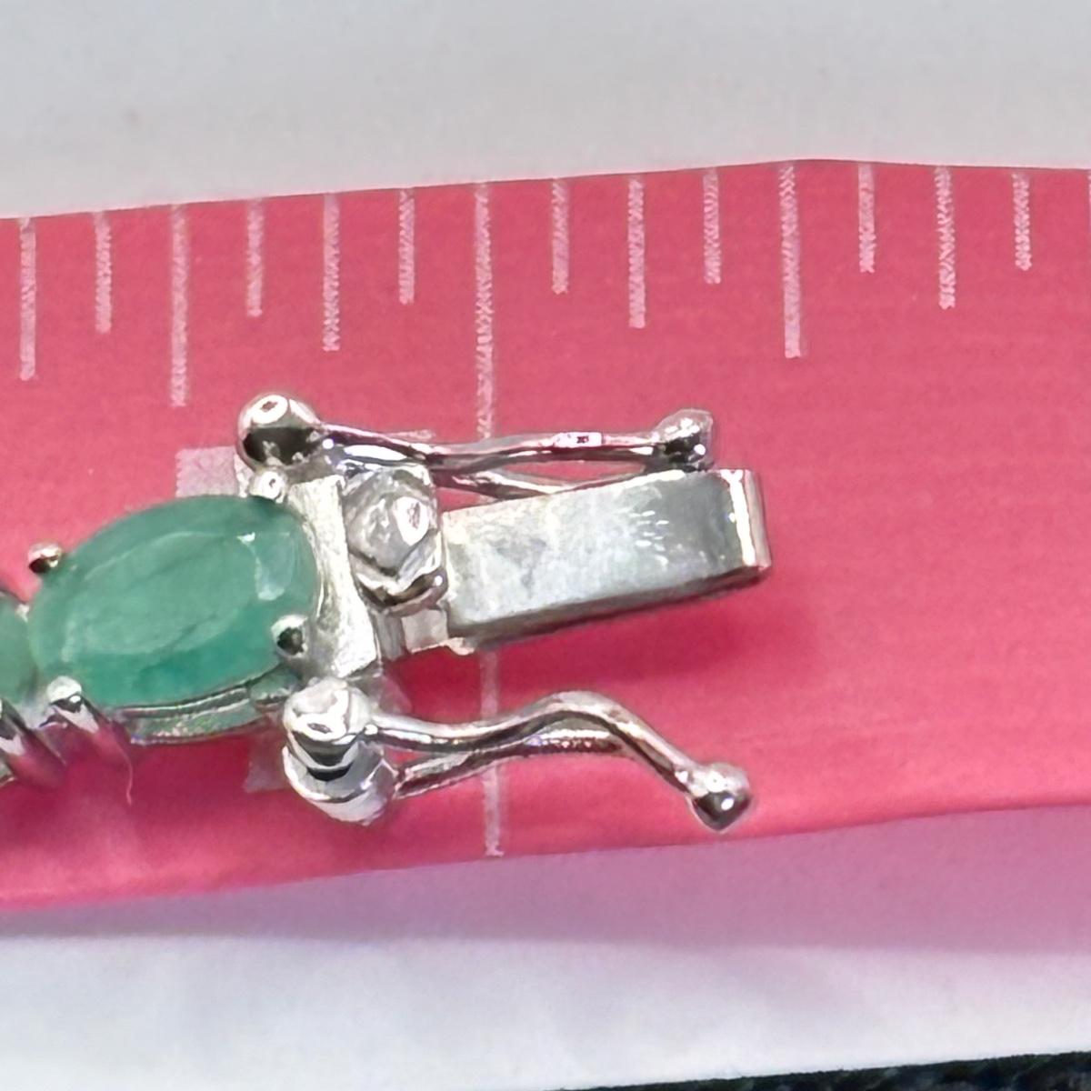 LOT 64: QVC Affinity Gems Sterling Silver (KJC 925) Emerald Tennis Bracelet, Solvar 925 Sterling Silver Claddagh Ireland Ring Sz. 8, Sterling Silver Omega Choker (925, 1/15 14k, Peru AU) .5