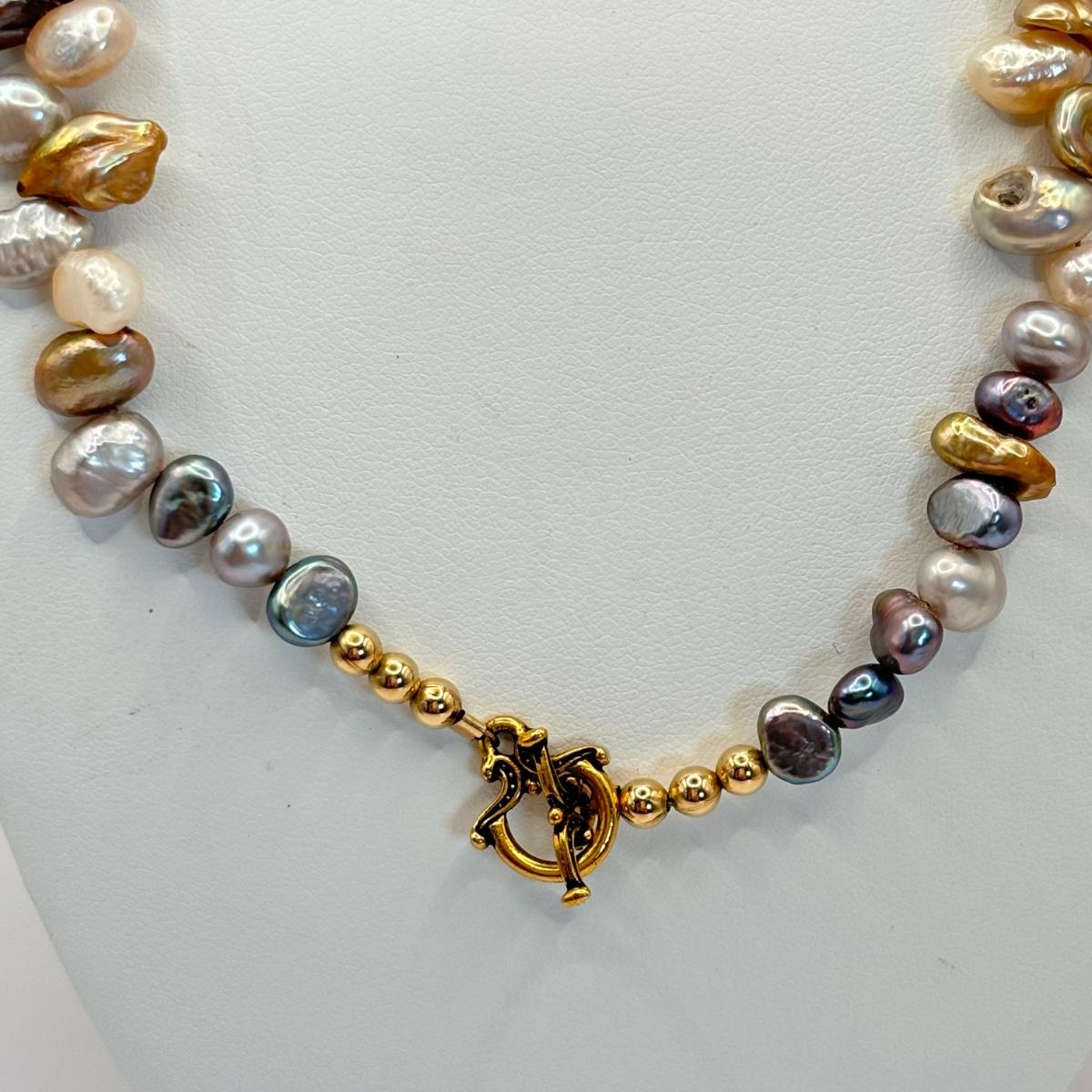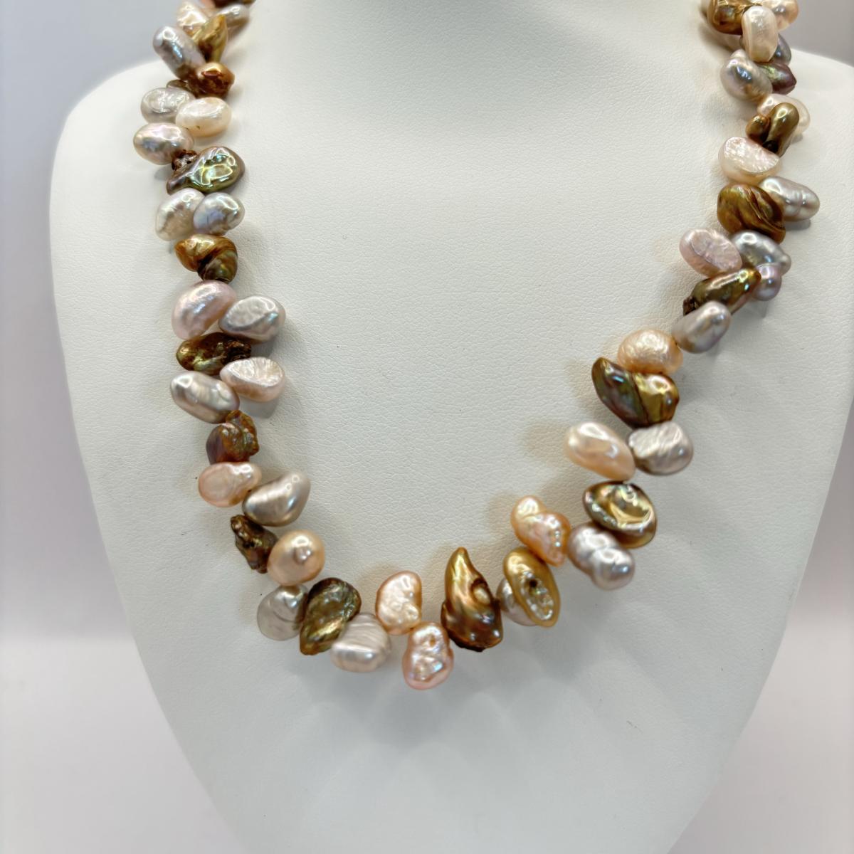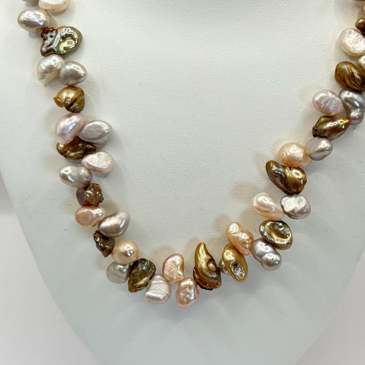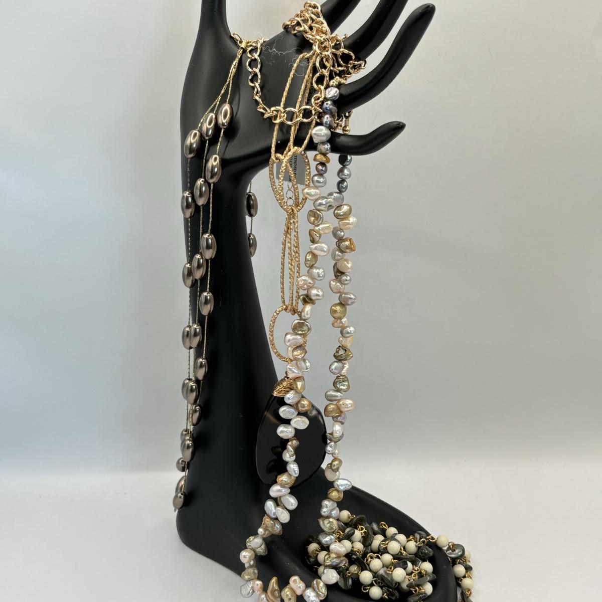 LOT 67: Necklace Collection: Freshwater Keshi Tahitian Pearls, Vintage Monet Gold-tone Triple-Strand Beaded Necklace Champagne/Taupe Beads and more