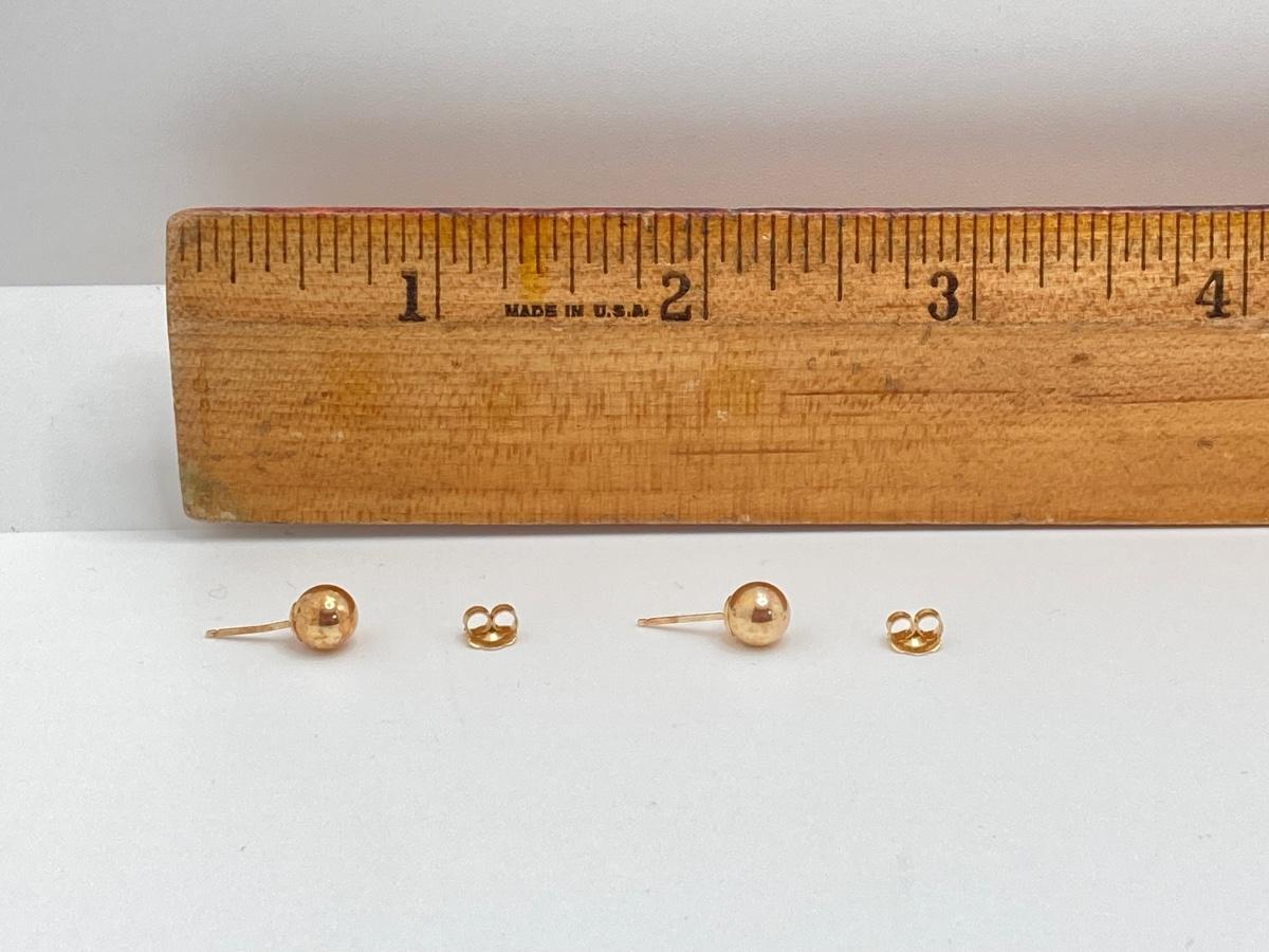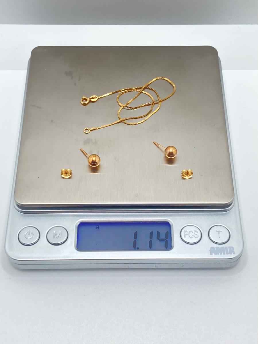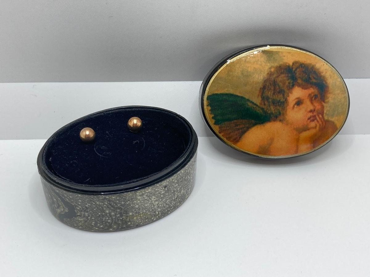 LOT 83: Gold Stud Pierced Earrings in Angel Trinket Box and Italy Gold Bracelet / Anklet - 14KT, TW 1.14g