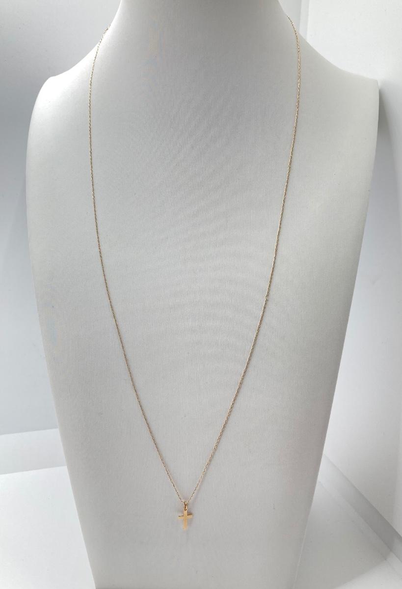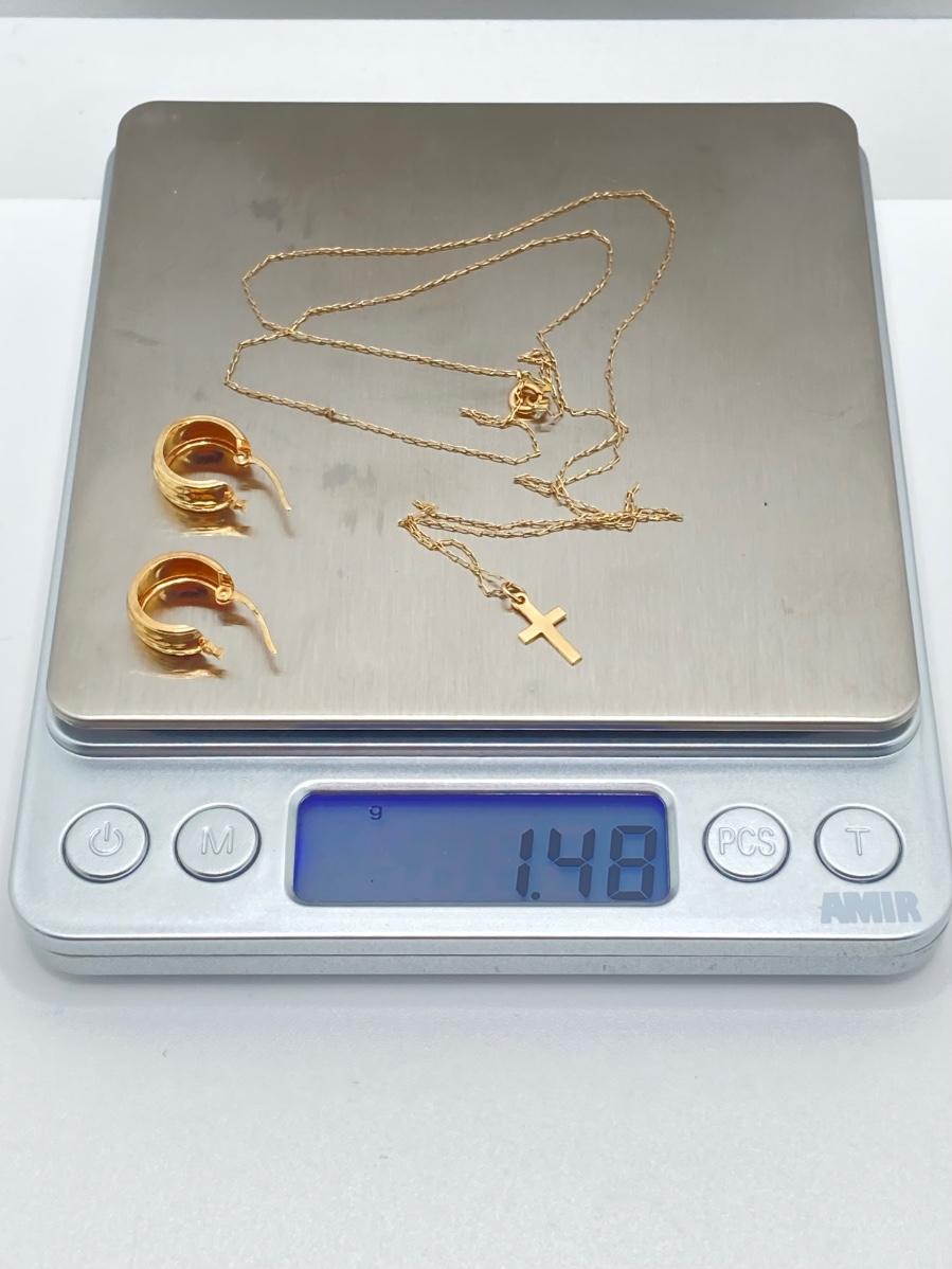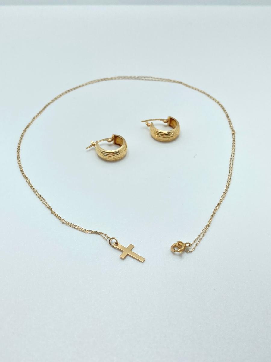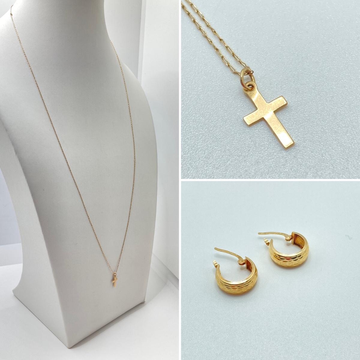 LOT 84: Gold Chain with Small Cross Charm / Pendant and Small Gold Hoop Earrings - 14KT, TW 1.48g