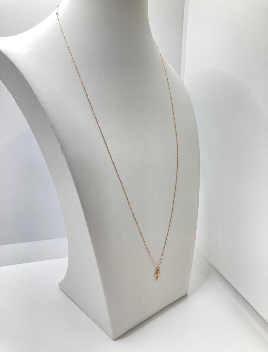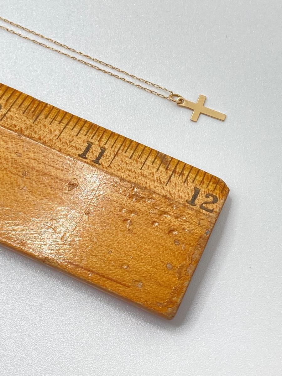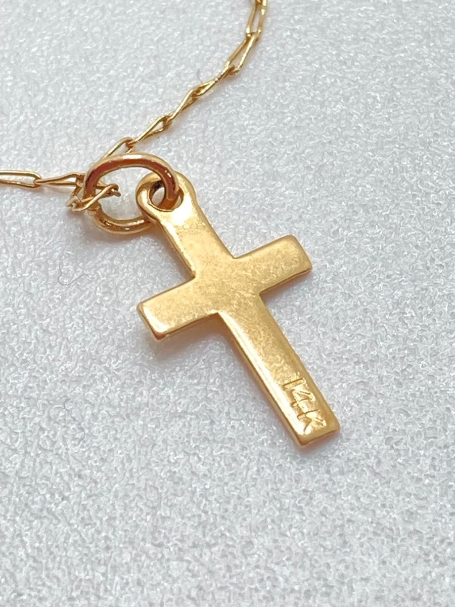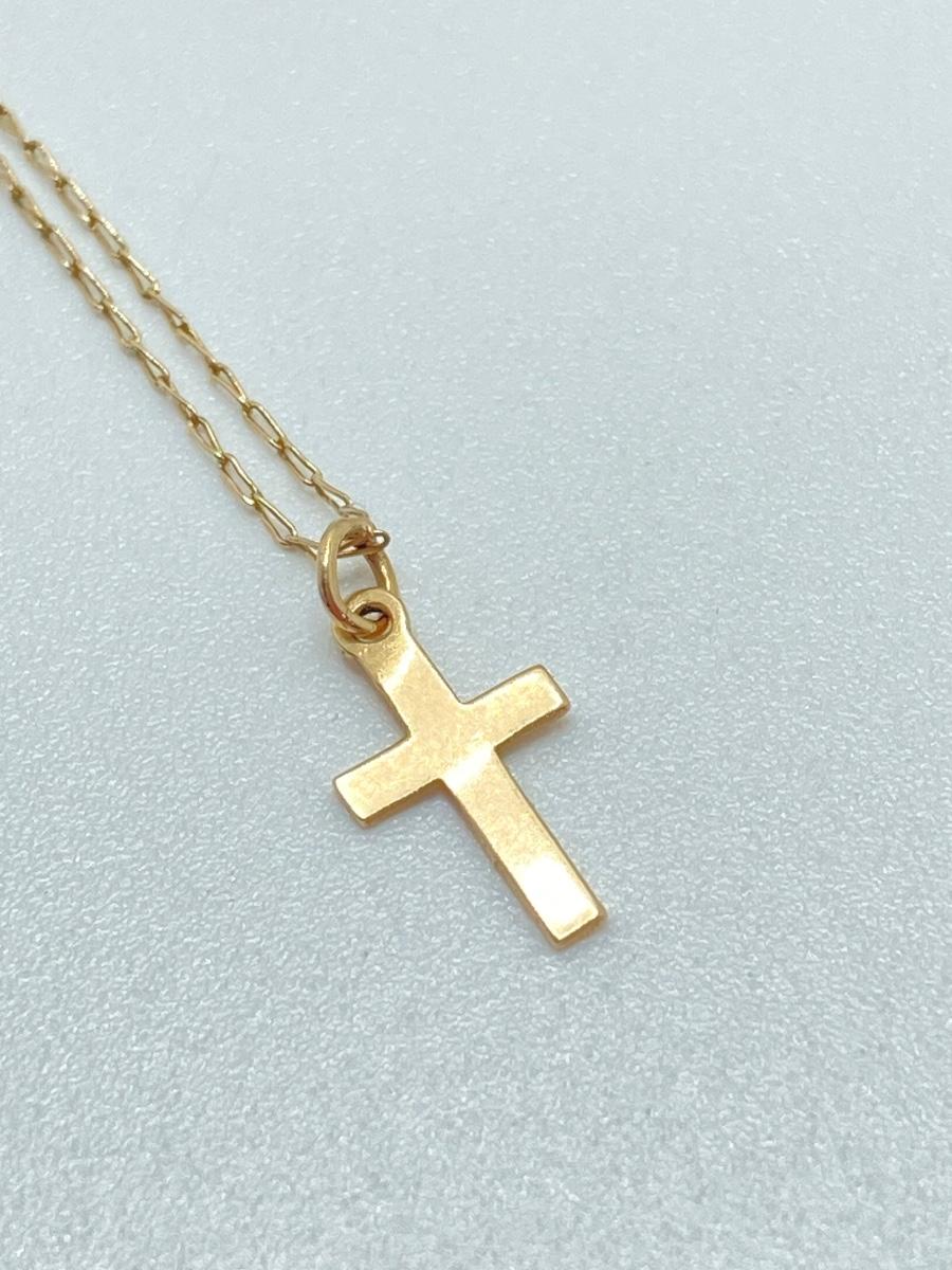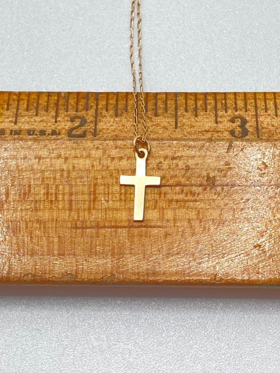LOT 84: Gold Chain with Small Cross Charm / Pendant and Small Gold Hoop Earrings - 14KT, TW 1.48g