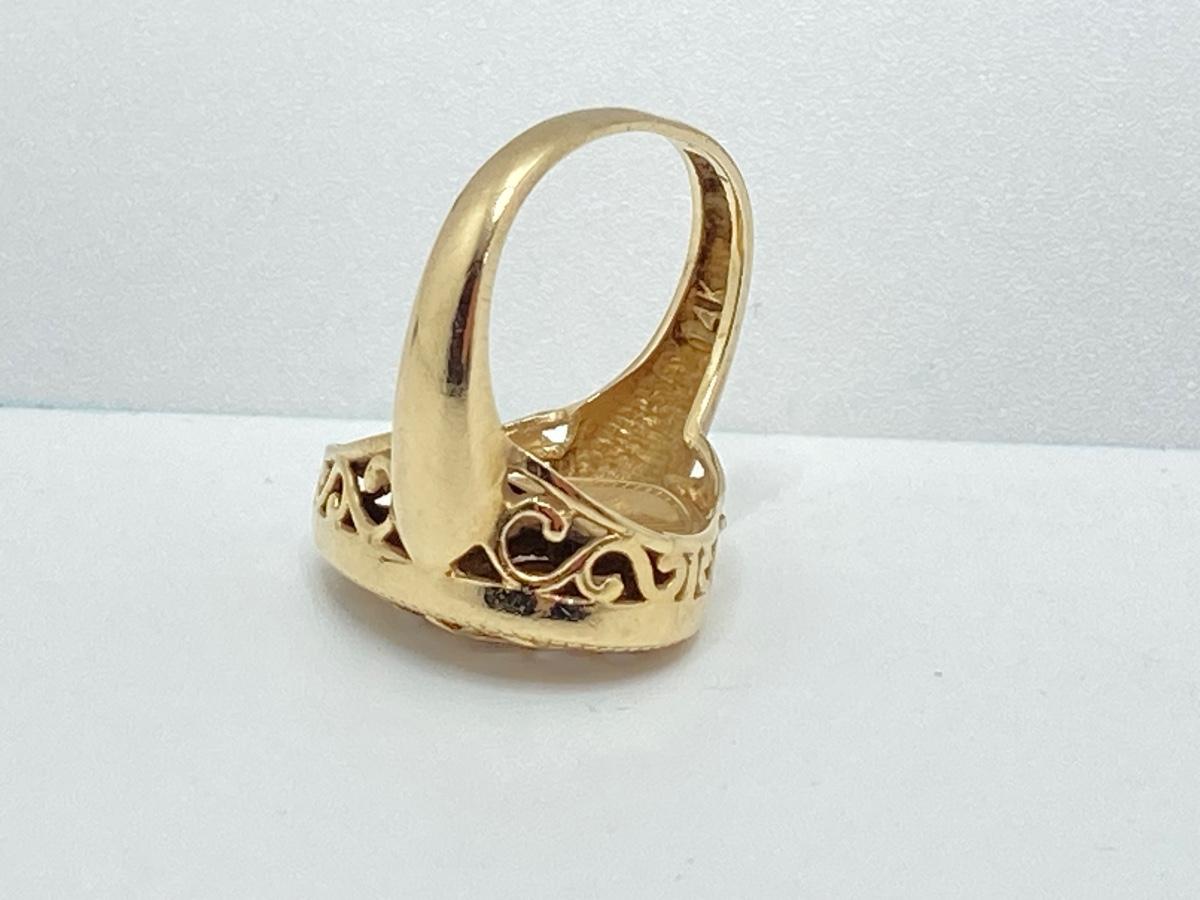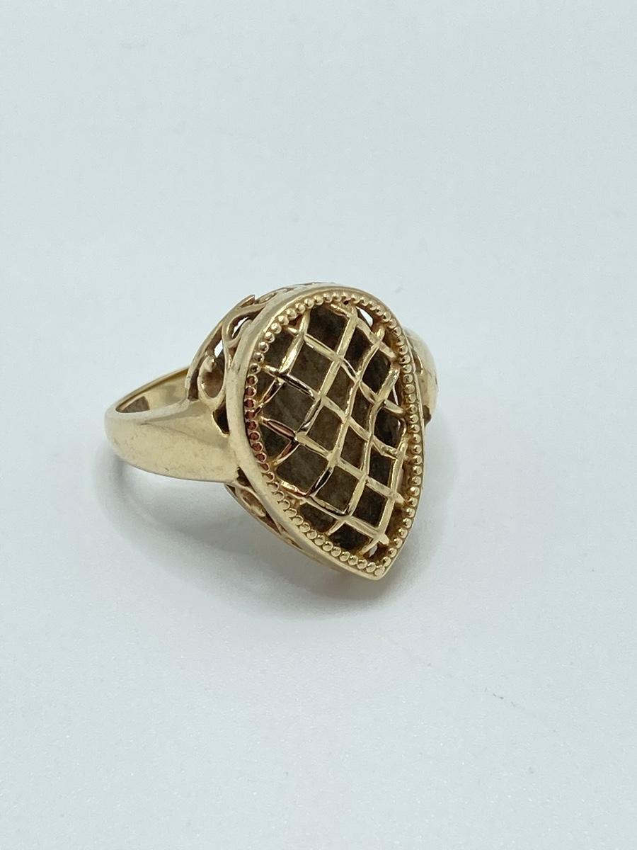 LOT 86: US Gold Pear Shaped Lattice Style Ring for Repair or Scrap - 14KT, TW 5.16g, Sz 7.5