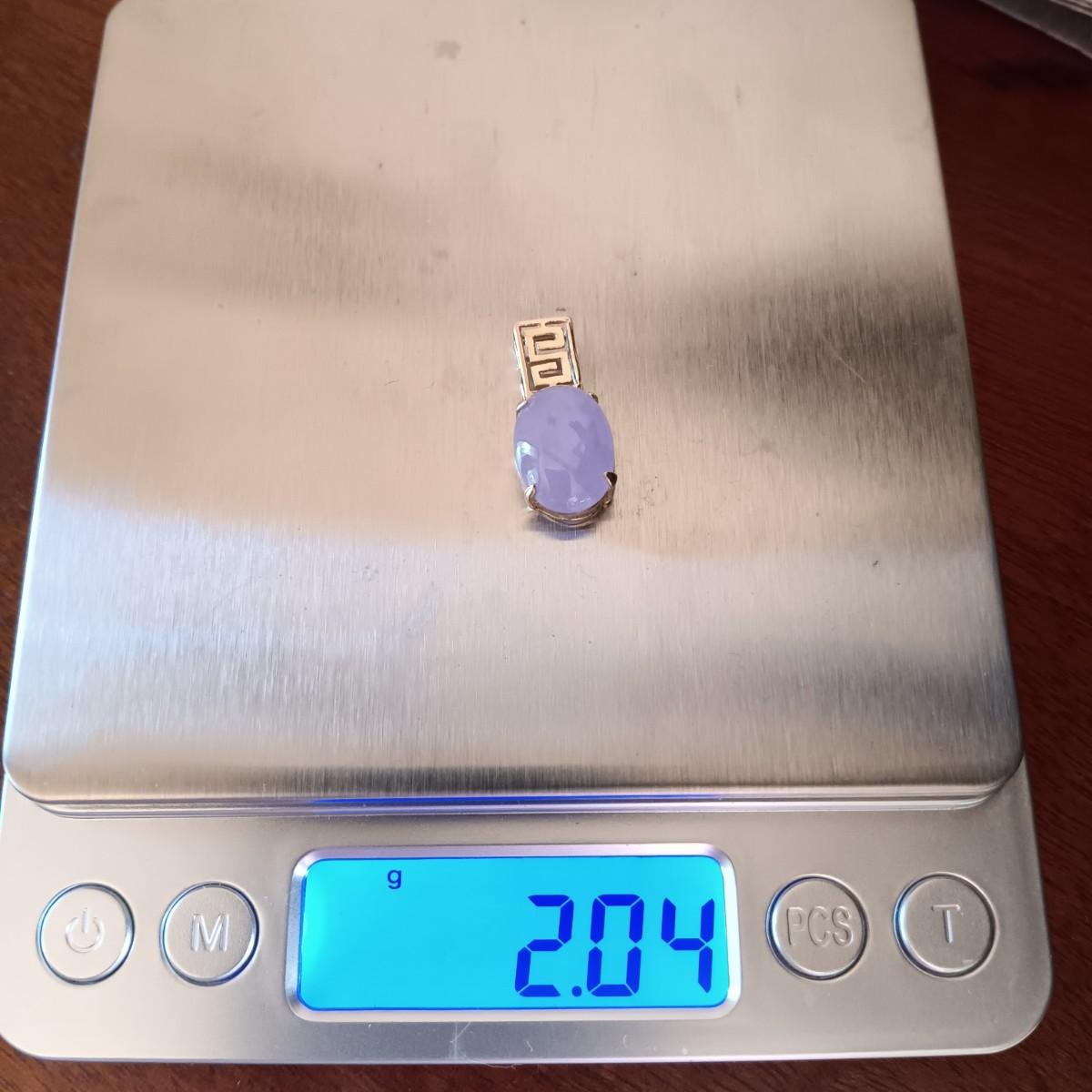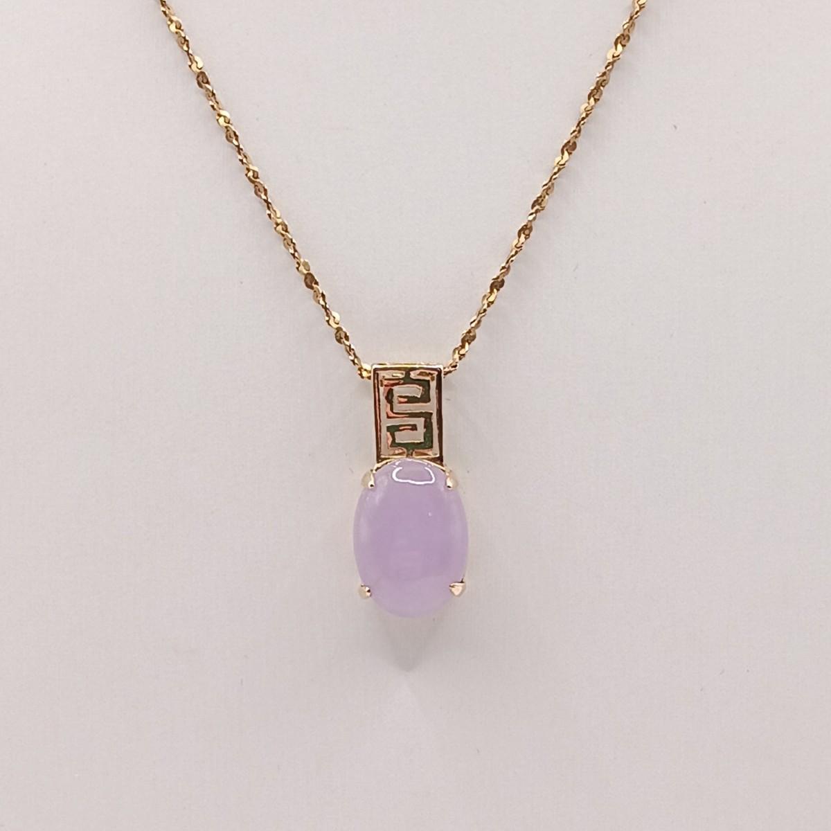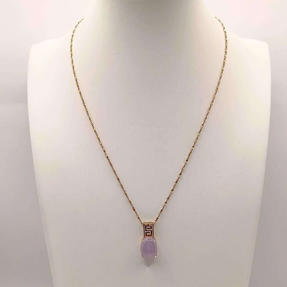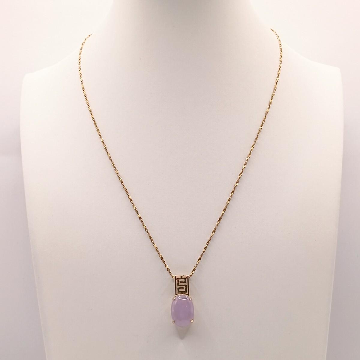 LOT 128: 14K Gold Chain 2.07g and Pendant with Lavender Jadeite Stone