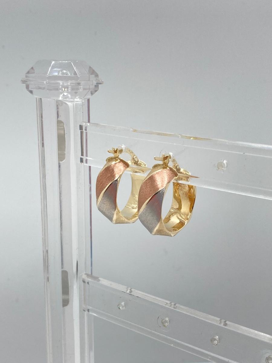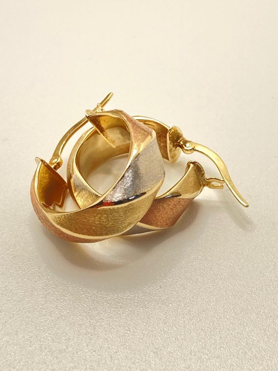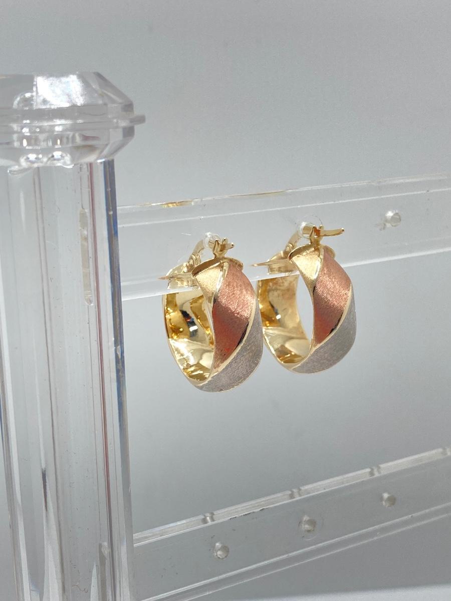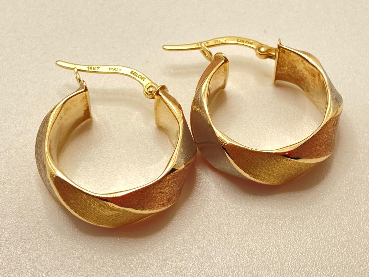 LOT 138: Tri-Colored Milor Italy Brushed Gold Hoop Earrings - 14KT, TW 2.58g