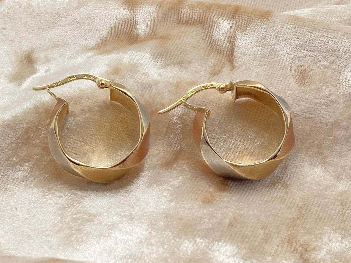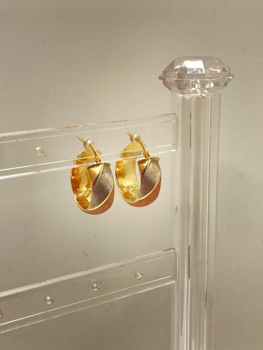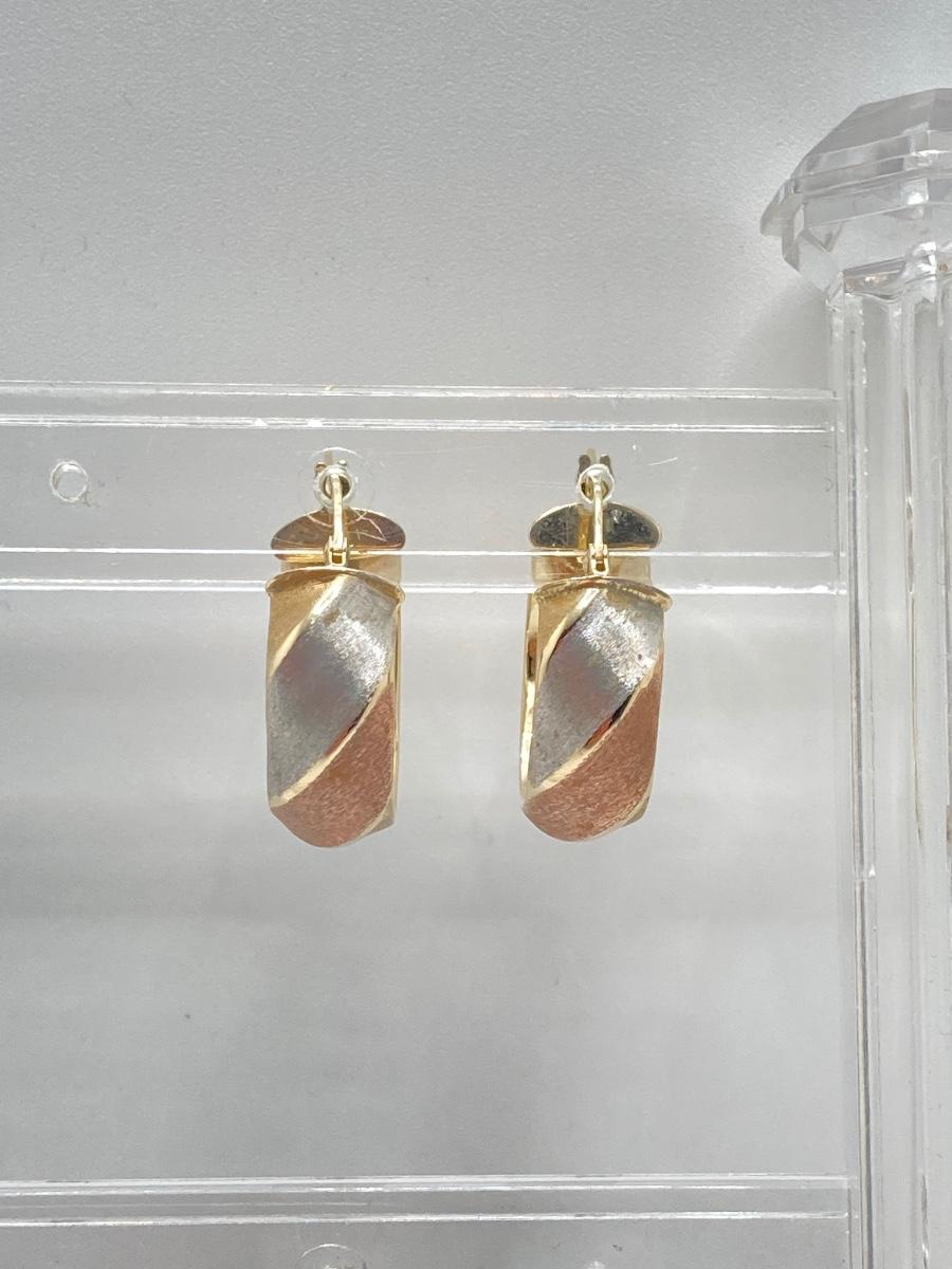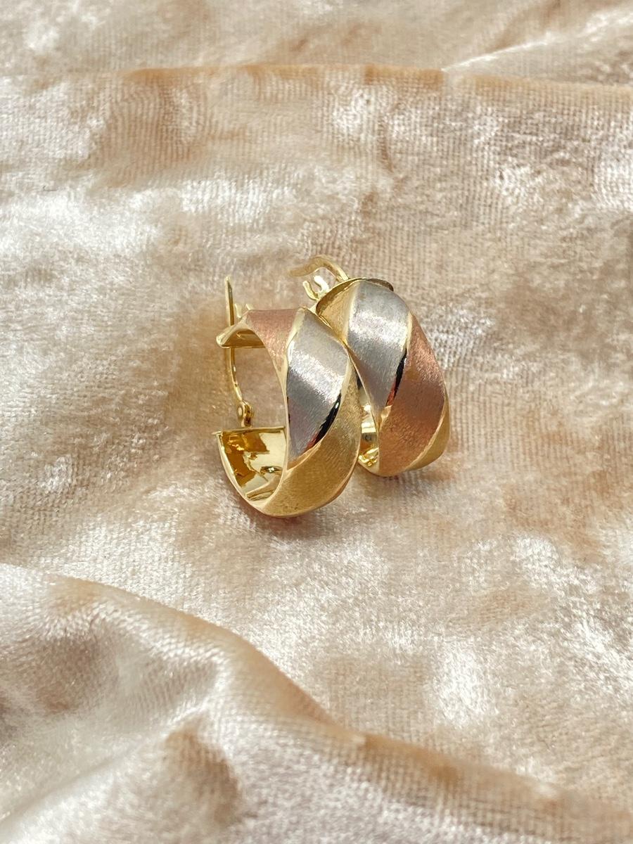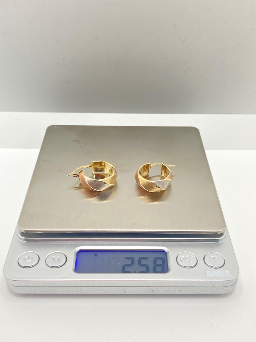 LOT 138: Tri-Colored Milor Italy Brushed Gold Hoop Earrings - 14KT, TW 2.58g