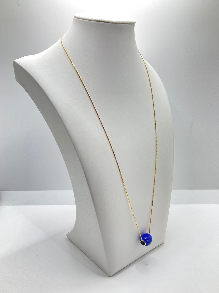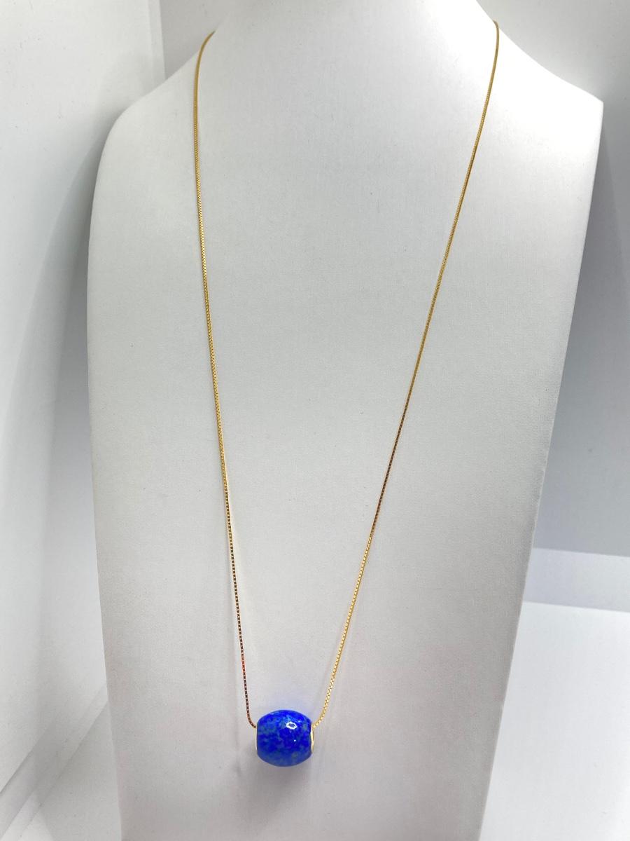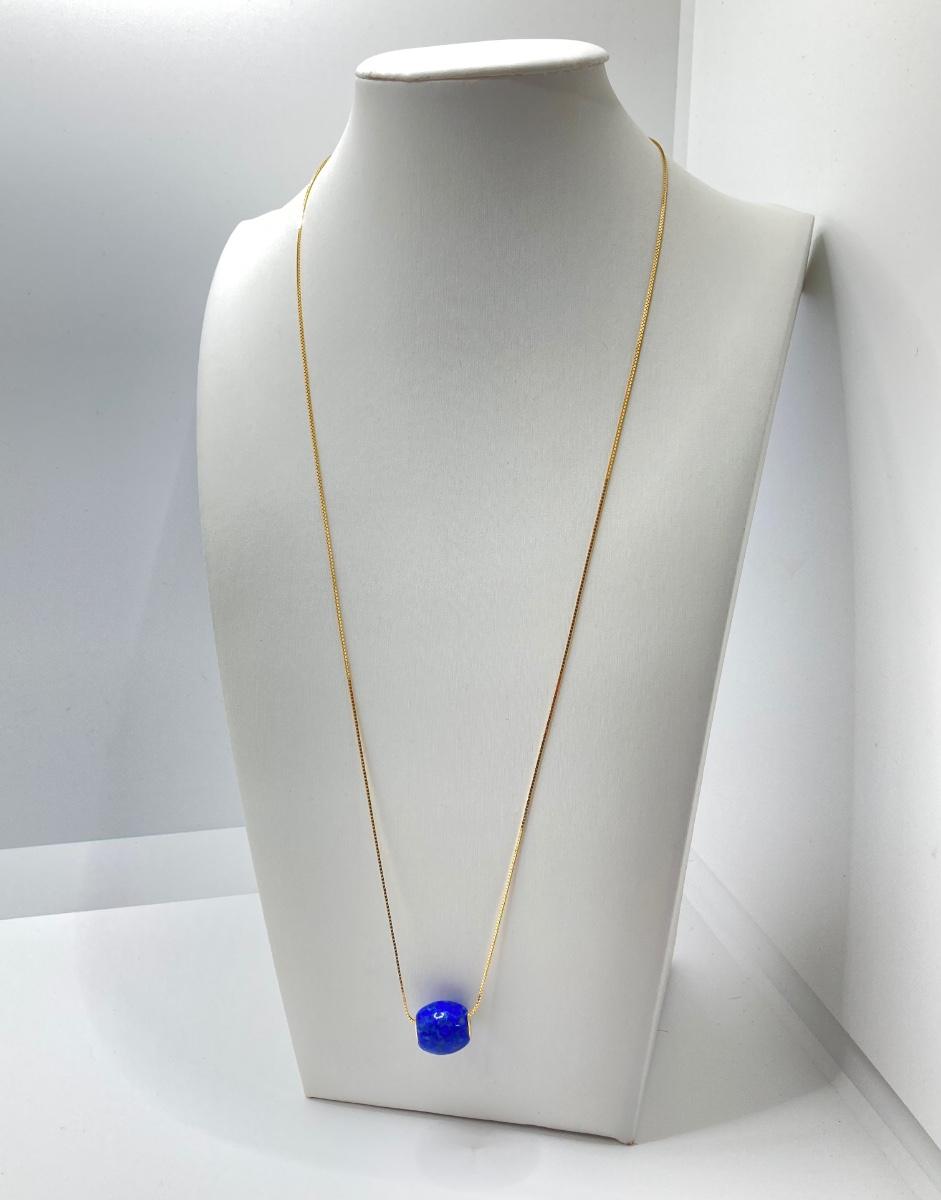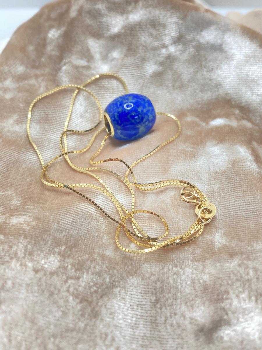 LOT 142: OTC Italy Gold Chain with Blue Stone Hong Kong Bead - 14KT, TW 1.80g (24" chain only weight)
