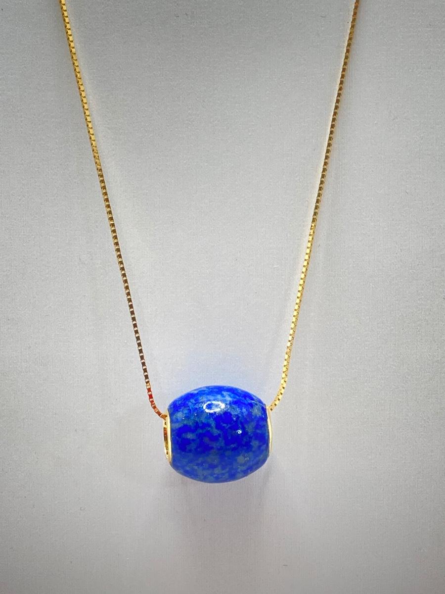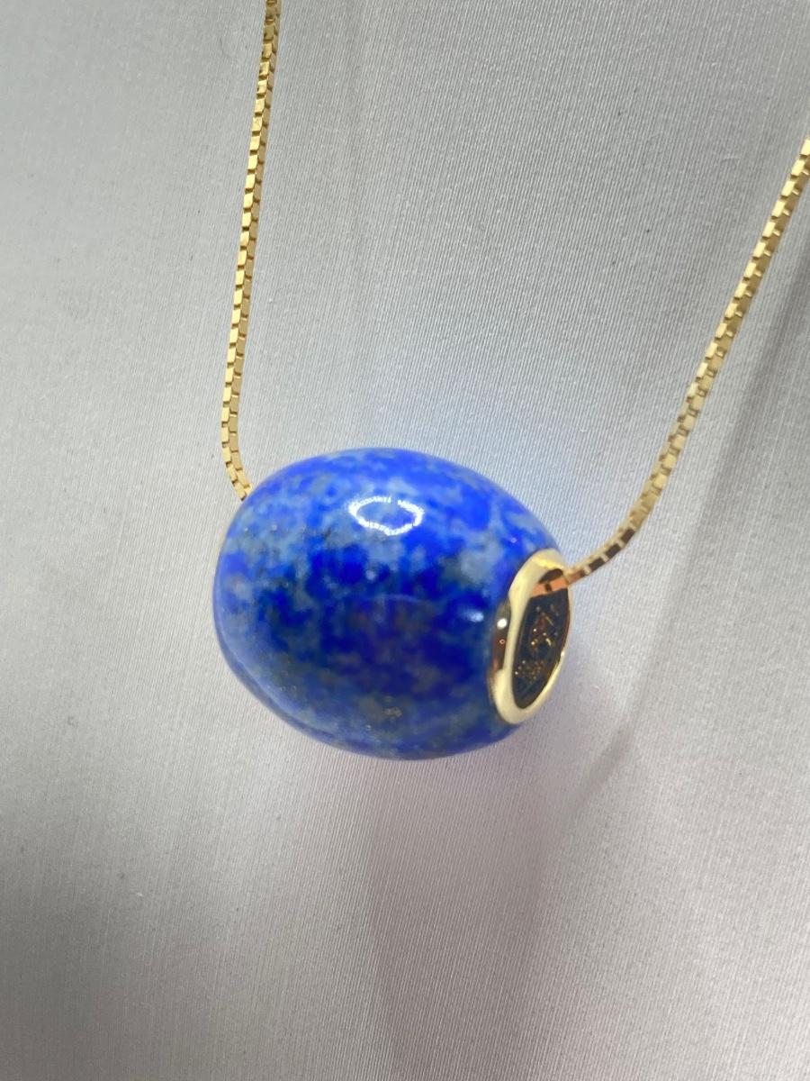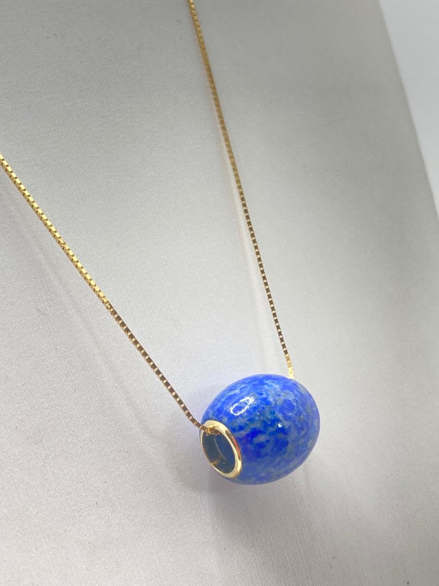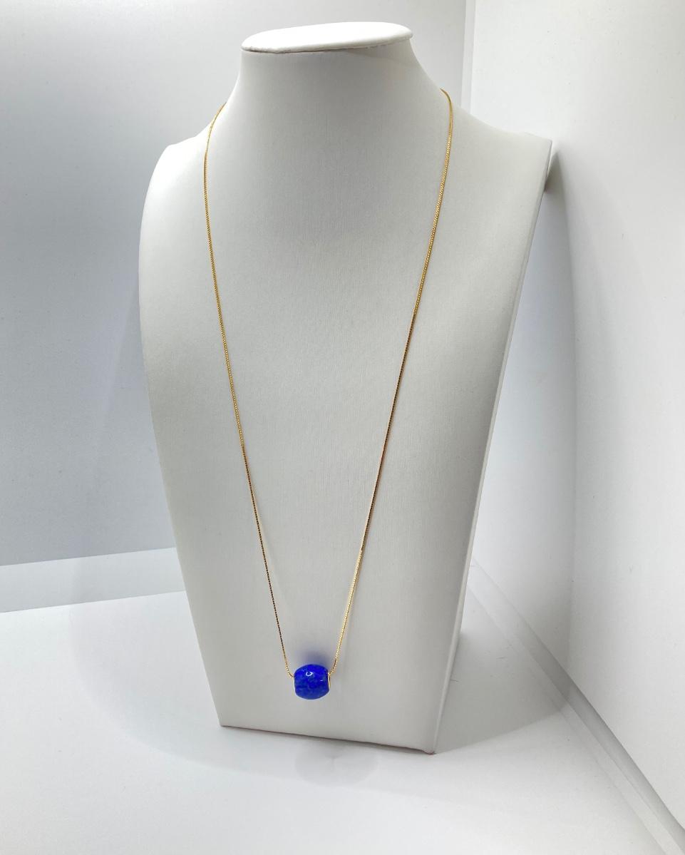 LOT 142: OTC Italy Gold Chain with Blue Stone Hong Kong Bead - 14KT, TW 1.80g (24" chain only weight)