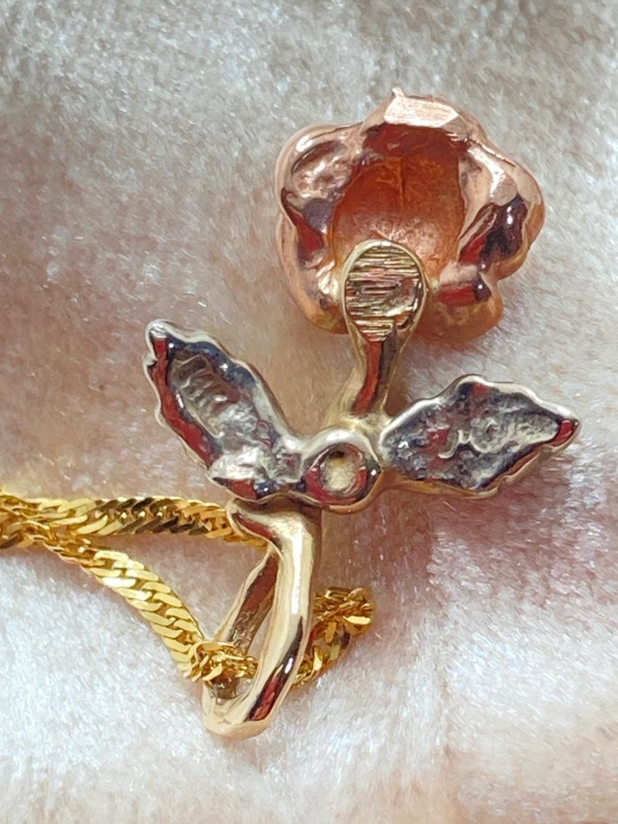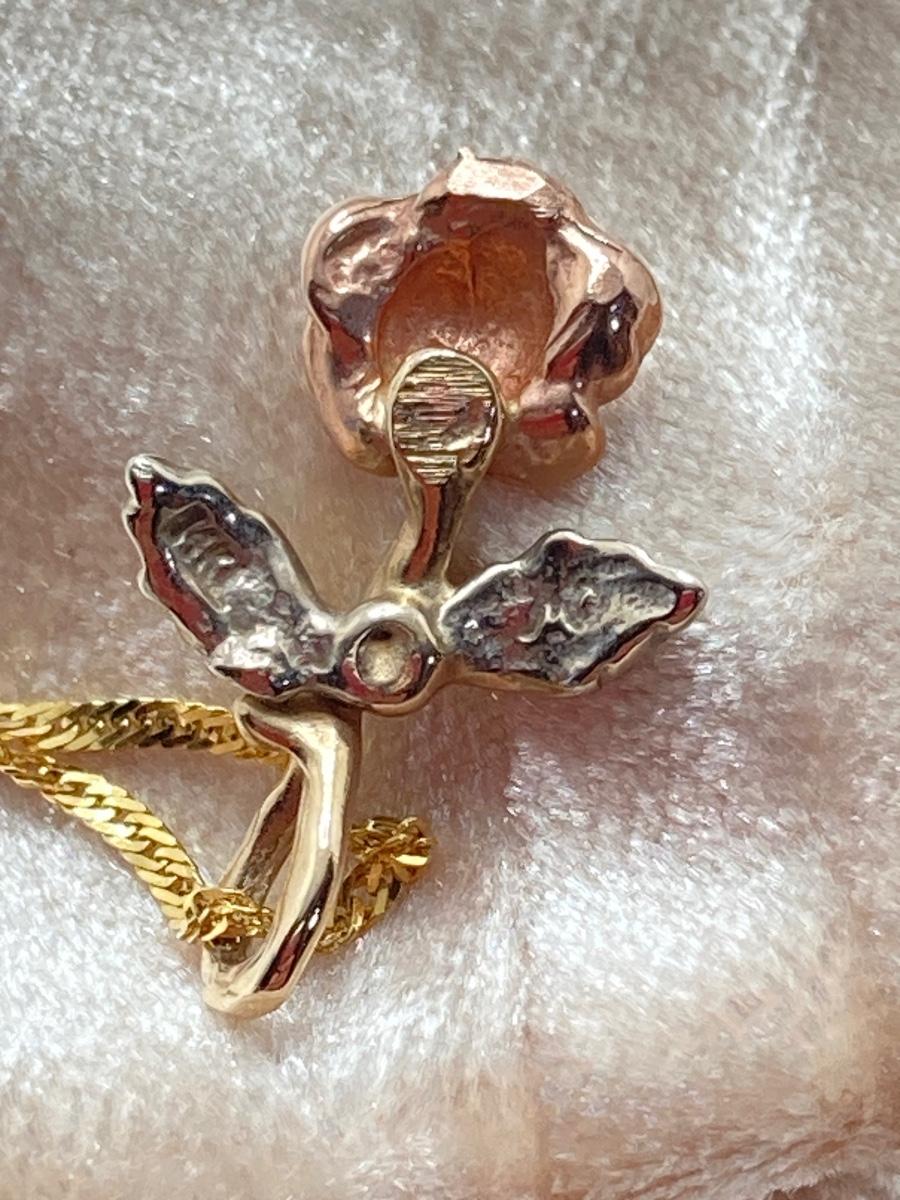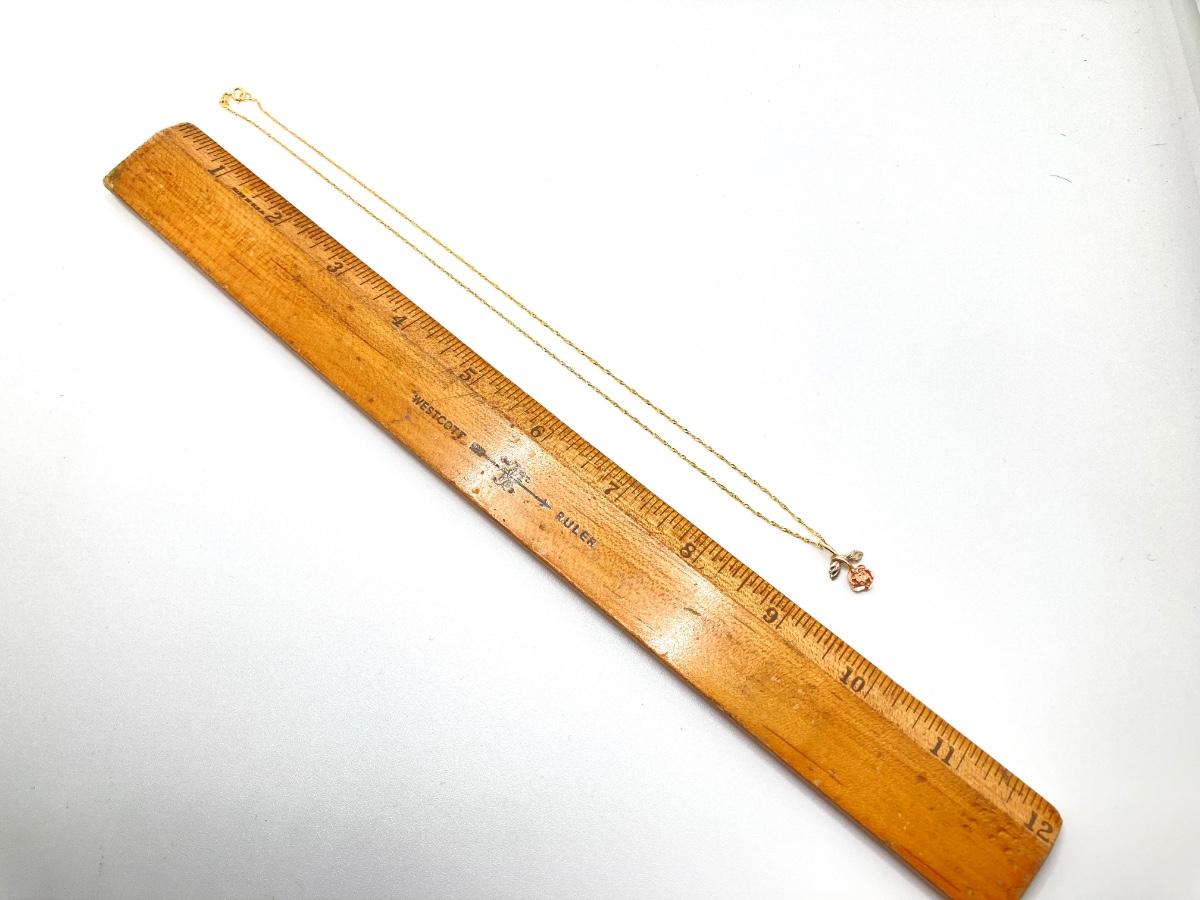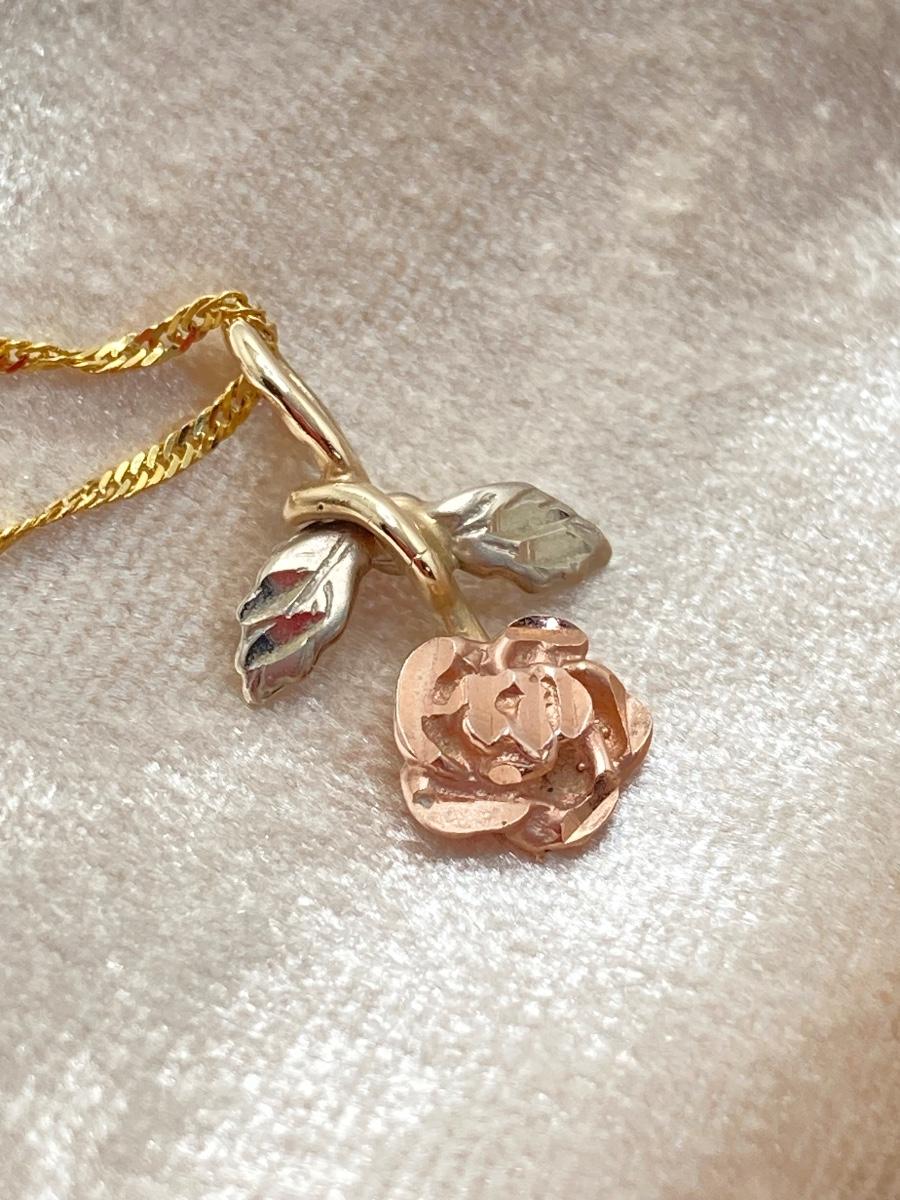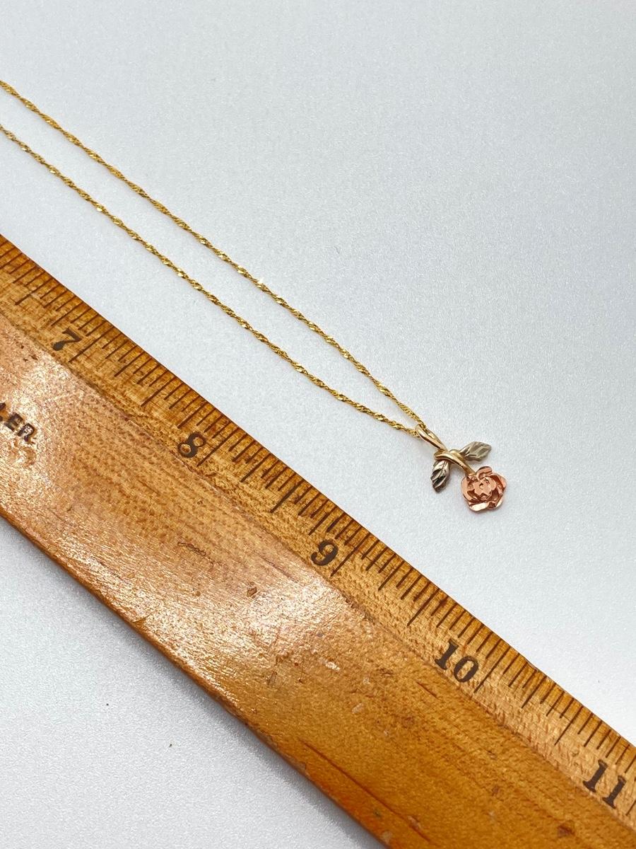 LOT 143: Diamond Cut Tri-Colored Gold Rose Pendant with Italy Gold Chain - 14KT, TW 1.90g