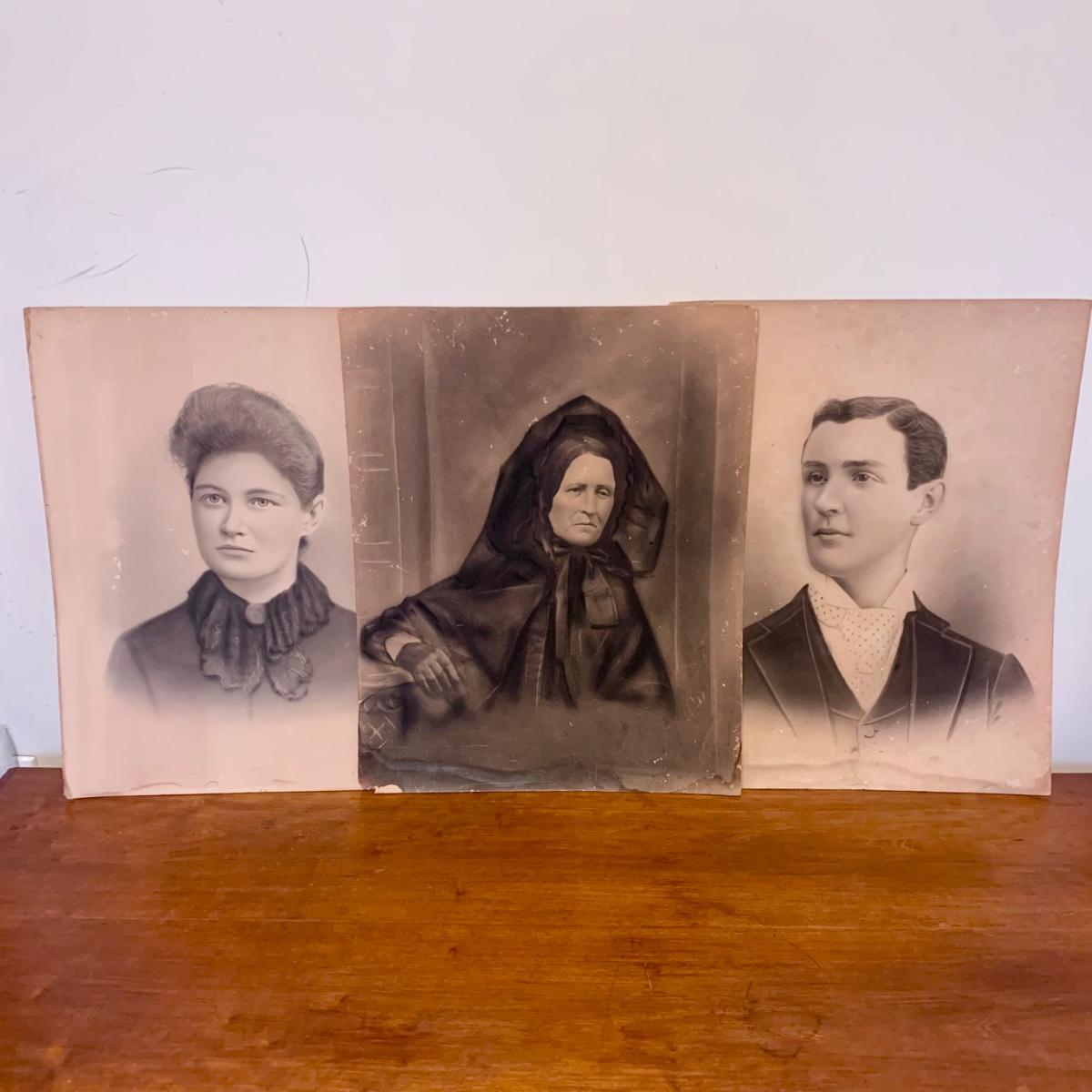 LOT 13 Z: Vintage / Antique Charcoal Portraits: Young Man, Young Women, & Women In Mourning