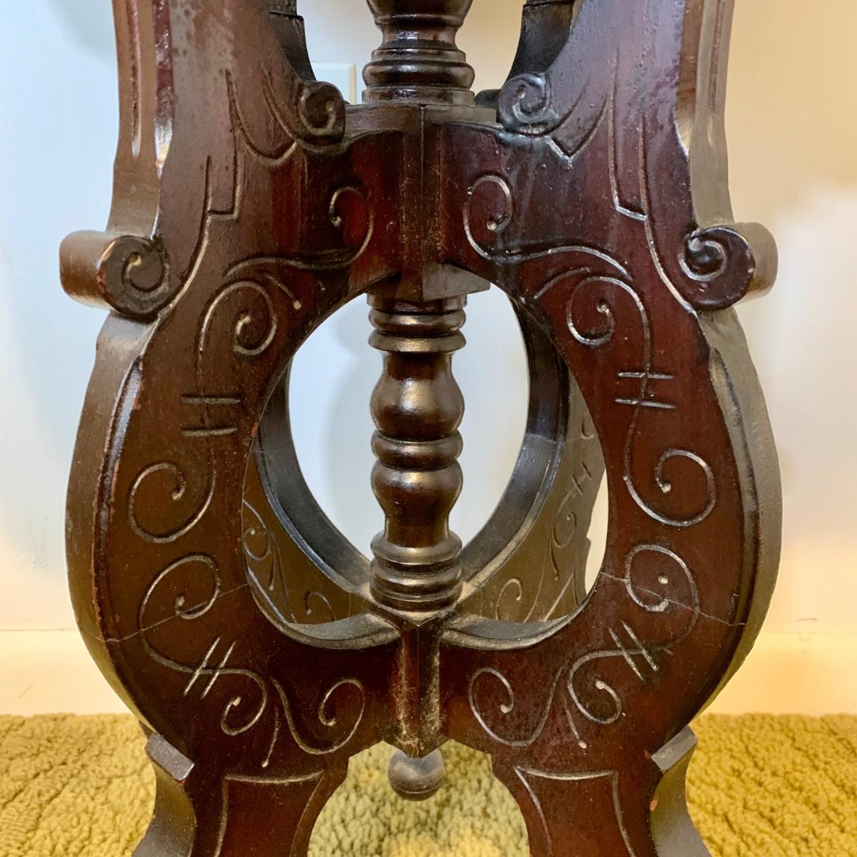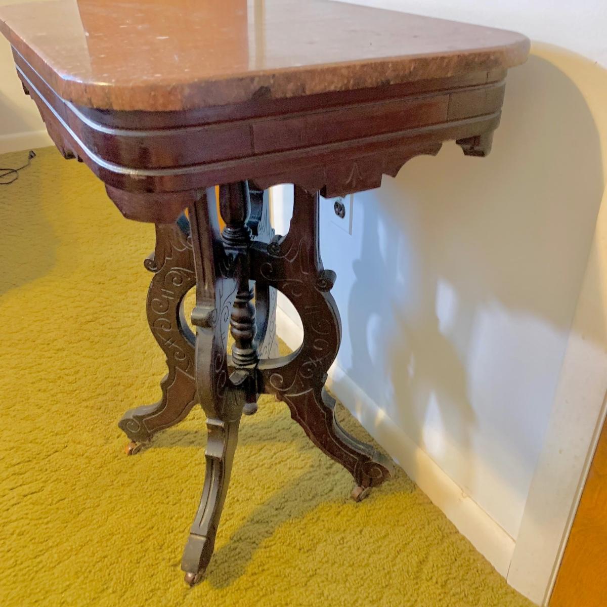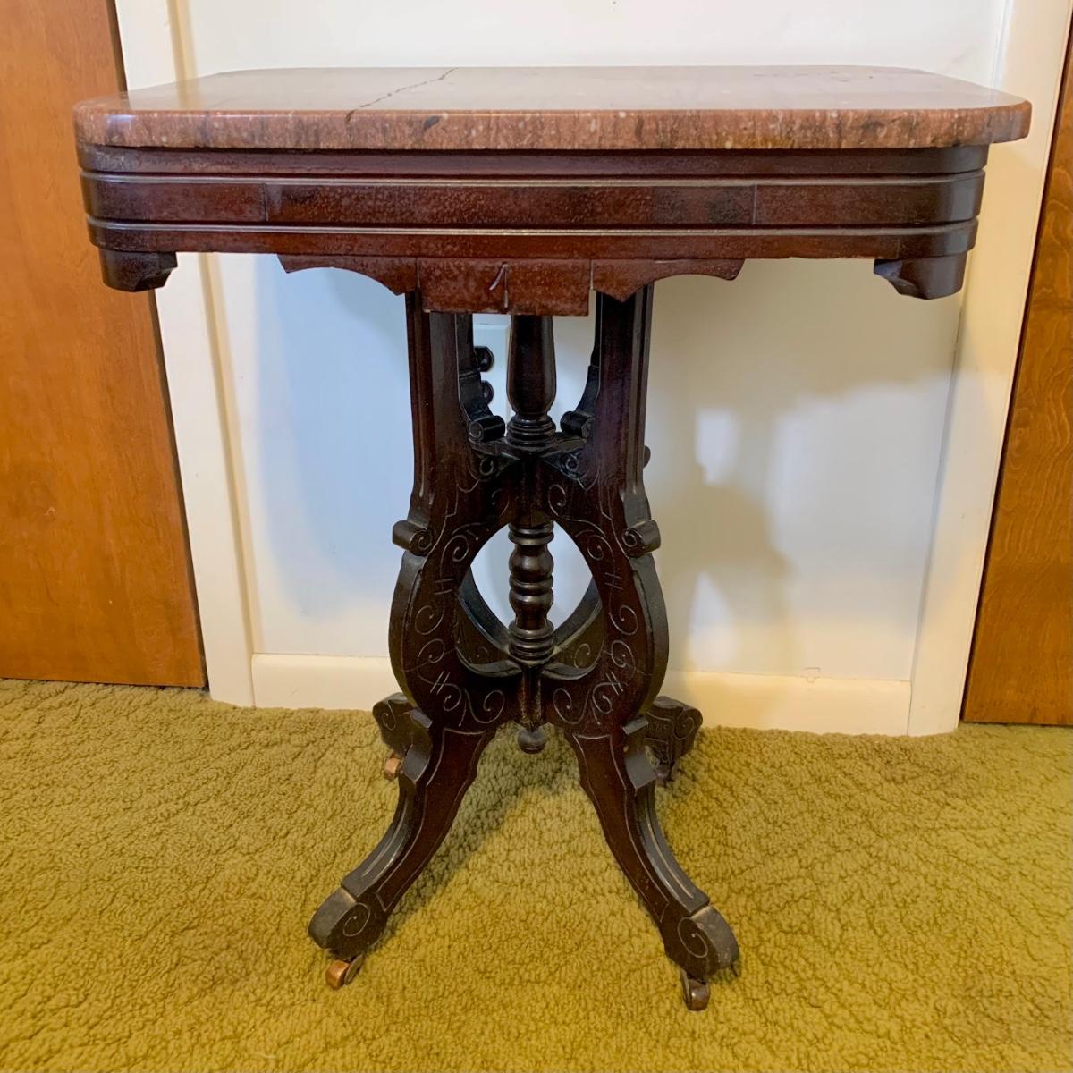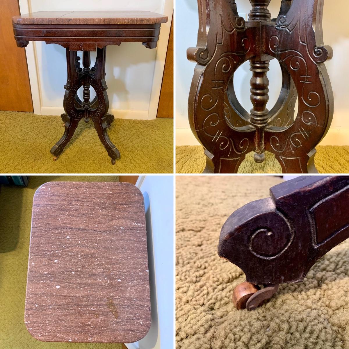 LOT 17 Z: Antique Victorian Walnut w/ Marble Top Wheeled Parlor Table