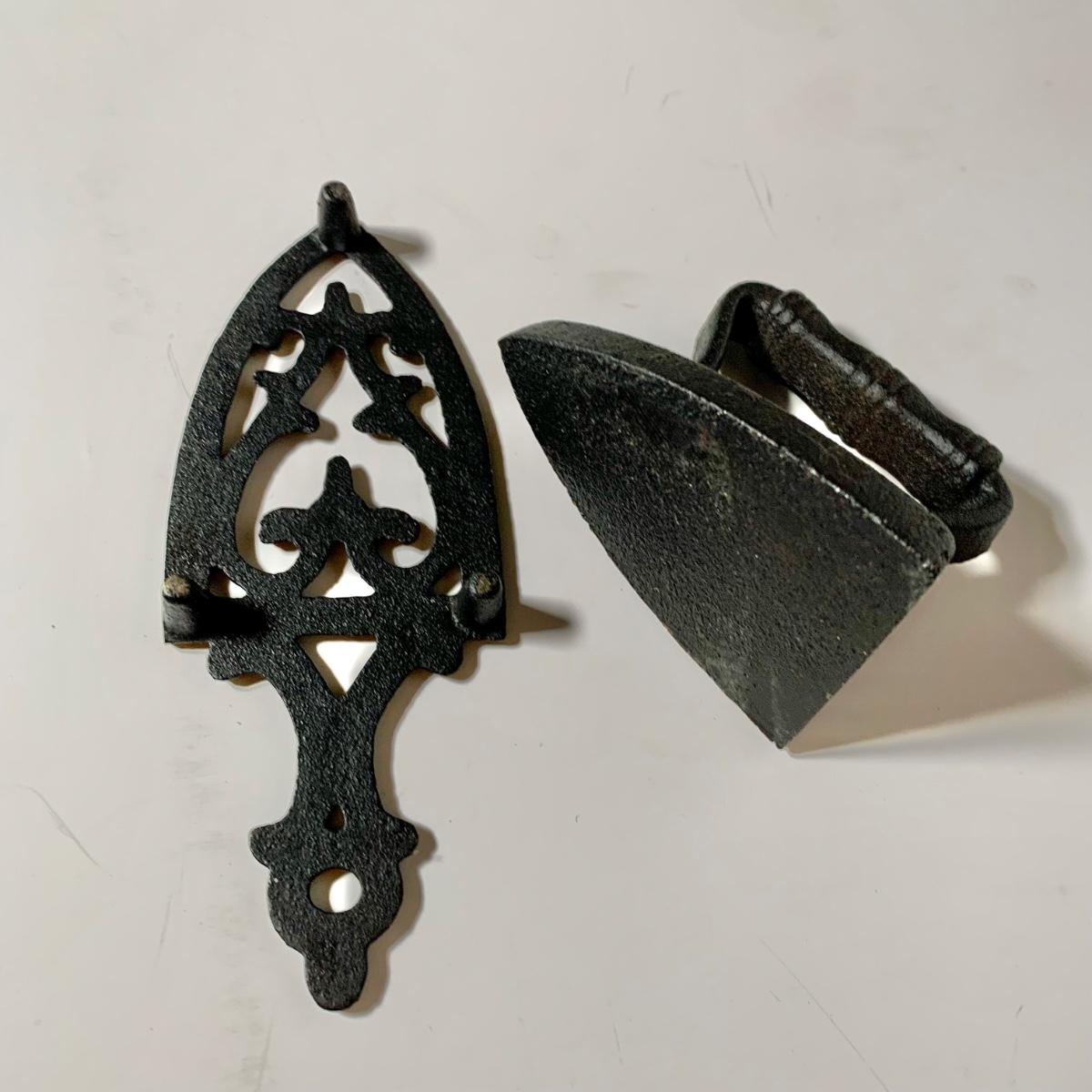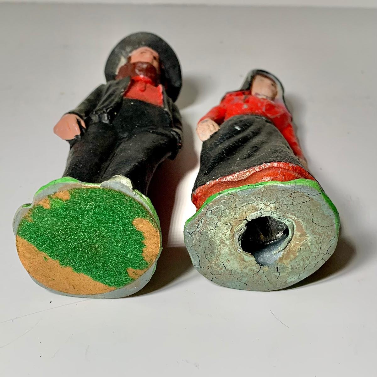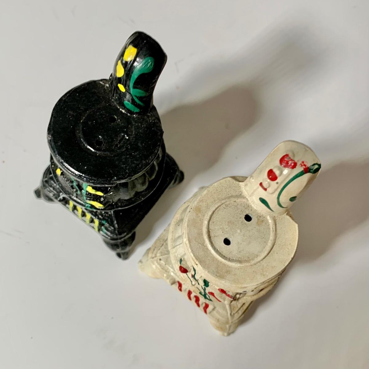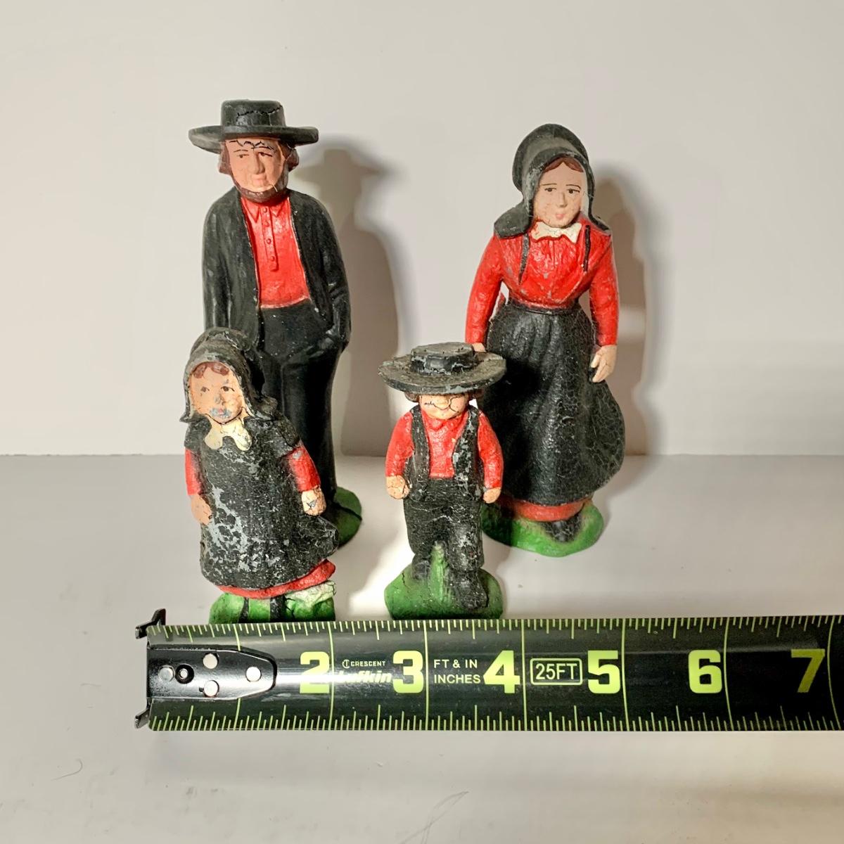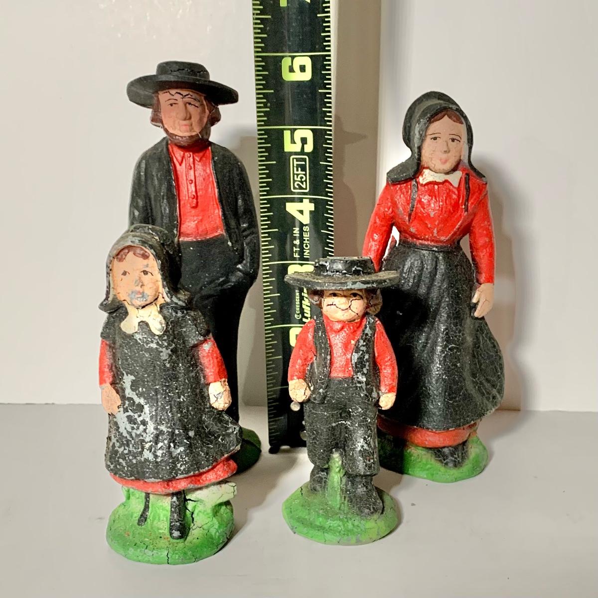 LOT 28 B: Cast Iron Miniatures: Vintage Dutch Amish Family Figurines, Irons w/ Trivets, & Pot Belly Stove Salt & Pepper Shakers