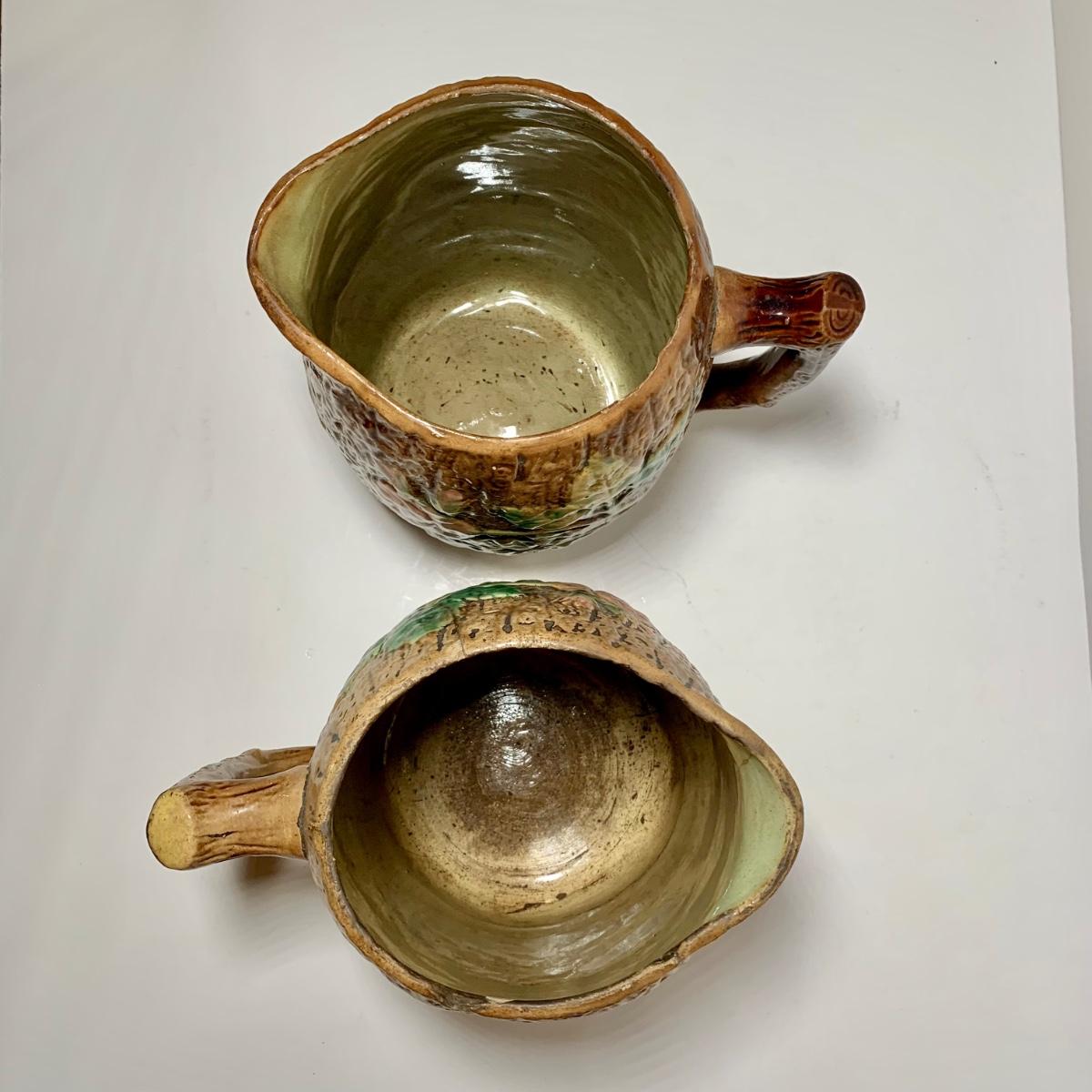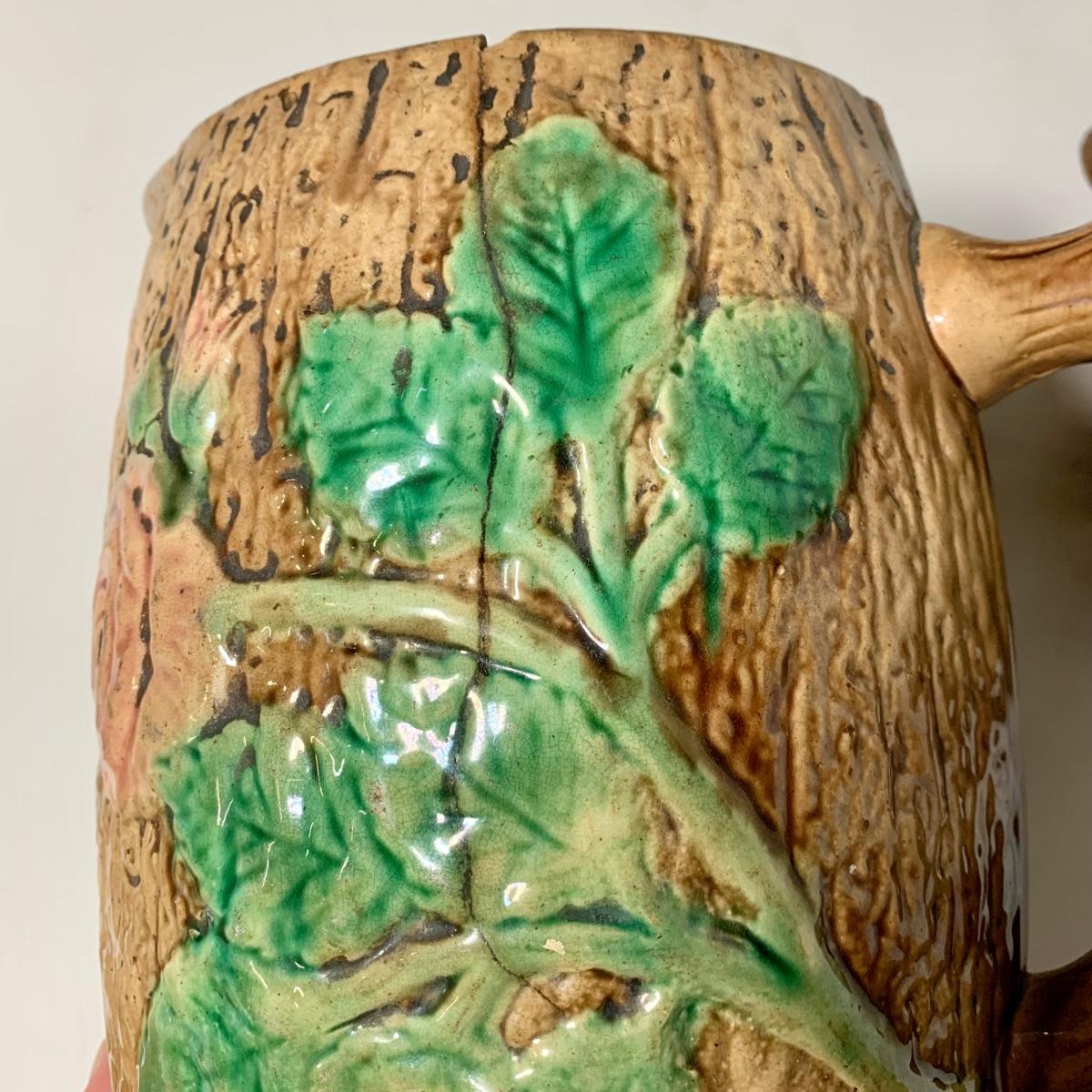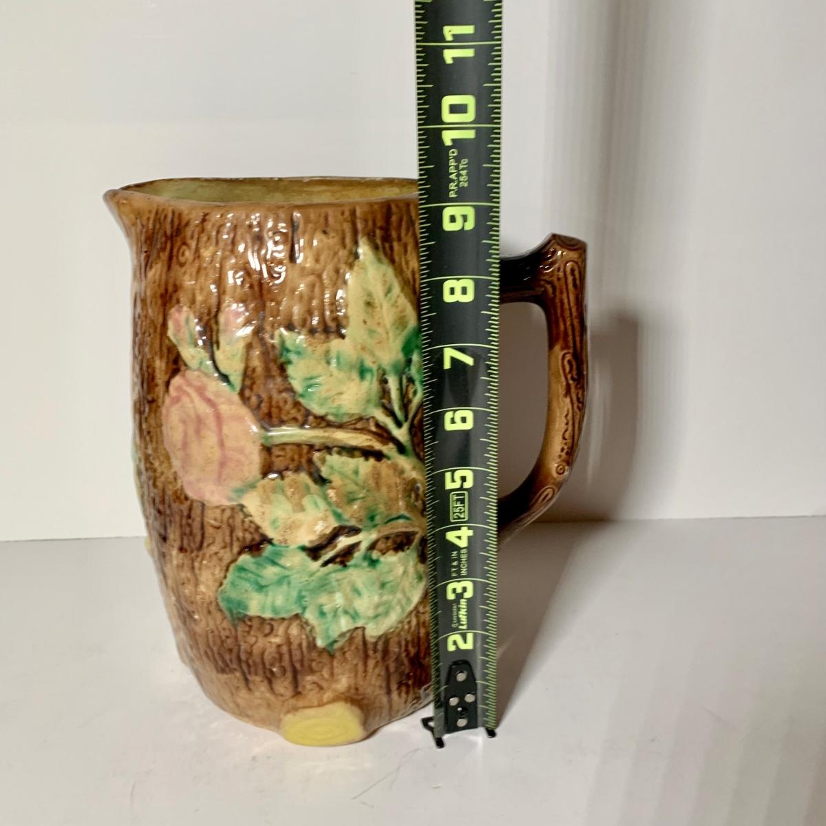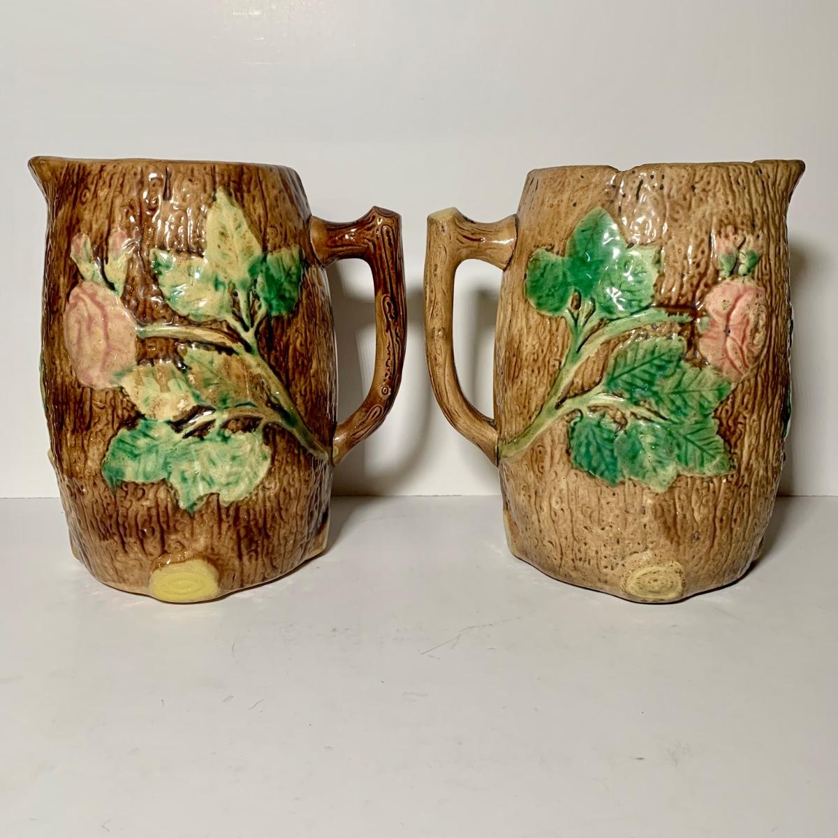 LOT 35 B: Pair of Vintage Wild Rose on Bark Majolica Glazed Pitchers