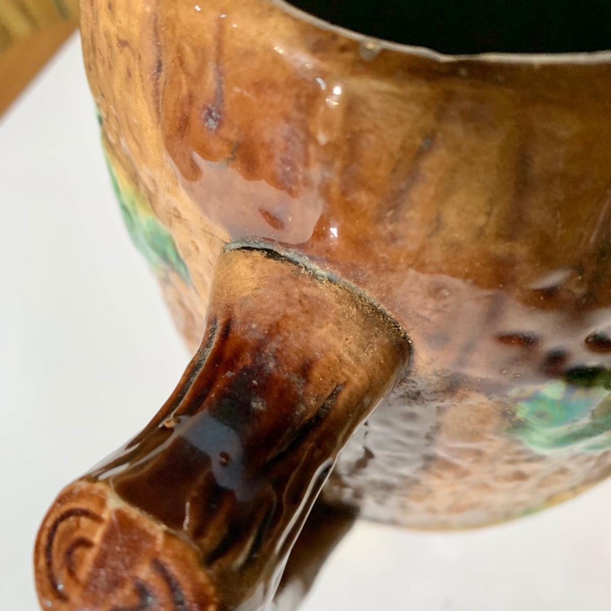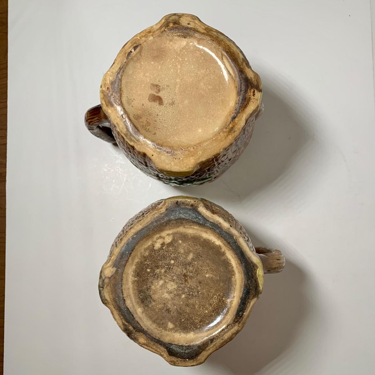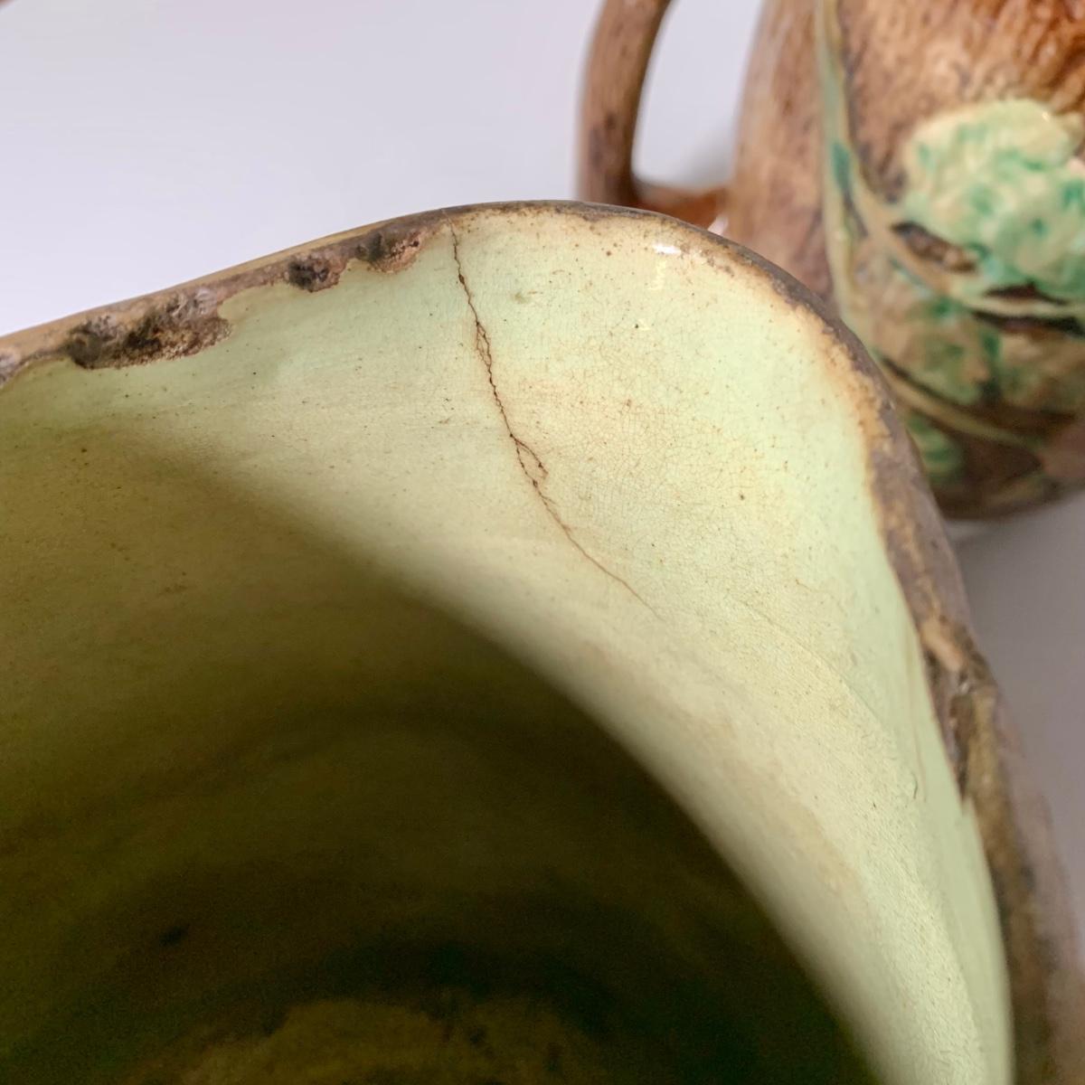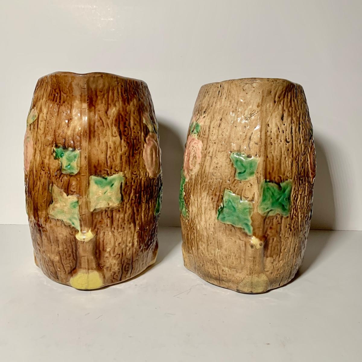 LOT 35 B: Pair of Vintage Wild Rose on Bark Majolica Glazed Pitchers
