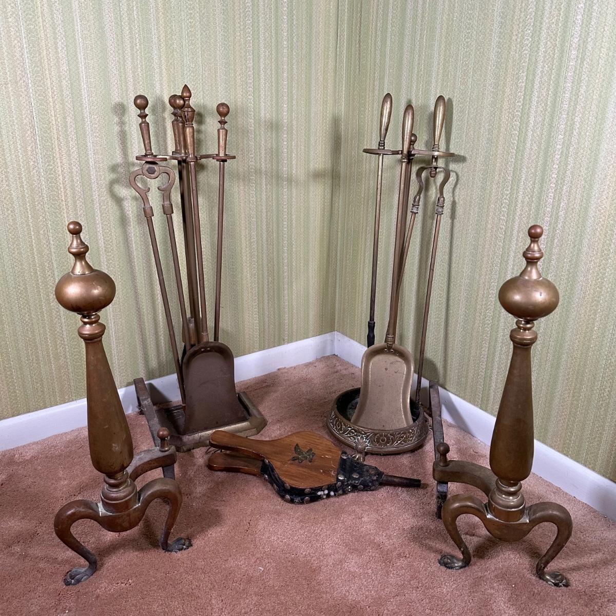 LOT 50L: Antique Fireplace Tools/Andirons