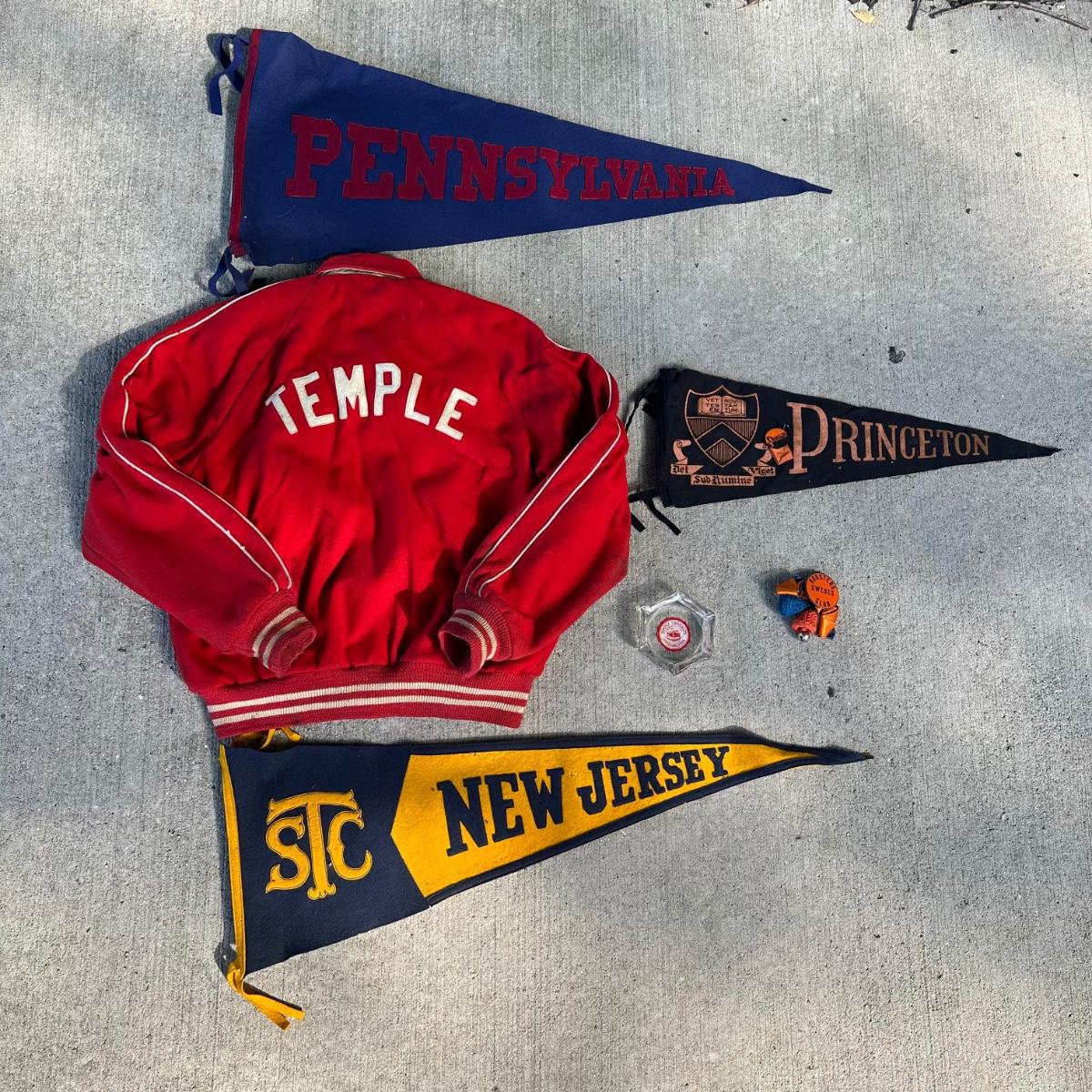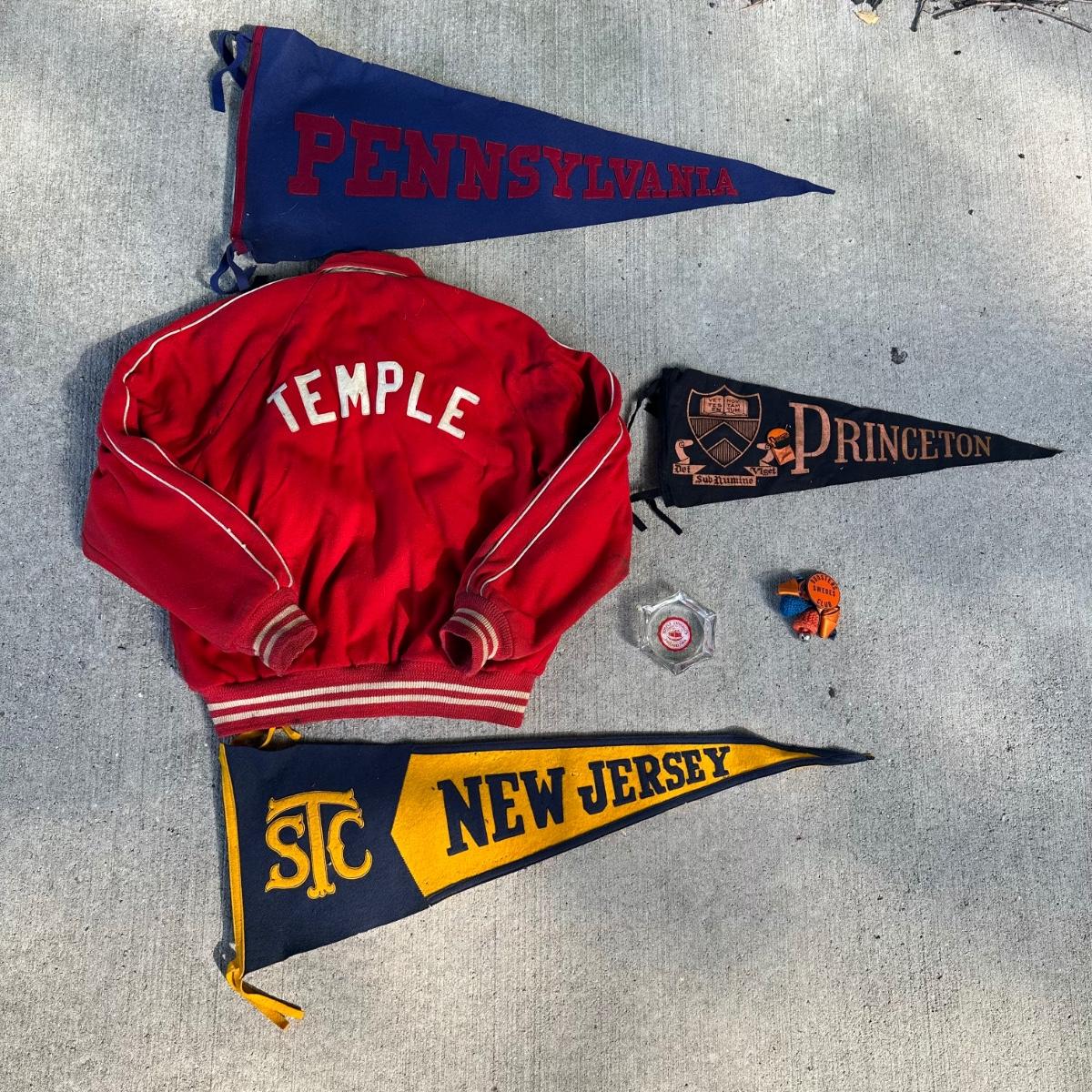 LOT 78L: Vintage Temple University Jacket & Ashtray w/ Vintage Pennants