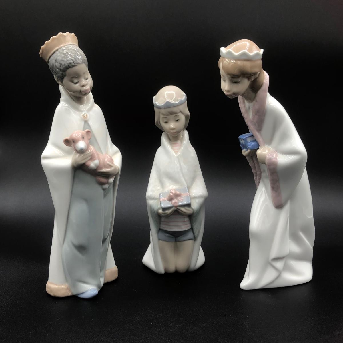 LOT 81D: Vintage Lladró Children Three Kings / Wise Men / Magi Nativity Porcelain Statues (#4673-4675)