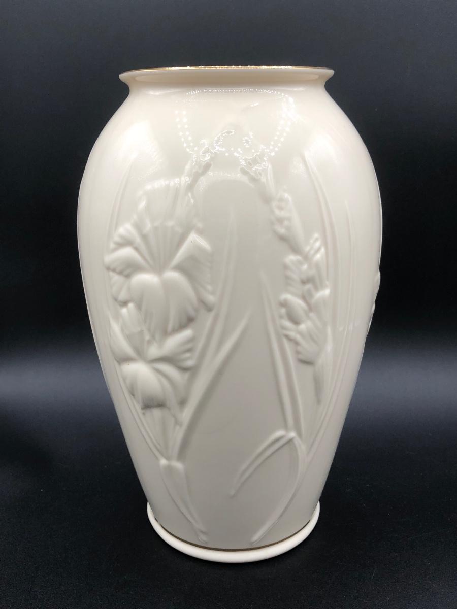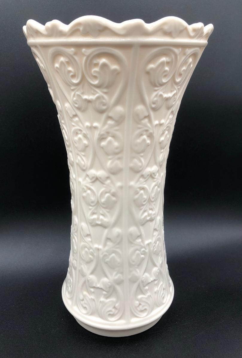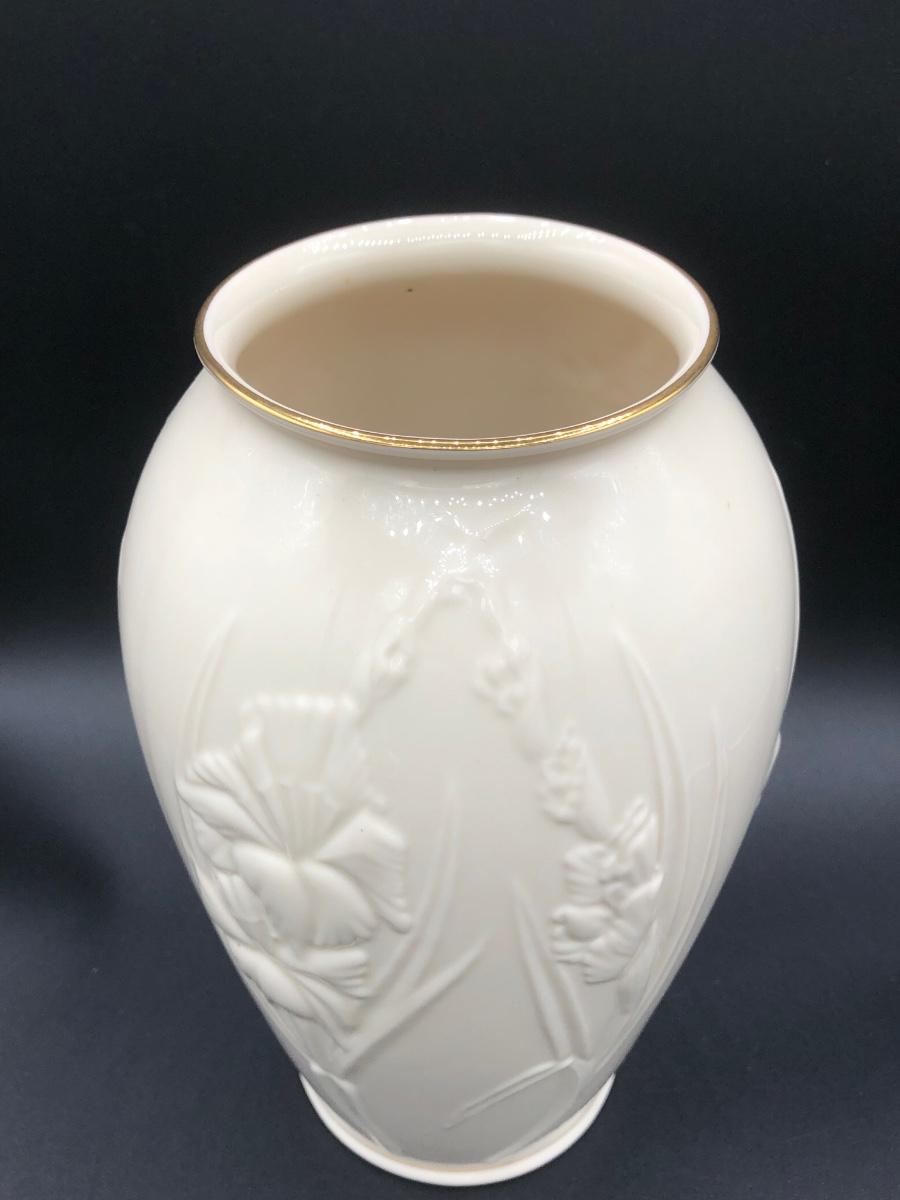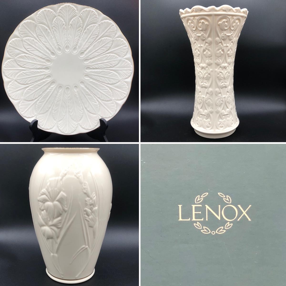 LOT 89D: Lenox Porcelain China Collection - 12" Greenfield Cake Plate, 9" Masterpiece Vase & 10.5" Wentworth Vase