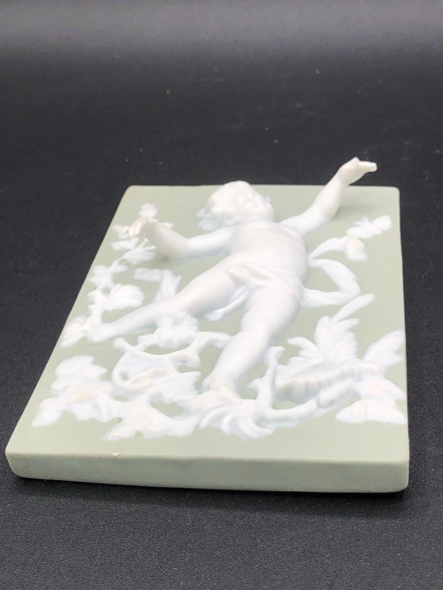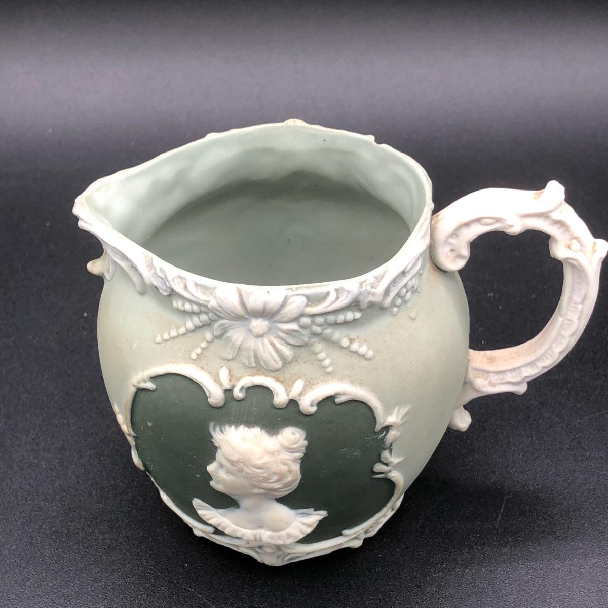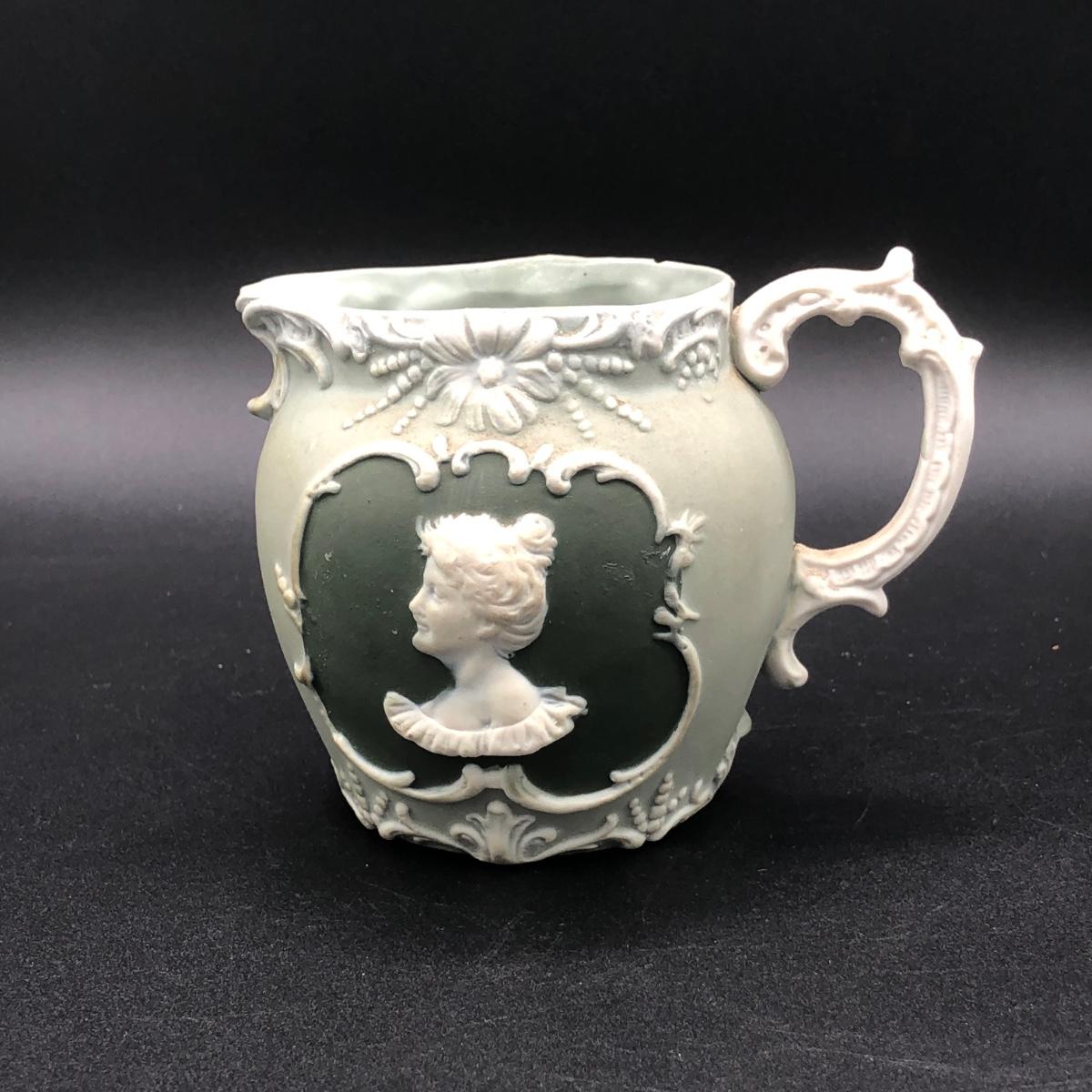 LOT 90D: Wedgwood Etruria & Barlaston Embossed Queen's Ware Vase, Vintage Porcelain Busts of Venus De Milo, Artemis Diana & Robert Burns, Bisque Cherub Wall Art & Vintage Victorian Cameo Cream Pitcher
