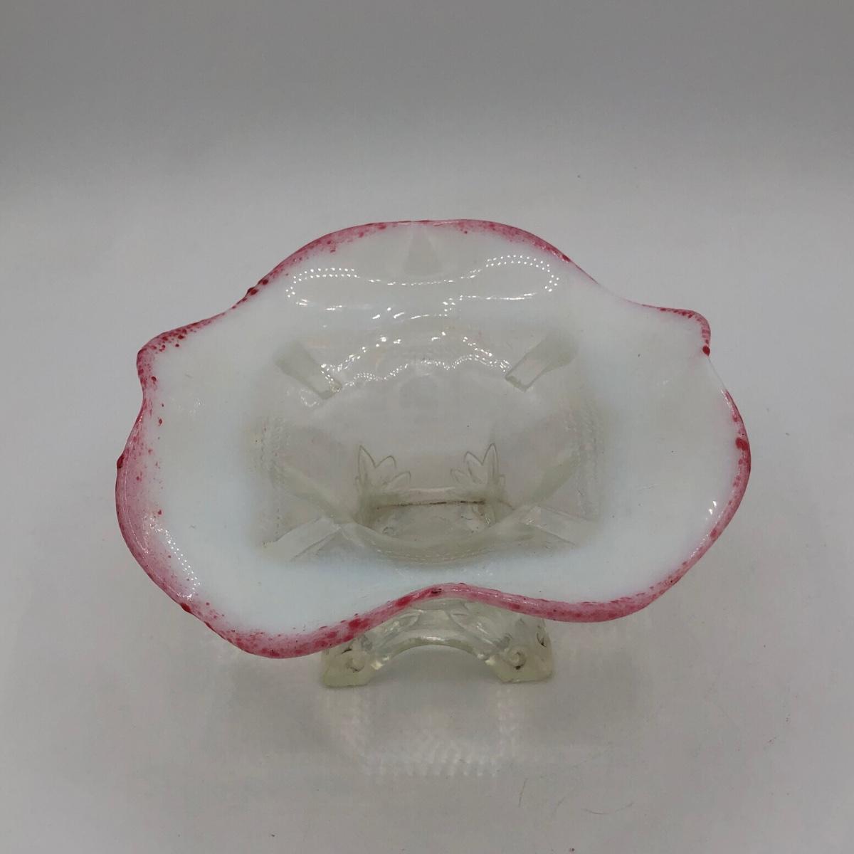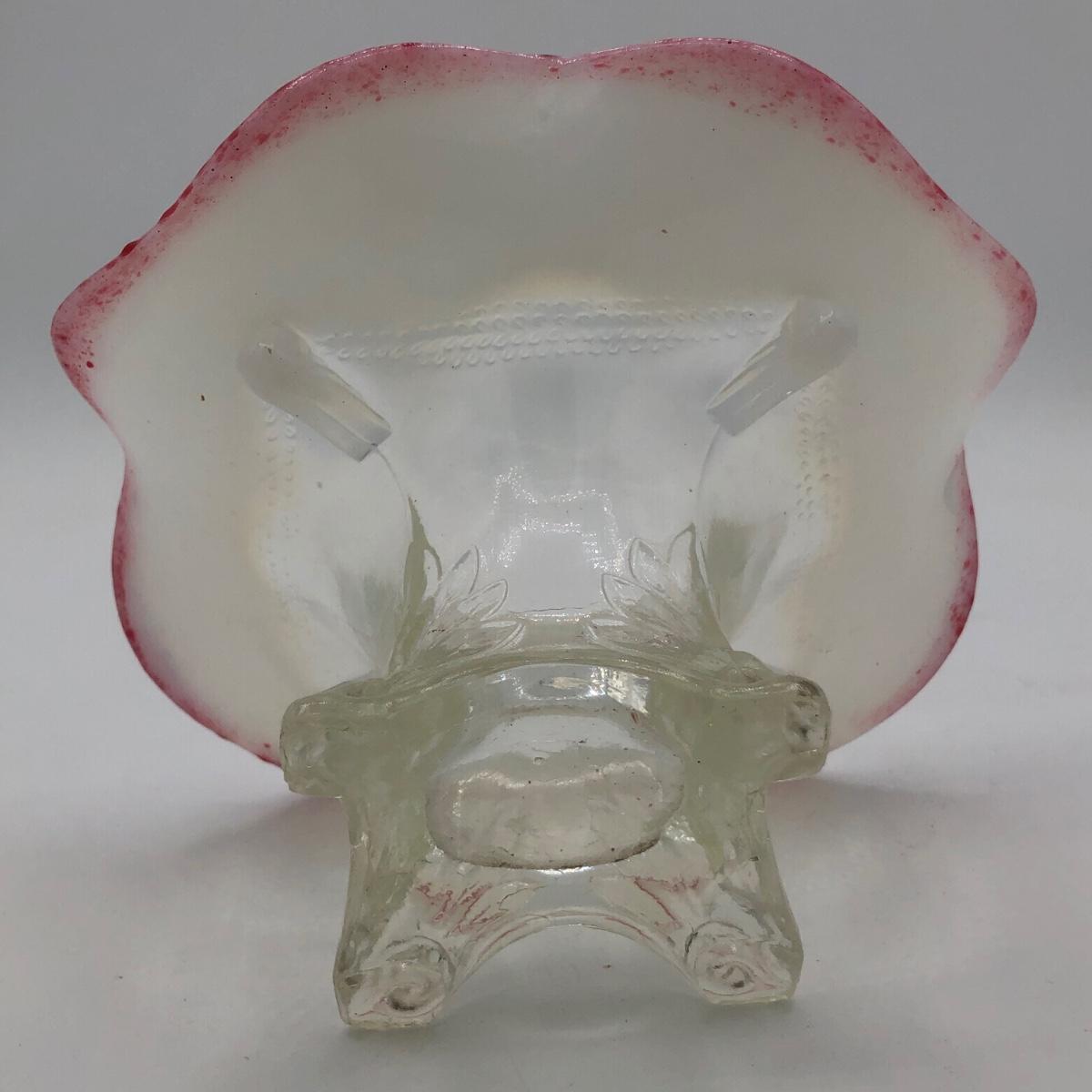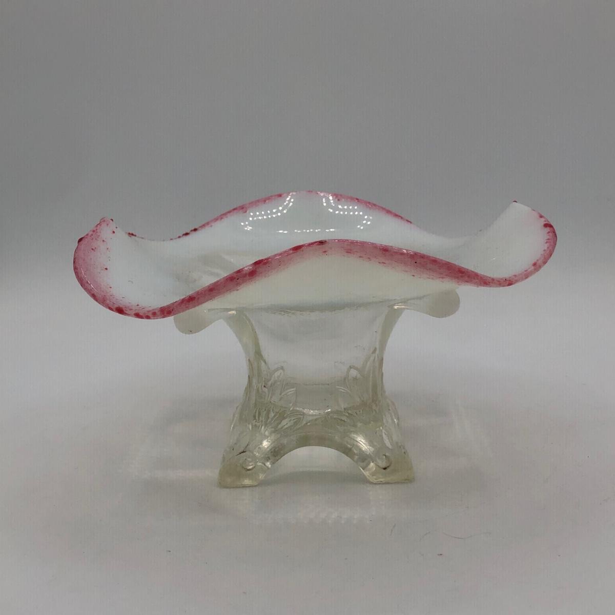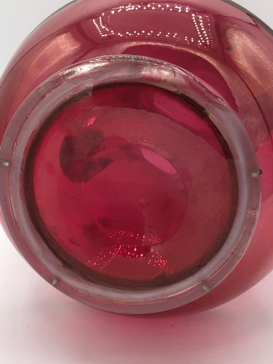 LOT 91D: Vintage Hand Blown Cranberry Glass Sculpted Flower Pitcher & Glass Wavy Edge Pedestal Compote