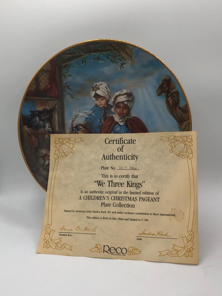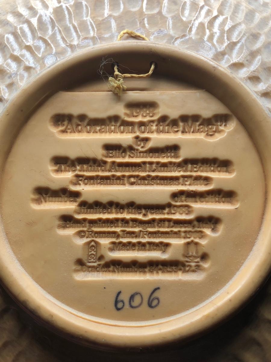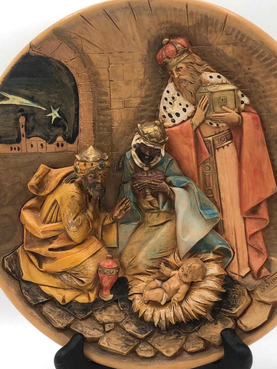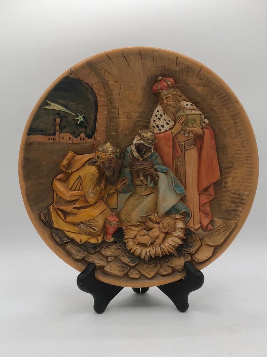 LOT 96D: 1989 Reco Sandra Kuck Children's Christmas Pageant "We 3 Kings" Plate, Roman "Adoration of the Magi" by Elio Simonetti Hand Painted Sculptural Plate #606, & More