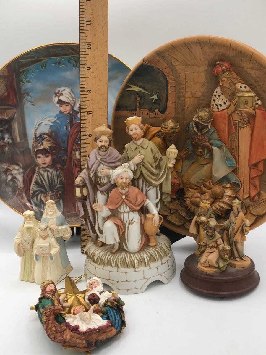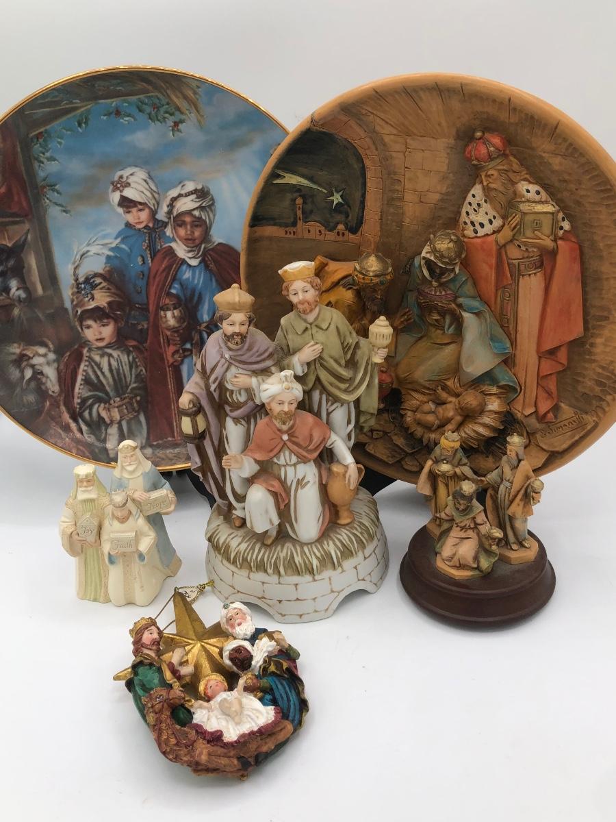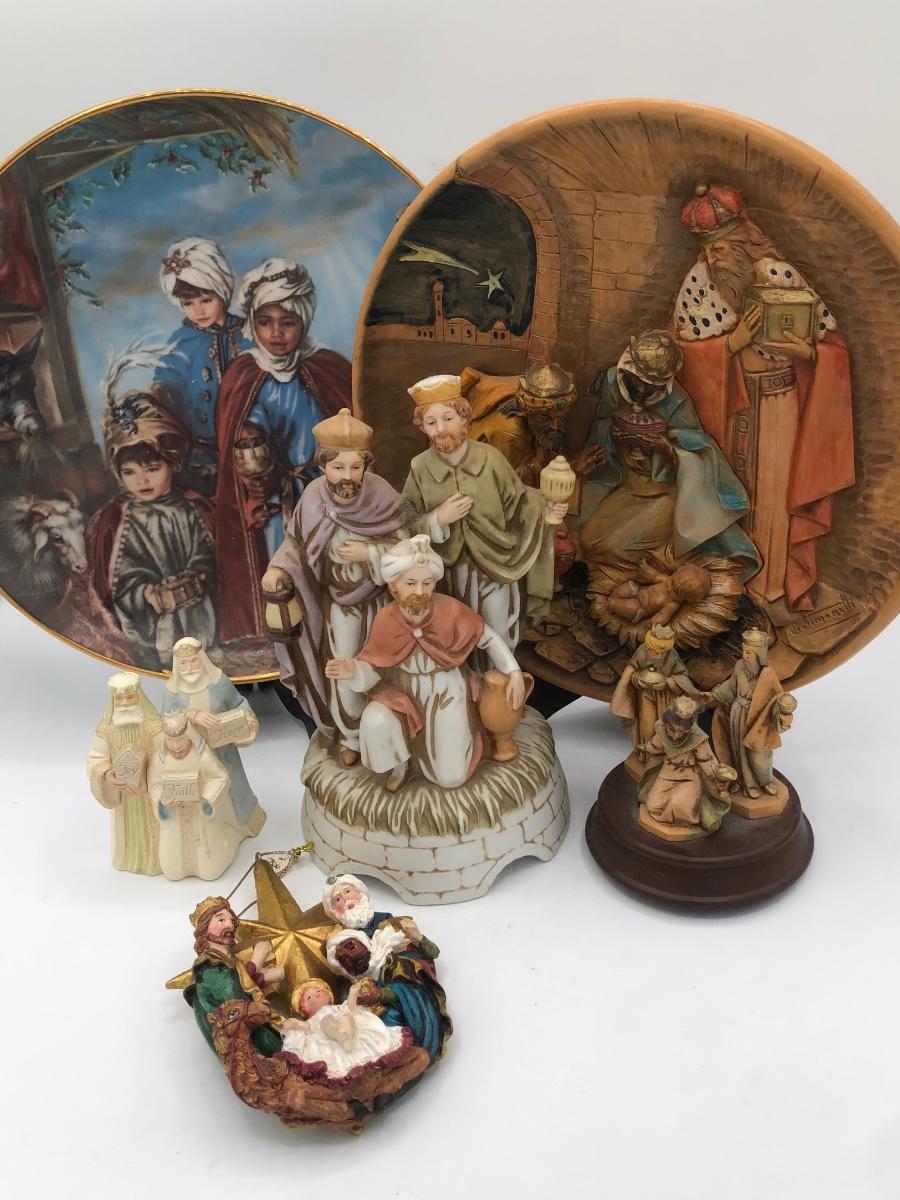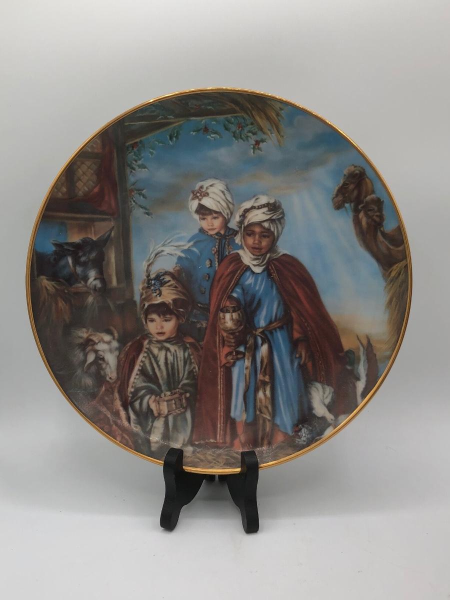 LOT 96D: 1989 Reco Sandra Kuck Children's Christmas Pageant "We 3 Kings" Plate, Roman "Adoration of the Magi" by Elio Simonetti Hand Painted Sculptural Plate #606, & More