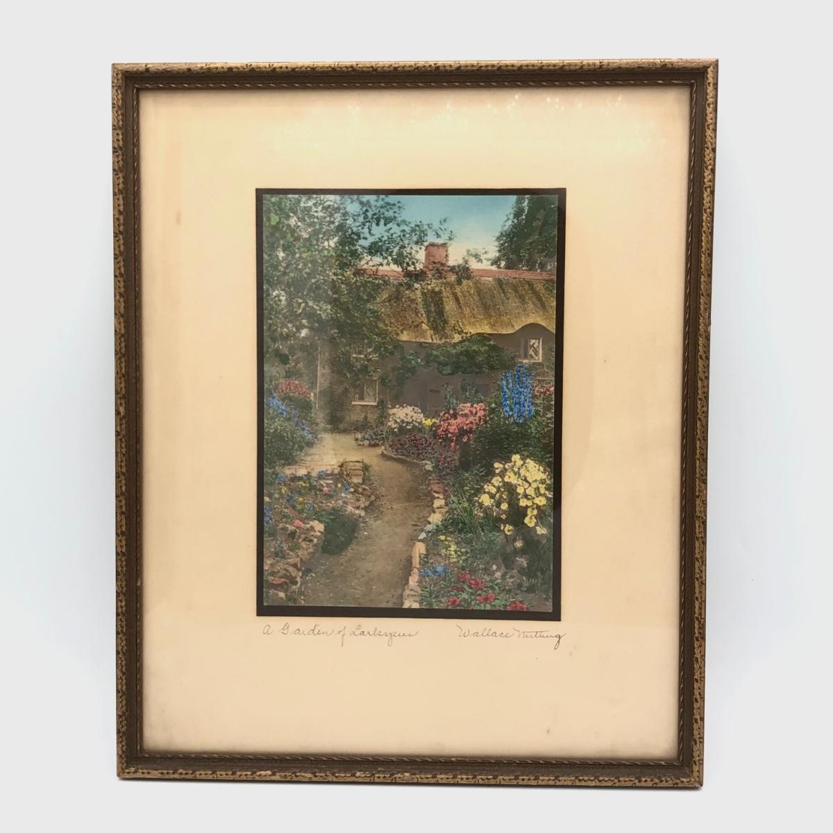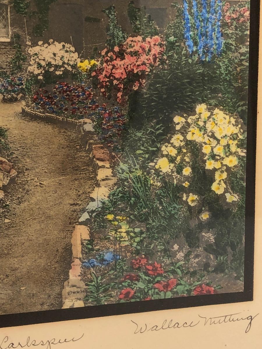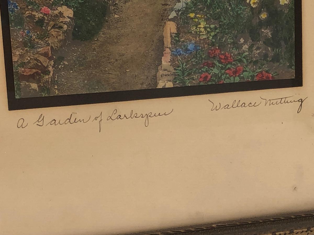 LOT 104D: Antique Signed "A Garden of Larkspur" Wallace Nutting Framed Art Print