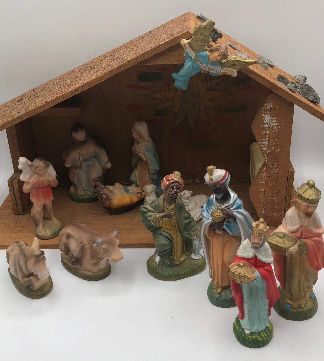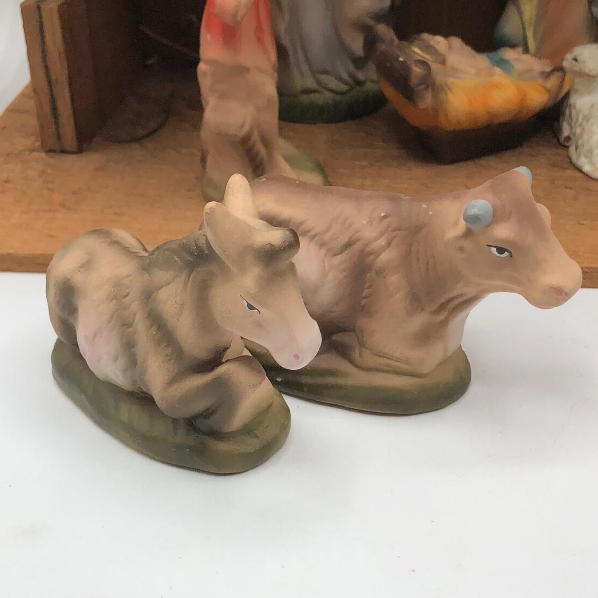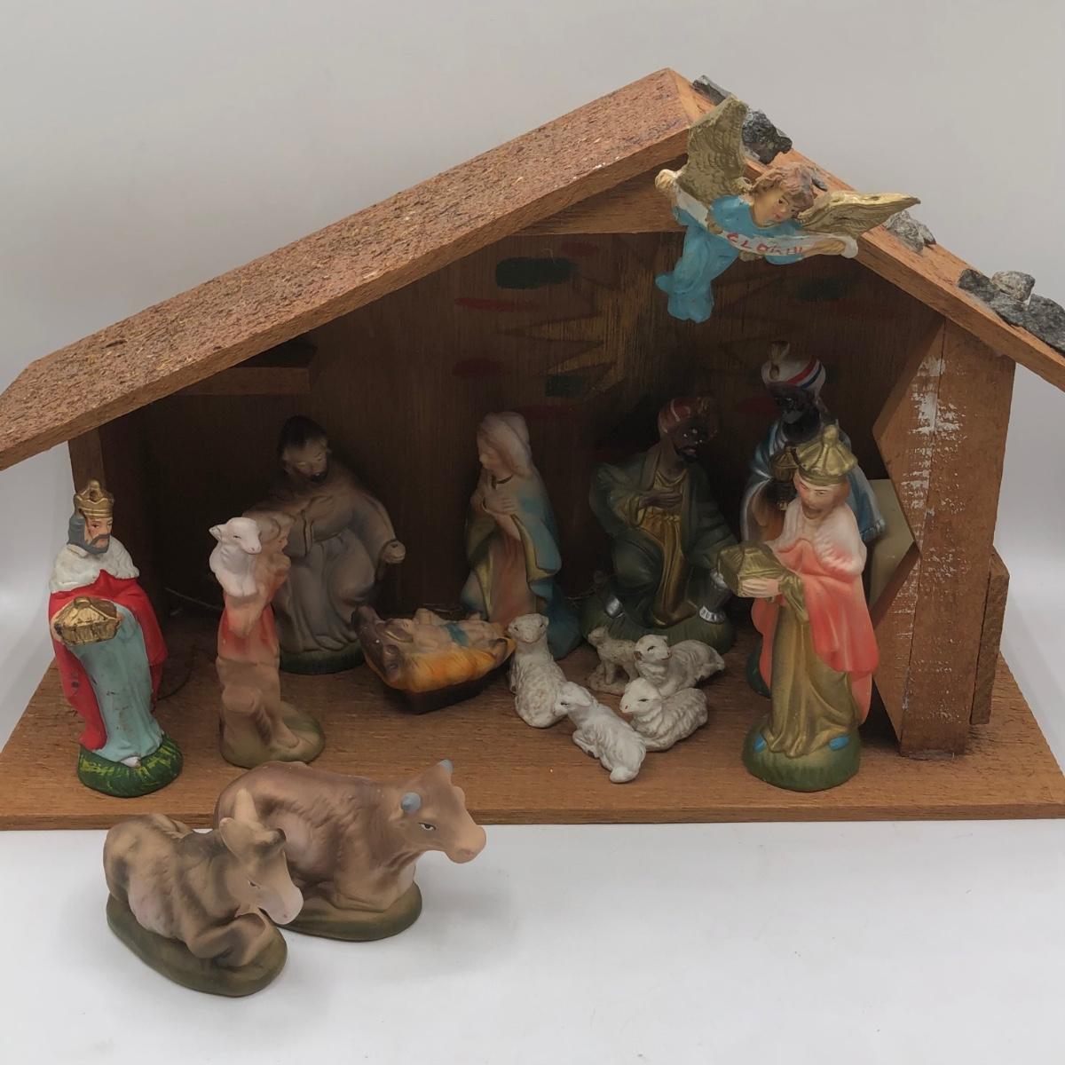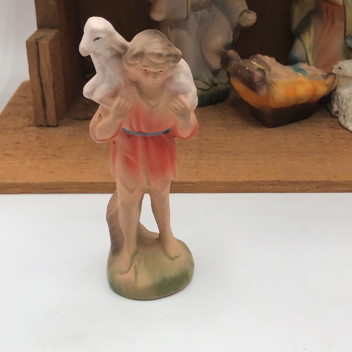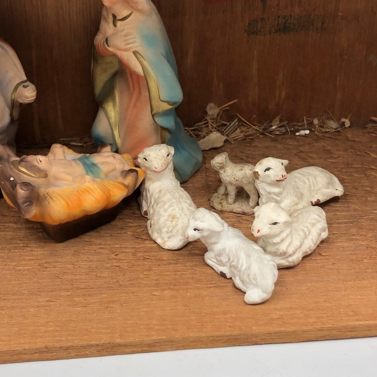 LOT 108D: Vintage Christmas 10 Piece Nativity Set & Musical Creche made in Japan w/ Angel & Lamb Figurines