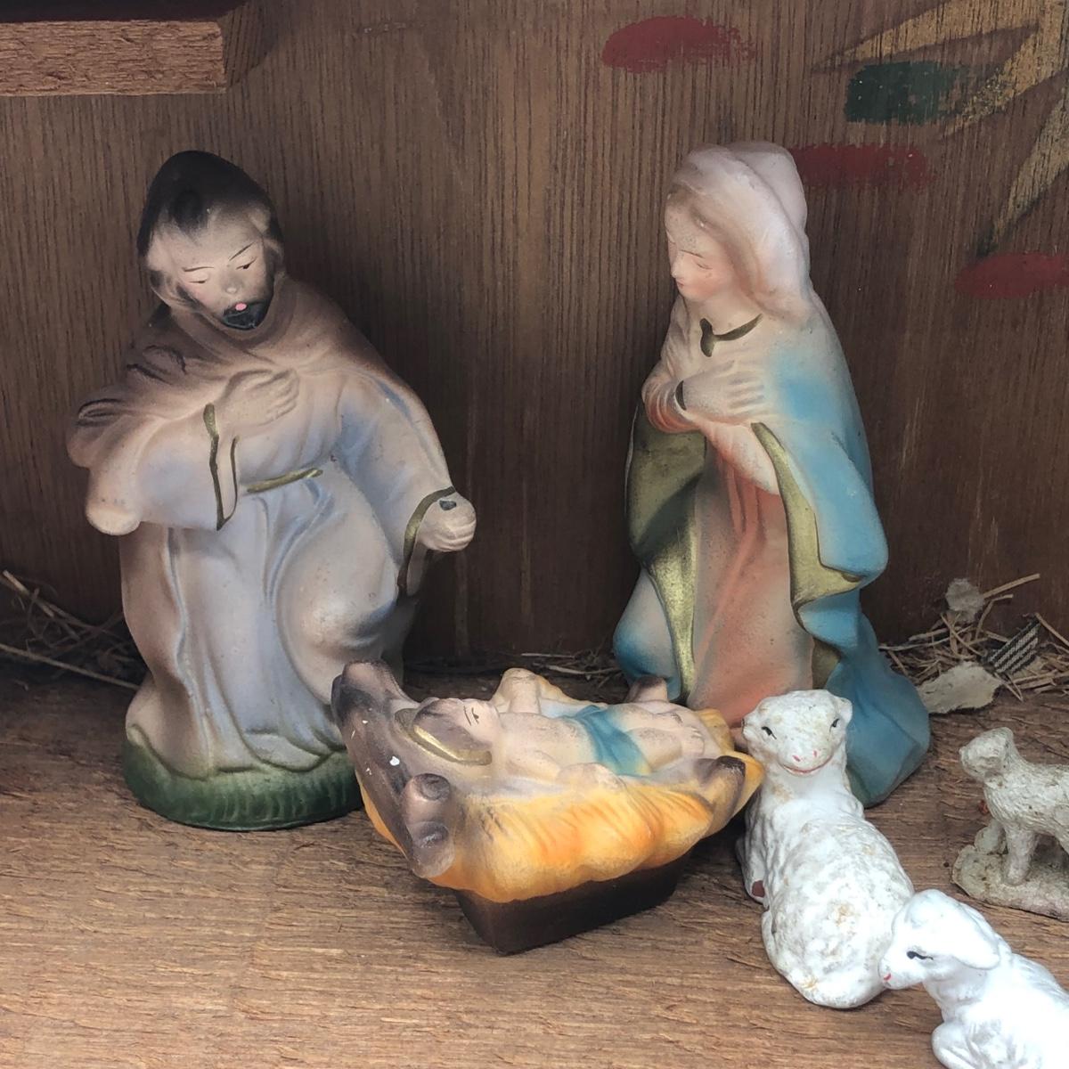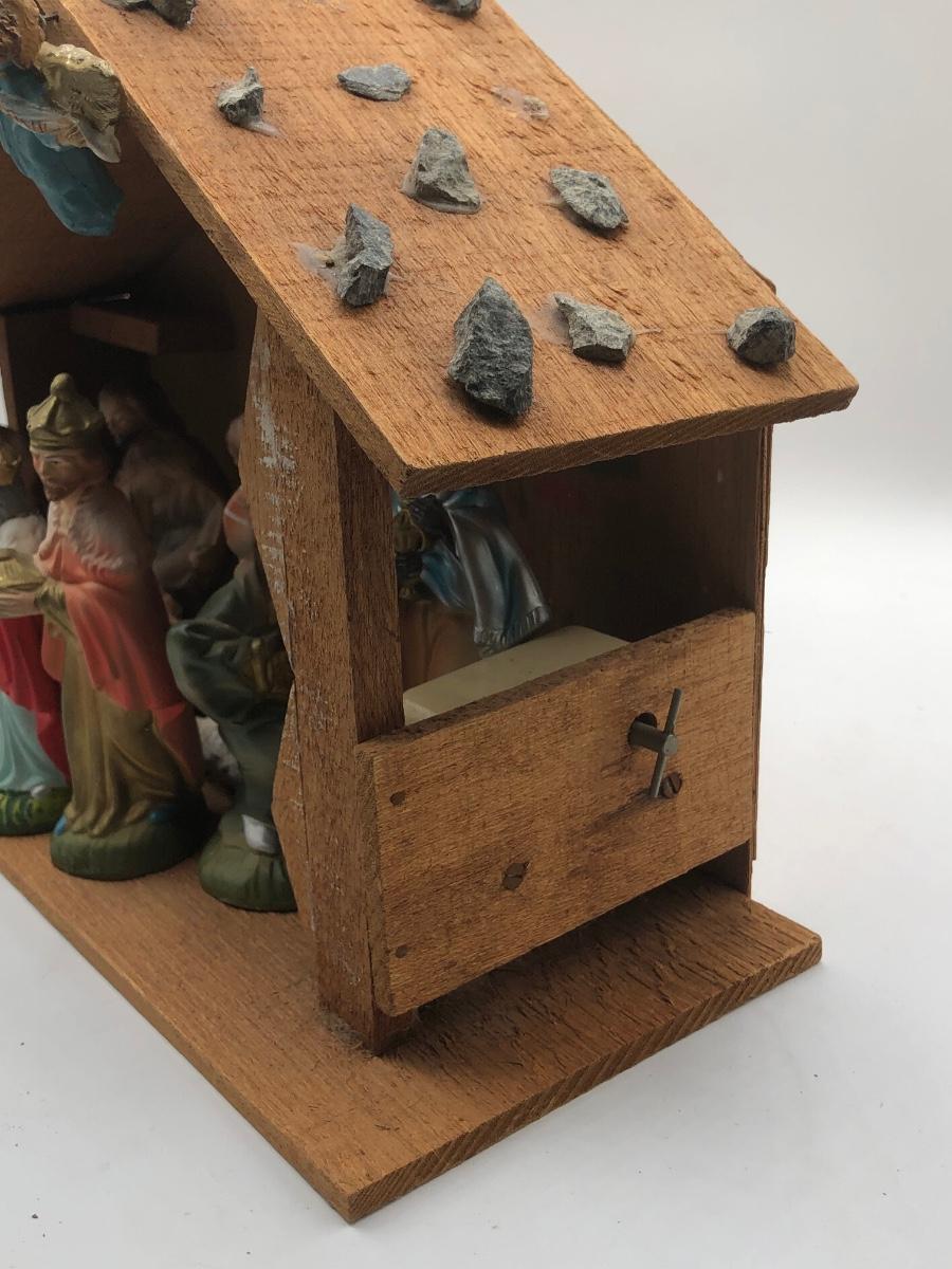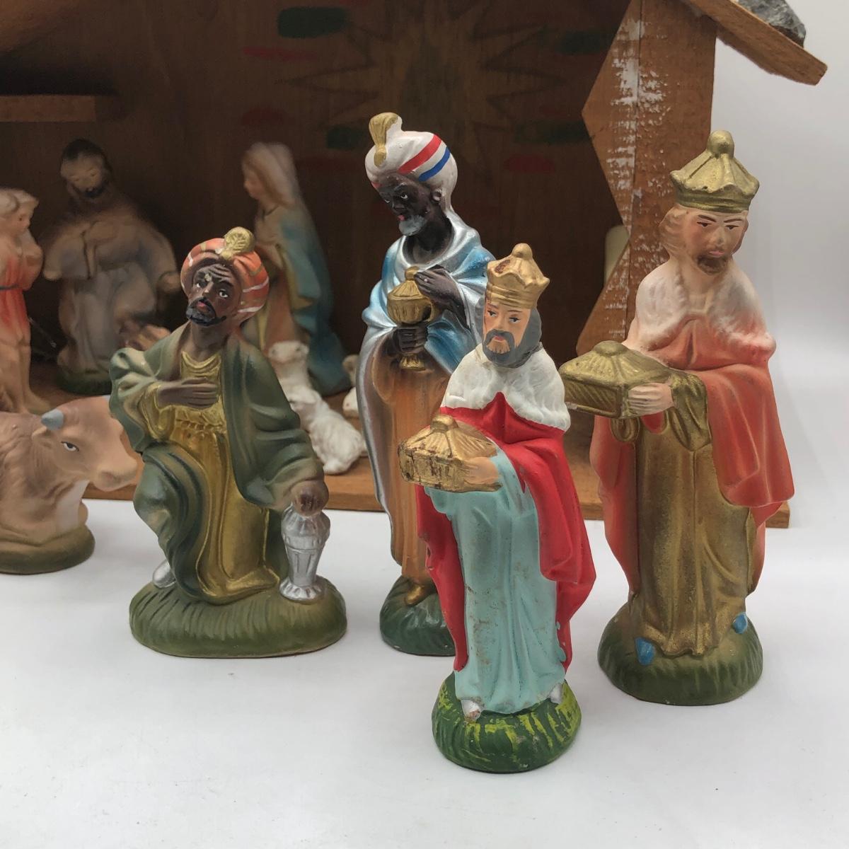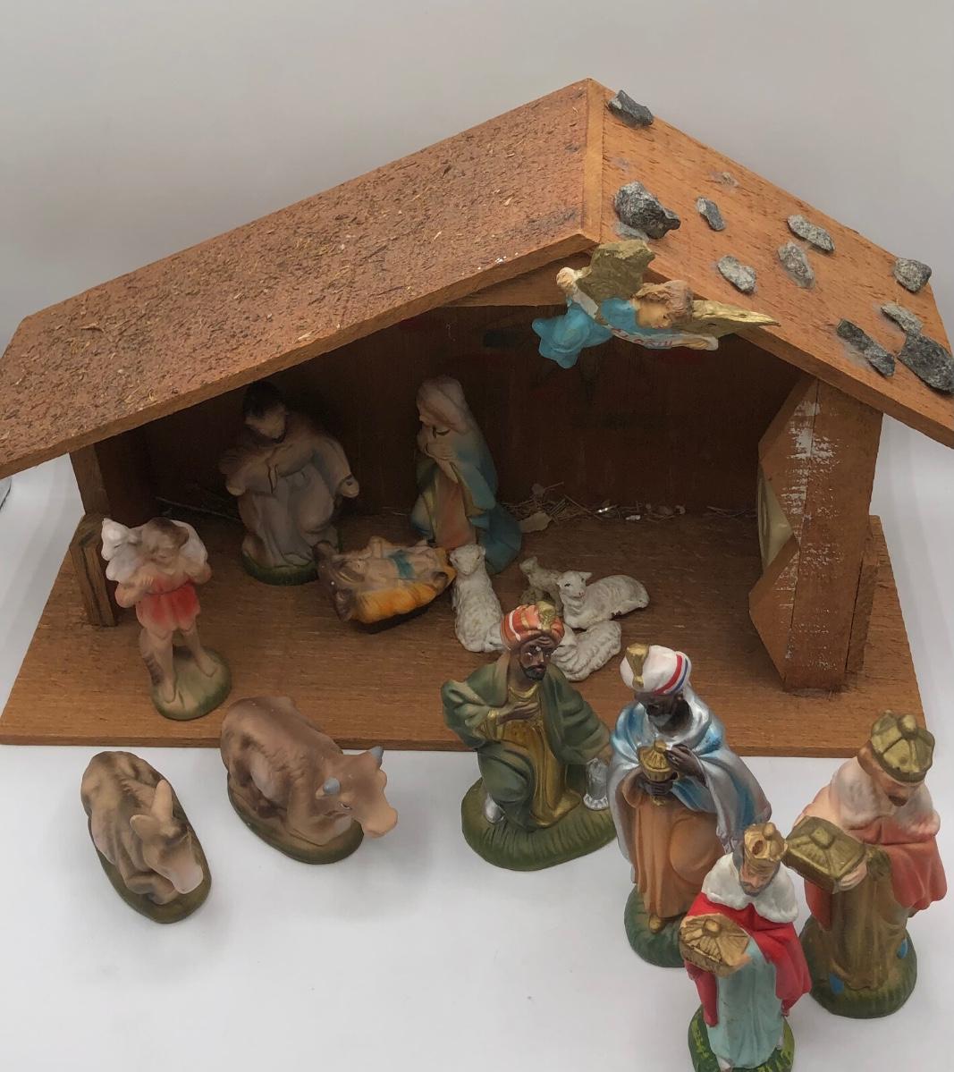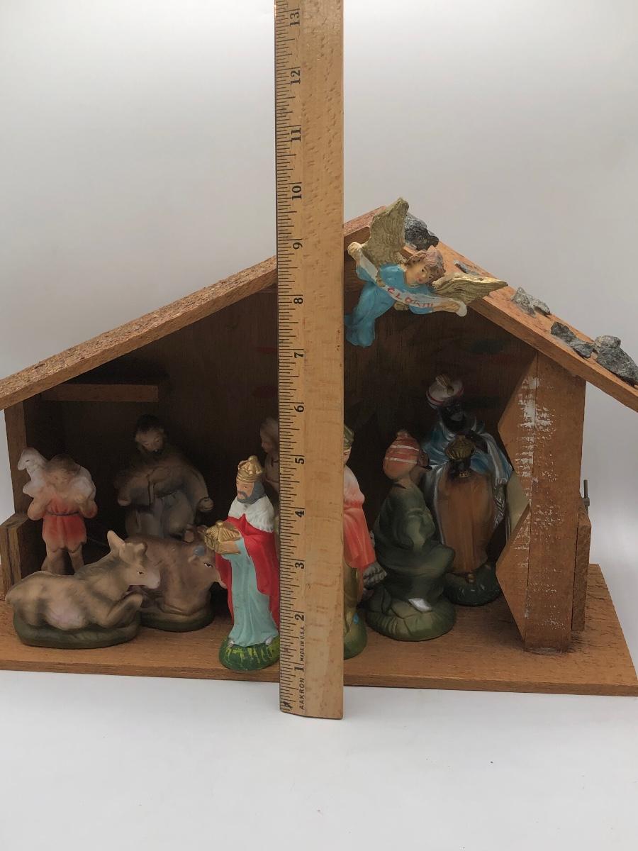 LOT 108D: Vintage Christmas 10 Piece Nativity Set & Musical Creche made in Japan w/ Angel & Lamb Figurines