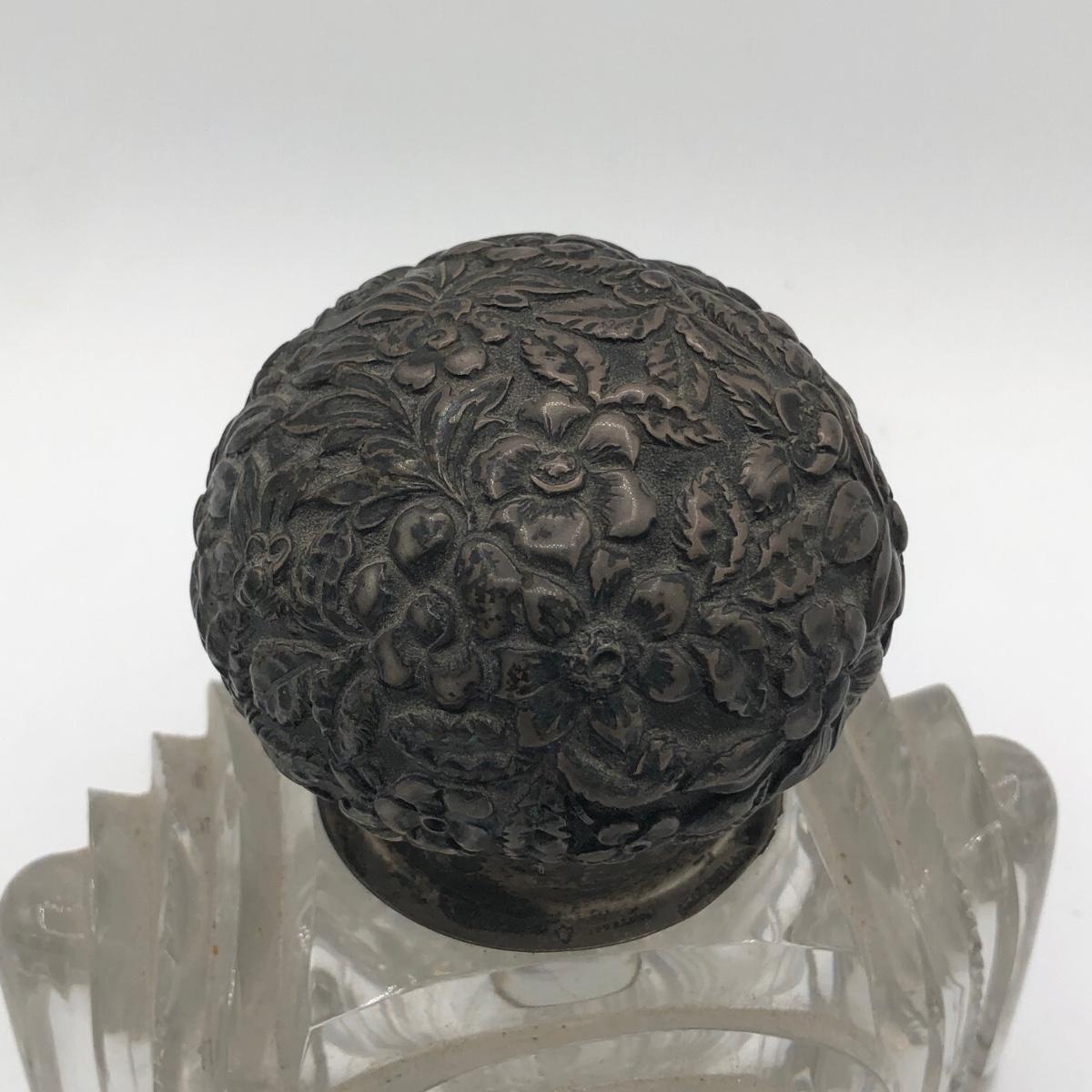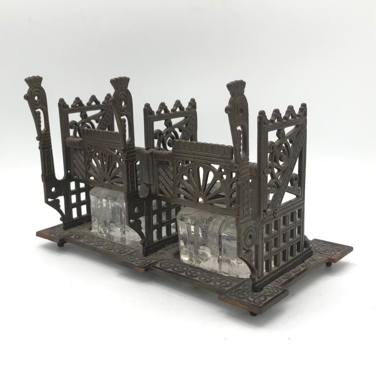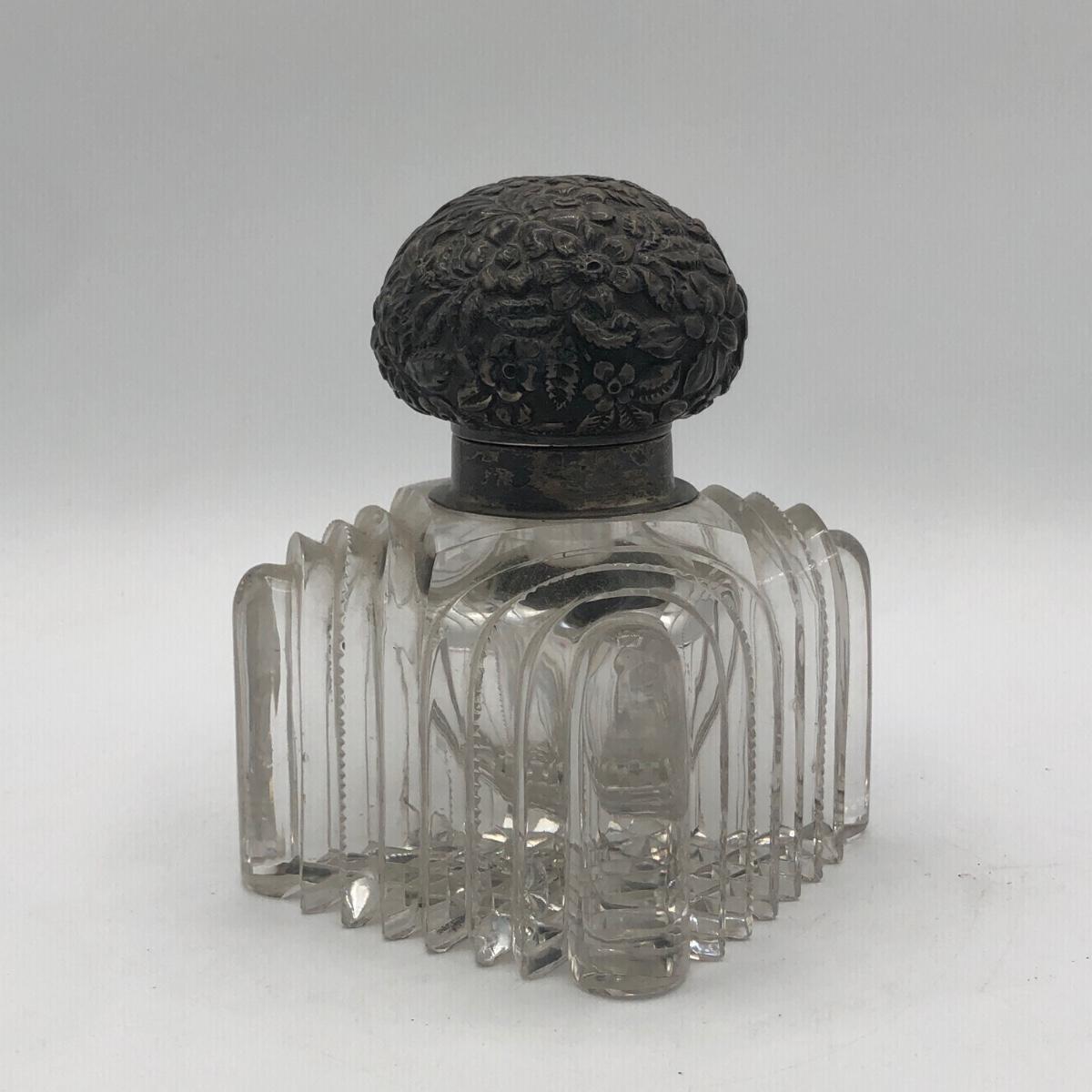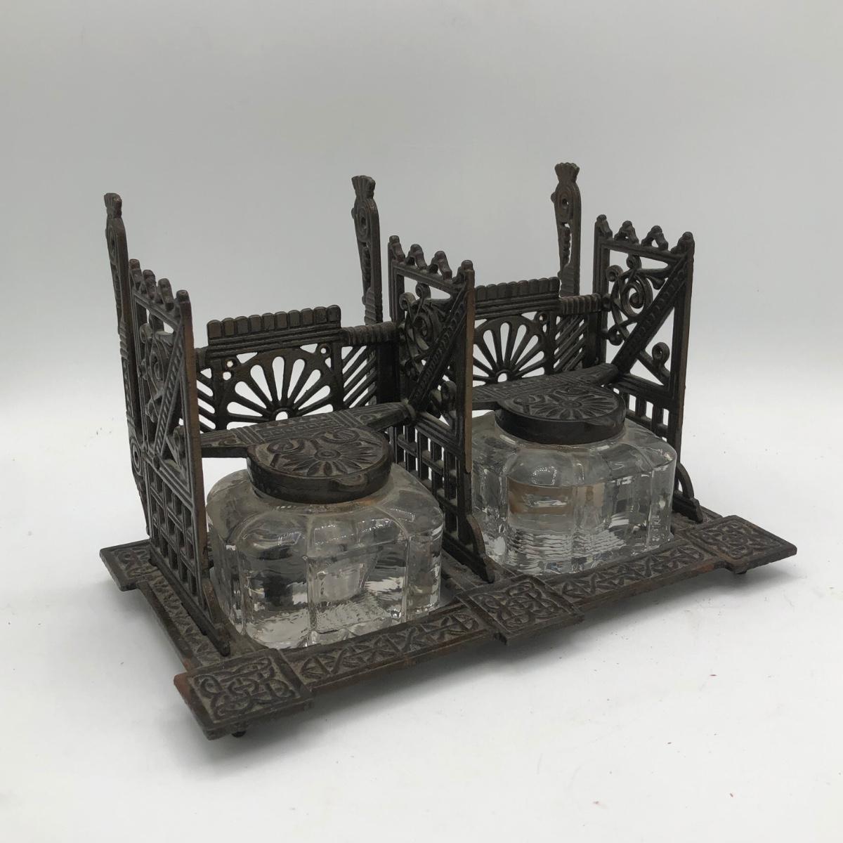 LOT 109D: Antique Victorian Cast Iron Double Inkwell, Large Antique Crystal Inkwell w/ Sterling Silver Lid & More