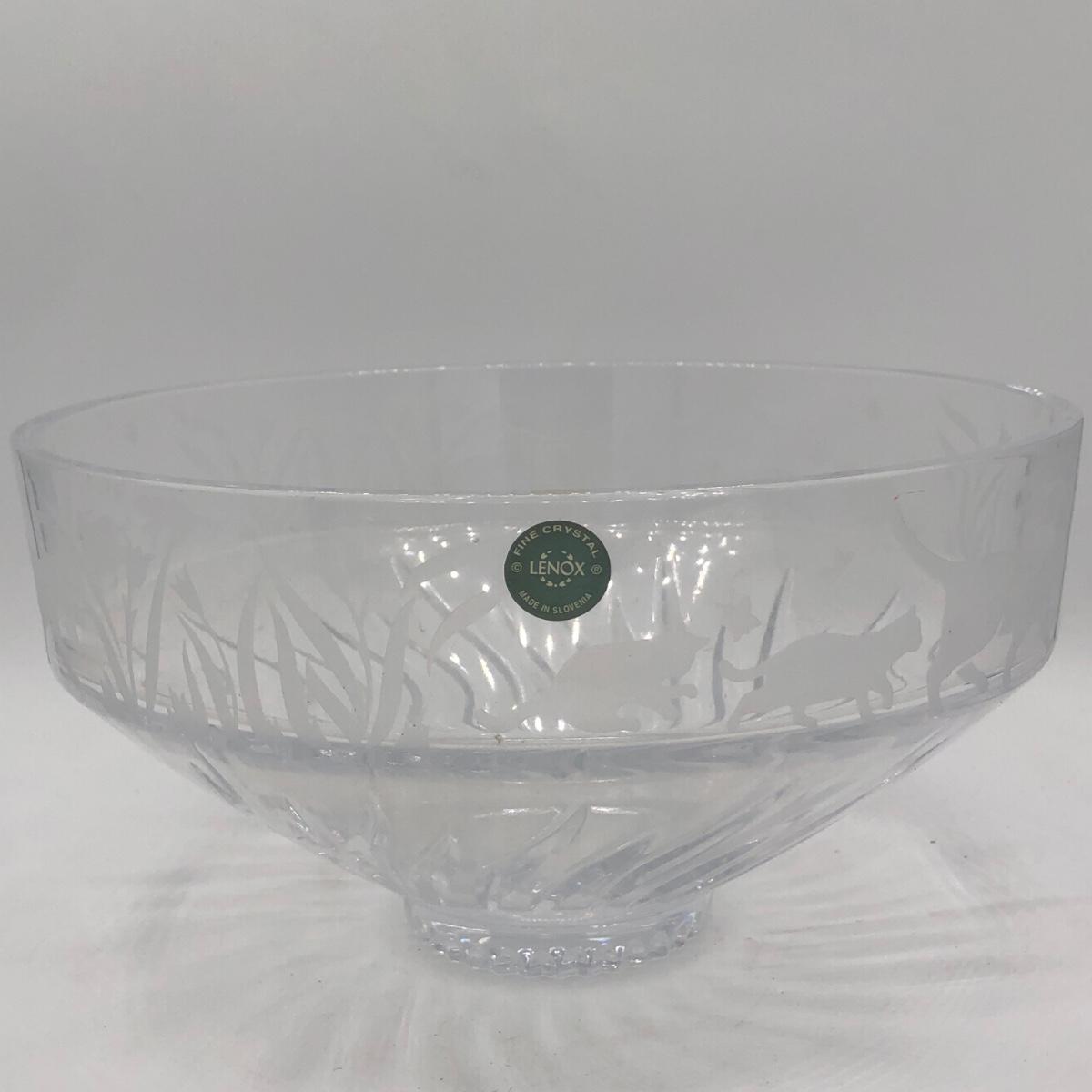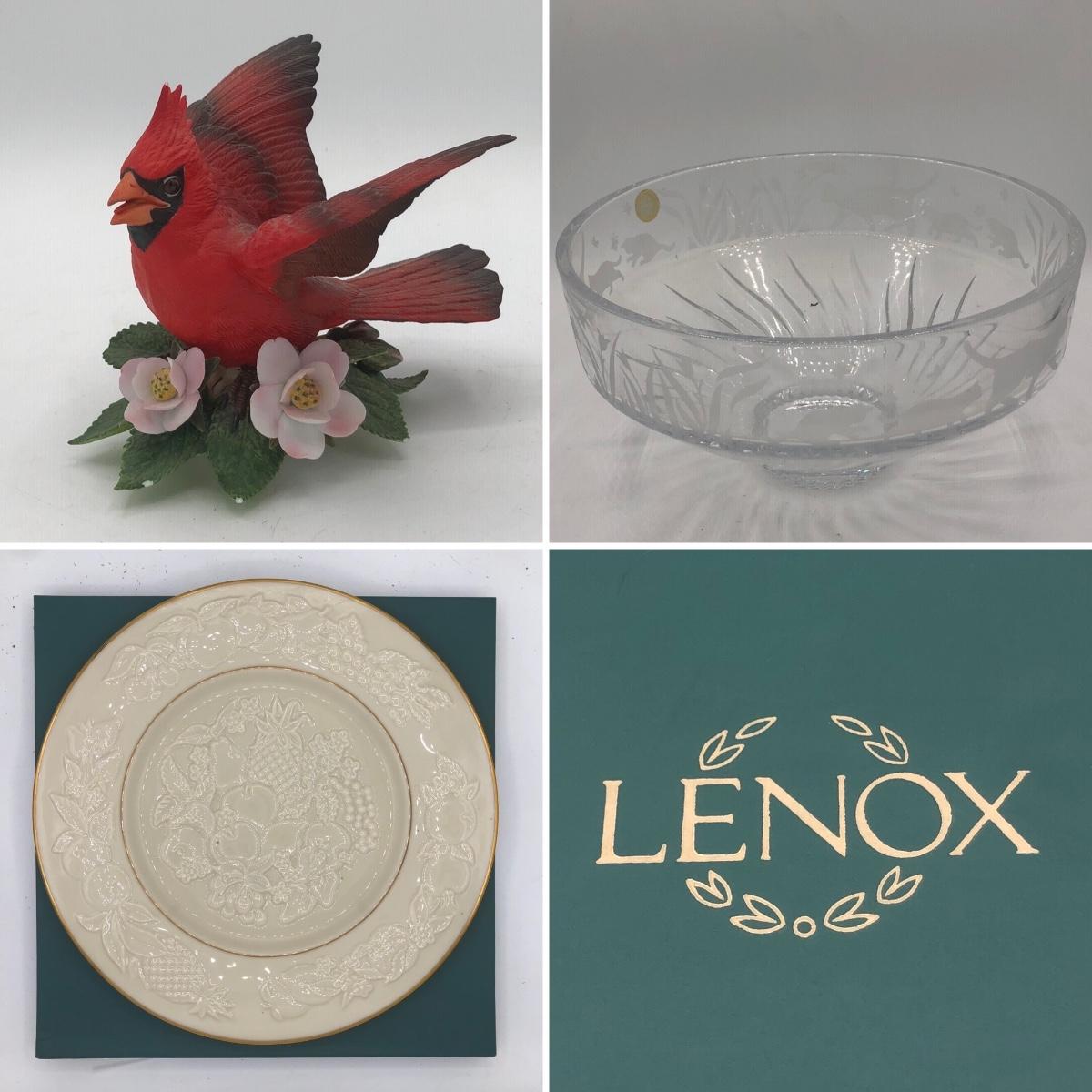 LOT 113D: Lenox Collection - Porcelain Cardinal, Lead Crystal Cat Bowl & Ivory China Fruit of Life Platter w/ Box