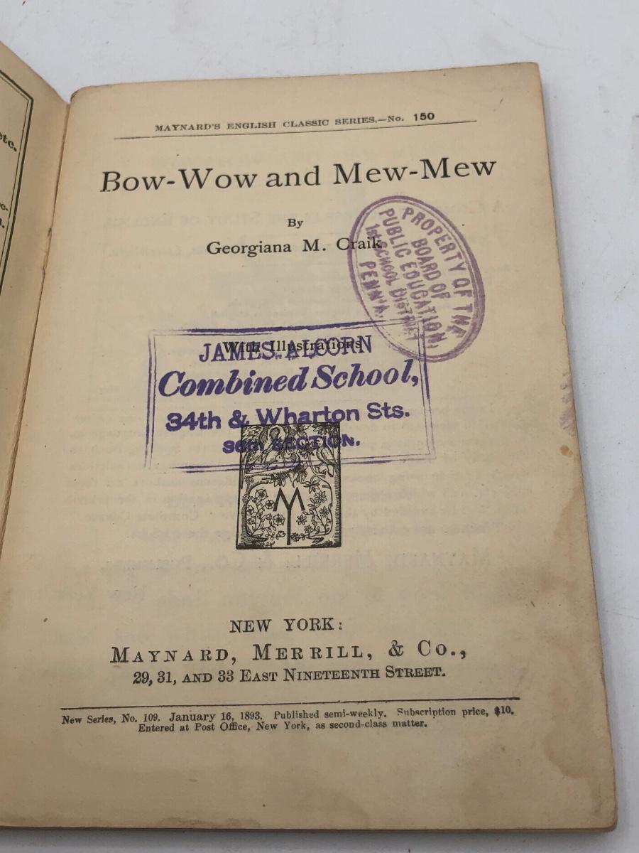 1894 Maynard's English Classic Series Bow-Wow and Mew-Mew by Georgiana M Craik