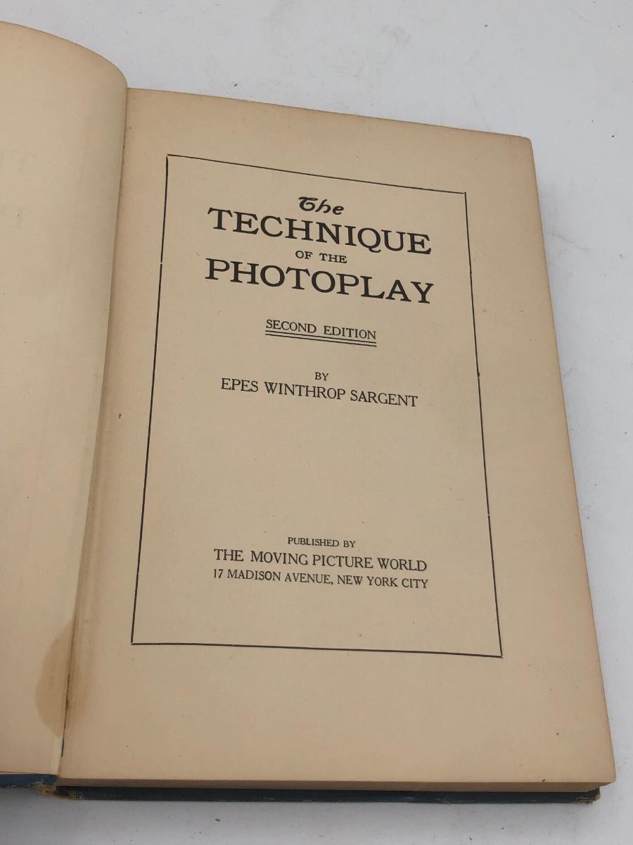 1913 Second Edition The Technique of the Photoplay by Epes Winthrop Sargent