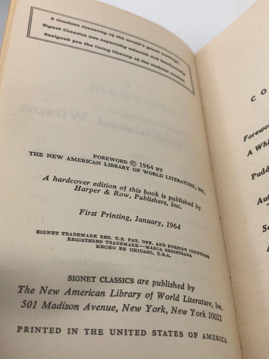 1964 The Tragedy of Pudd'nhead Wilson by Mark Twain