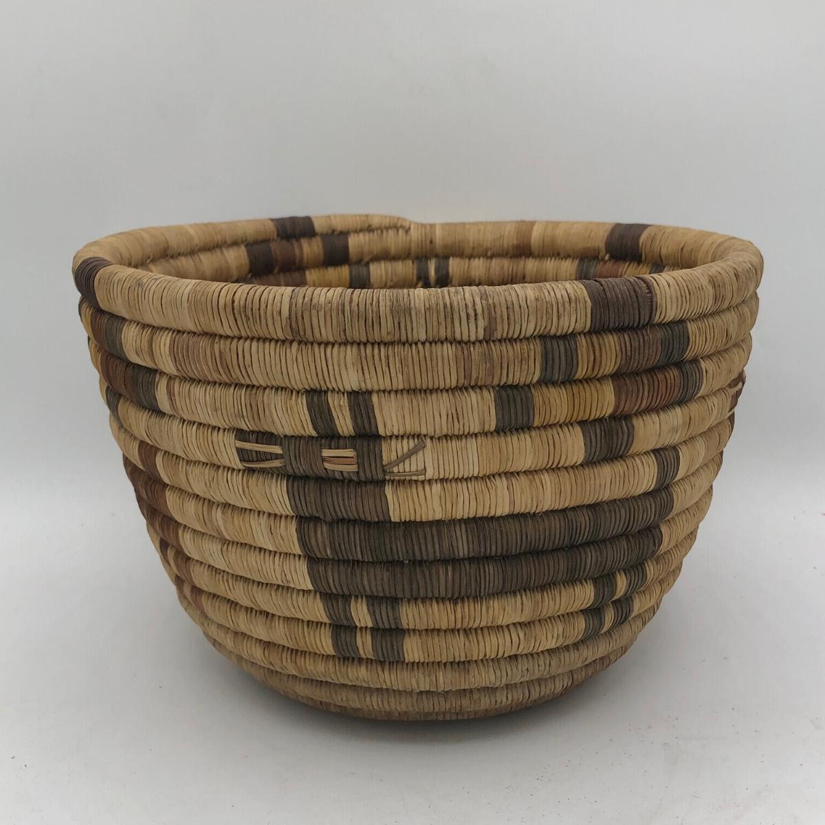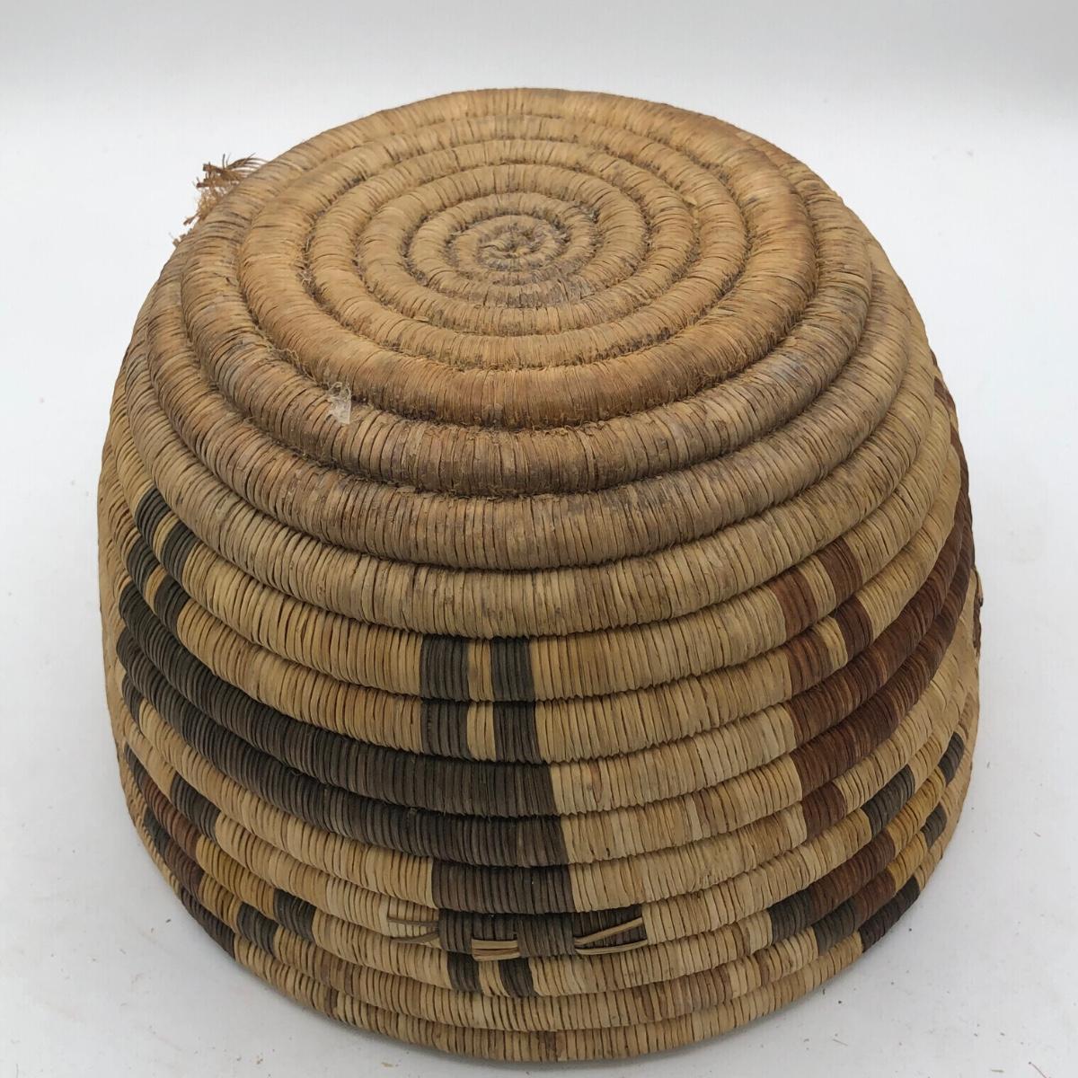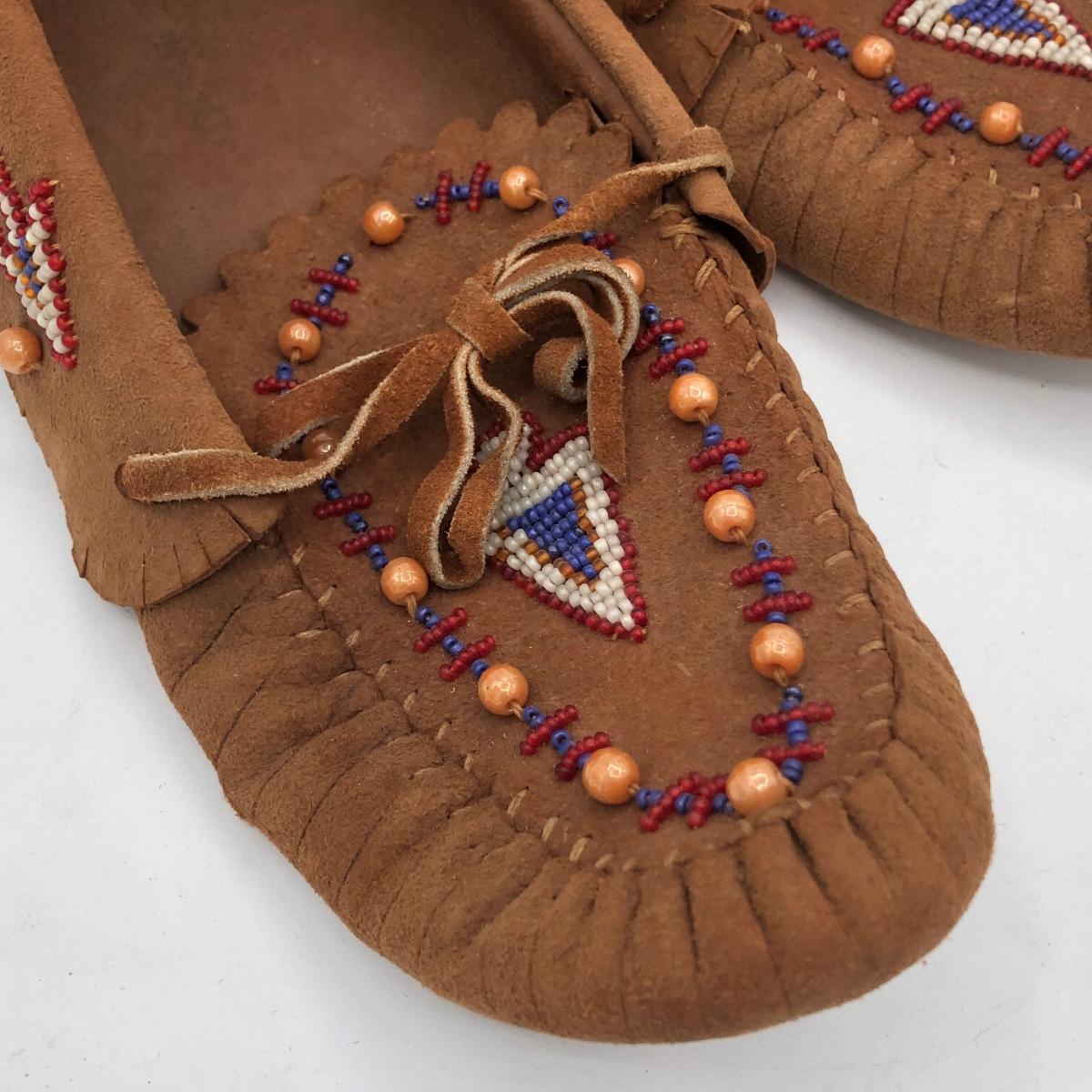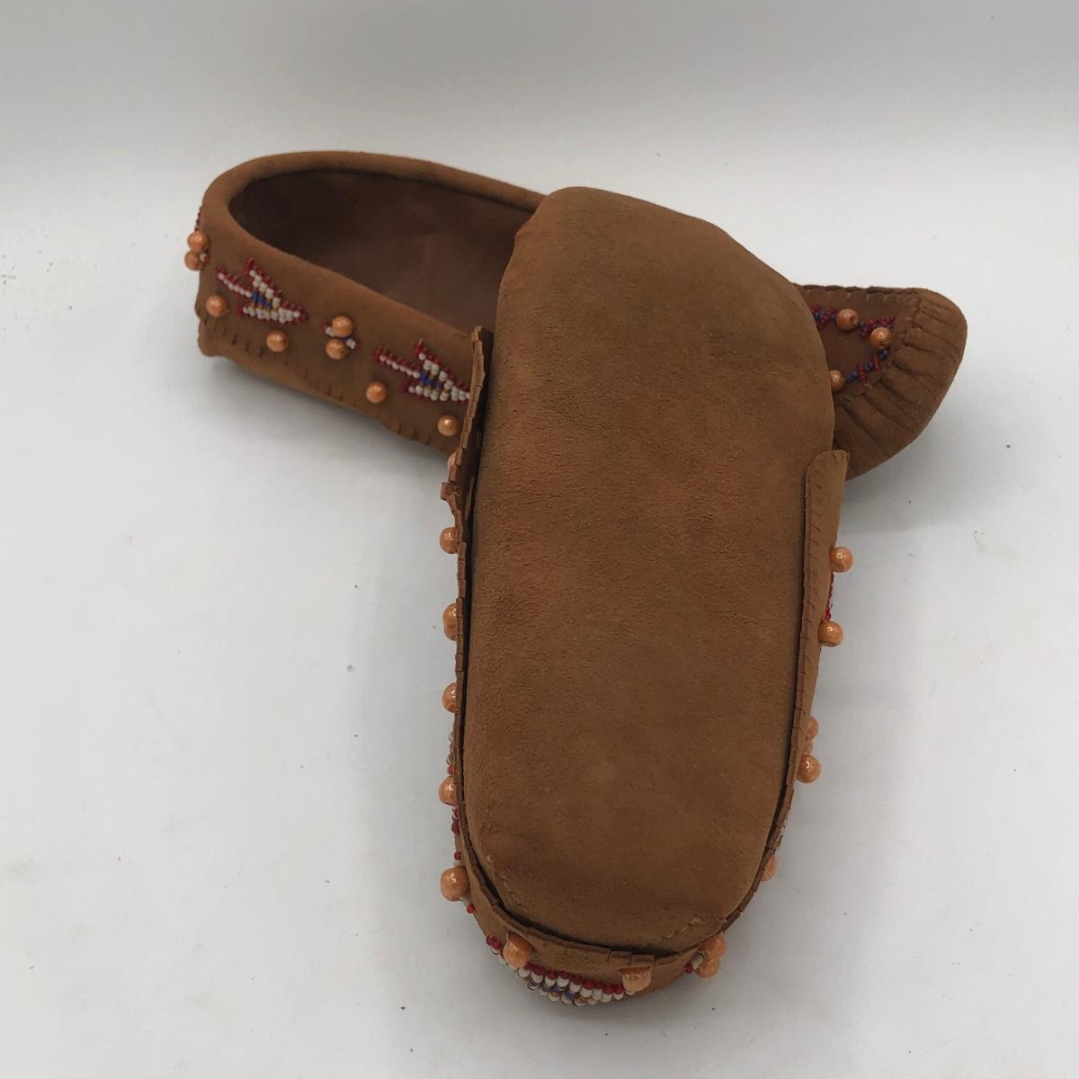 LOT 116D: Native American Woven Llama Basket, Beaded Moccasins, Leather Suede Flask & Carved Stone Whistle