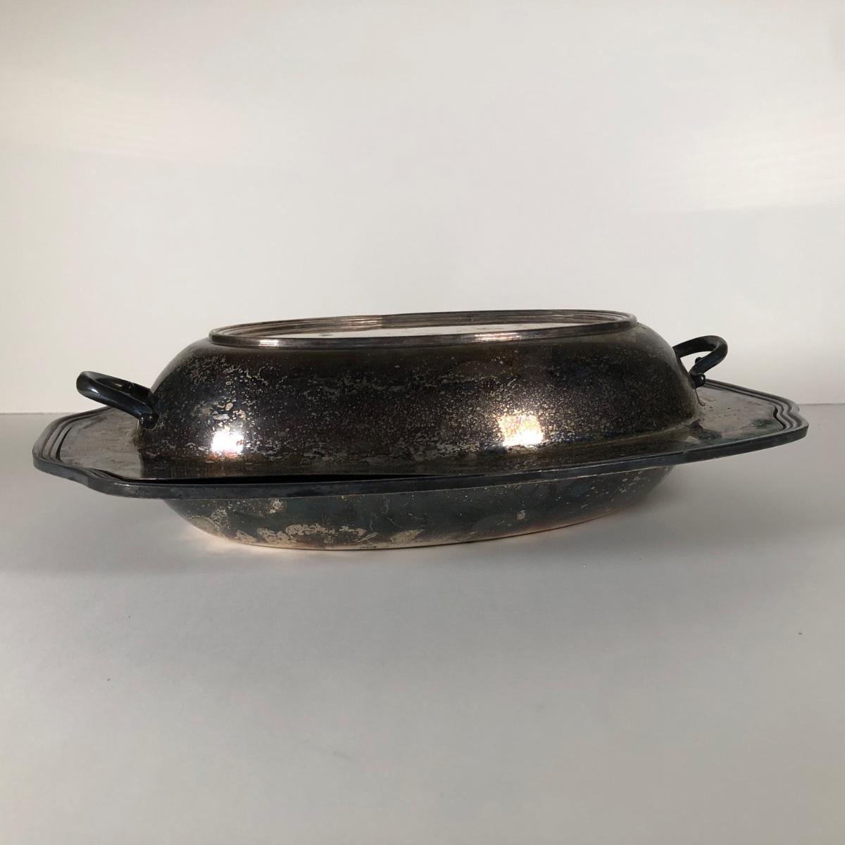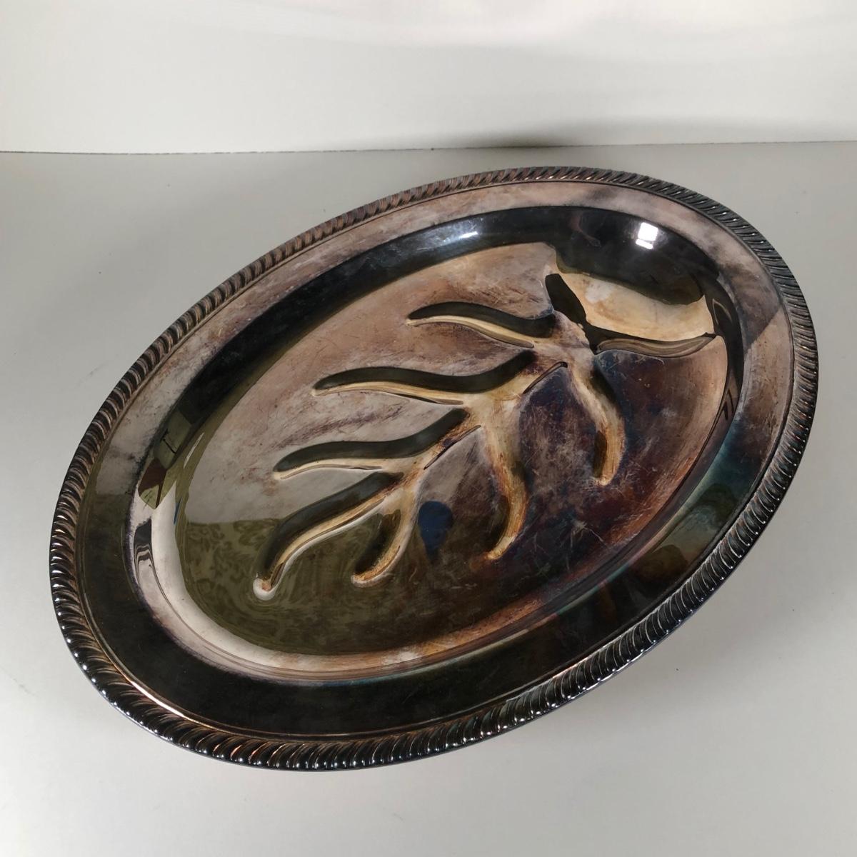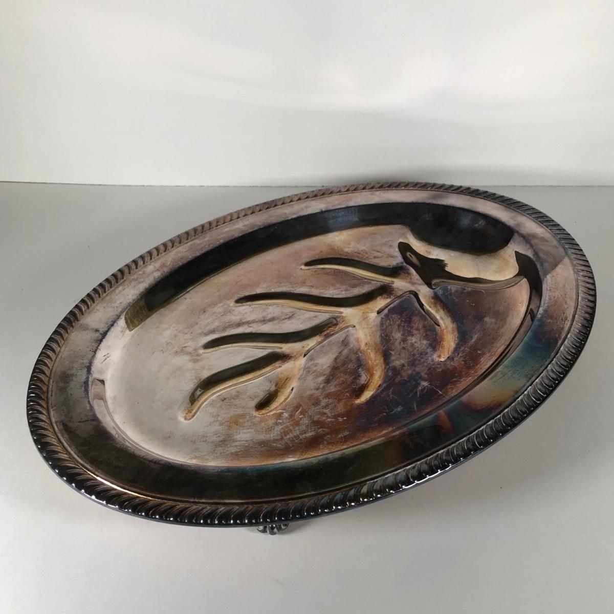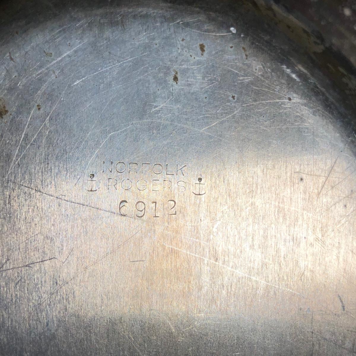 LOT 122D: Irvinware Shell Tidbit Tray w/ Box, Norfolk Rogers 6912 Lidded Serving Dish, Silver Plate Meat Tray & More