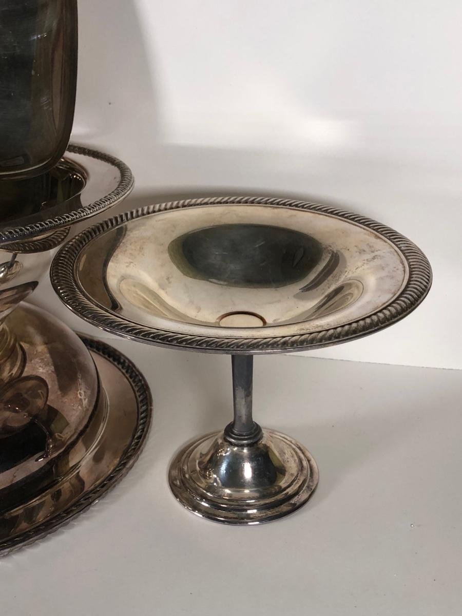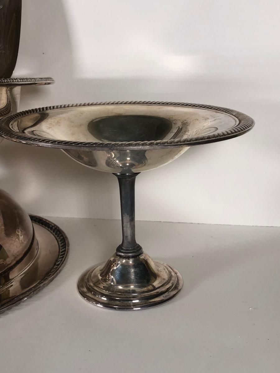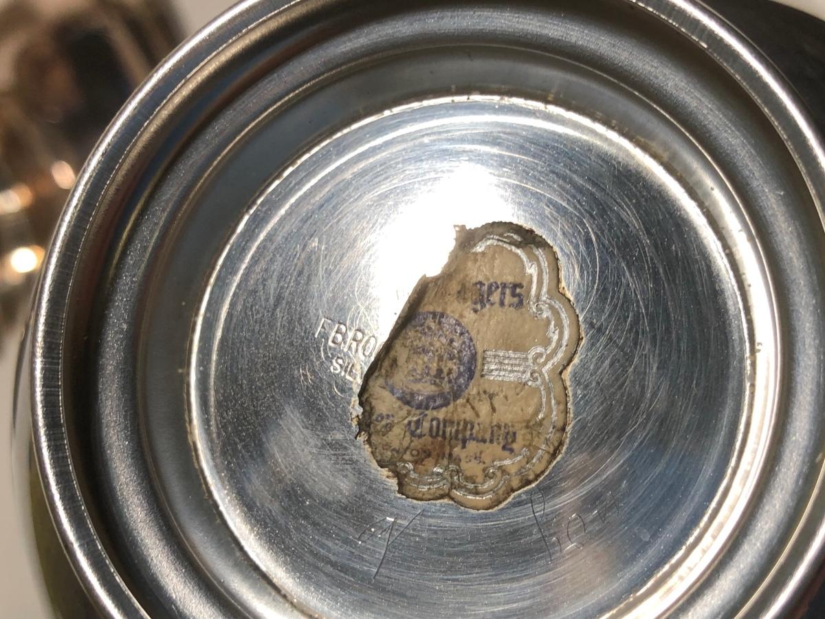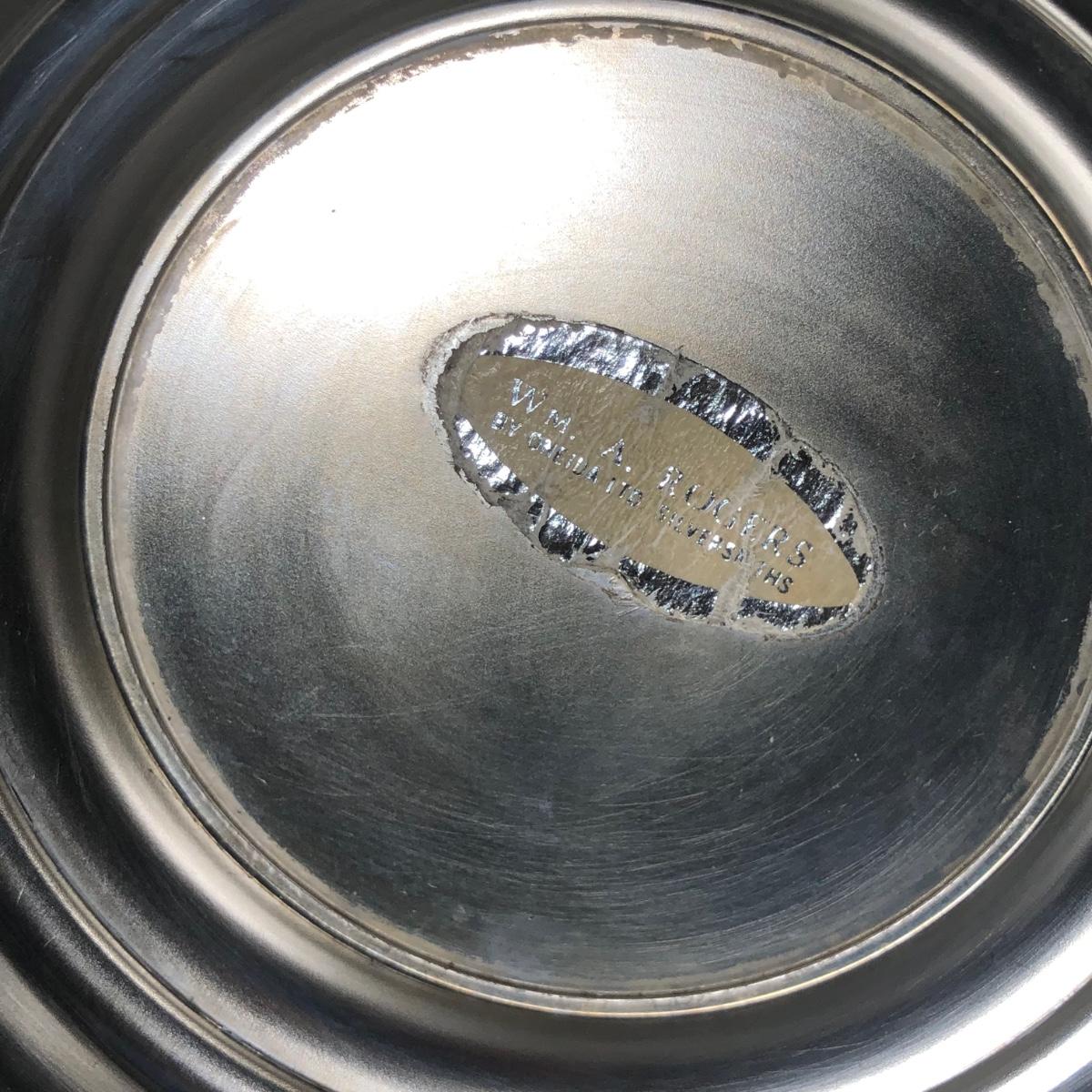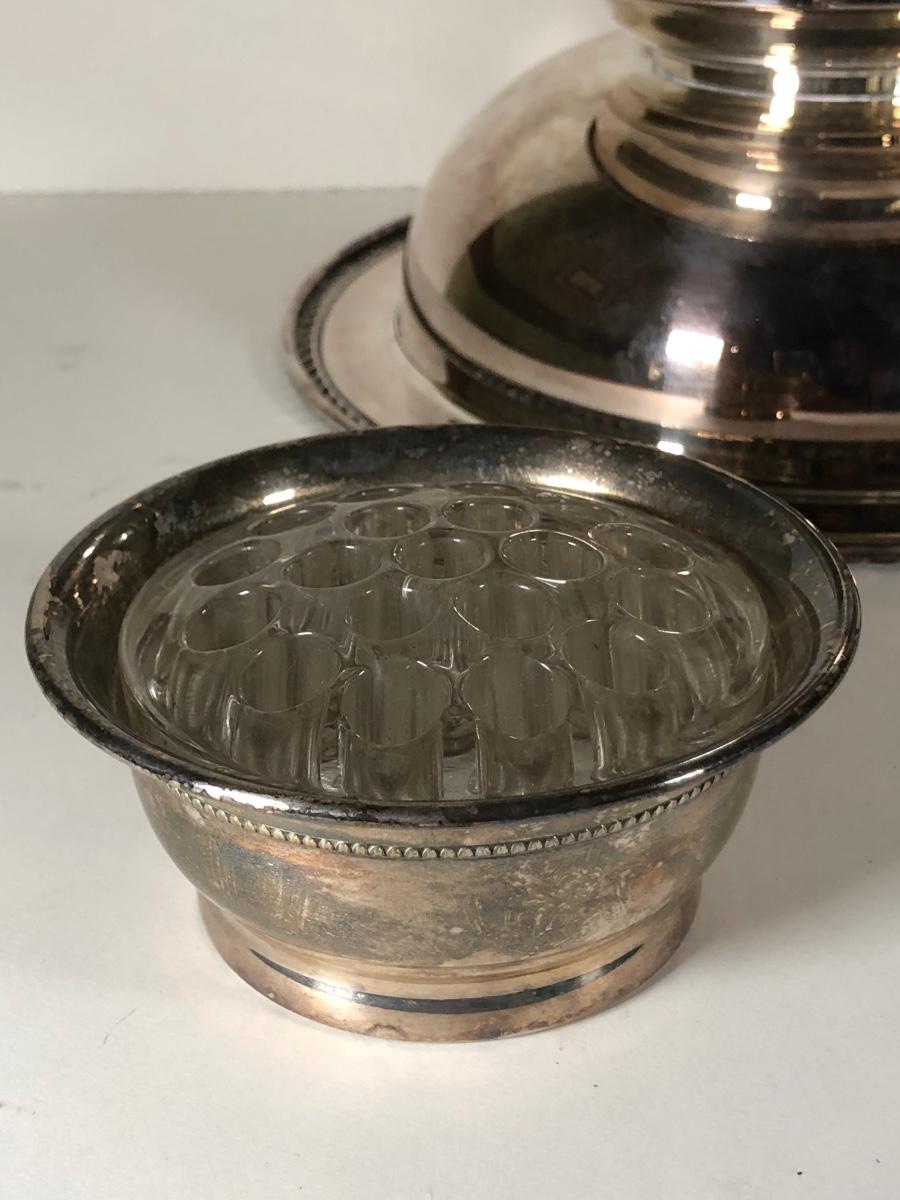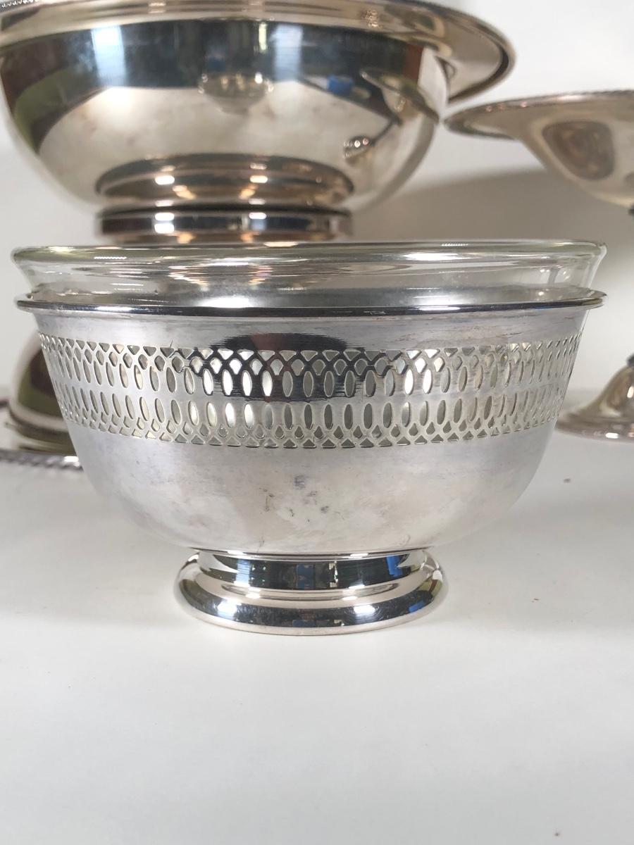LOT 124D: Vintage Silver Plate - FB Rogers Silver Co Shell Dish 1630, Teapot 1960, Bowl w/ Glass Insert, WMM EPSN Candlestick Holders 1558, Falstaff Bowl w/ Glass Flower Frog